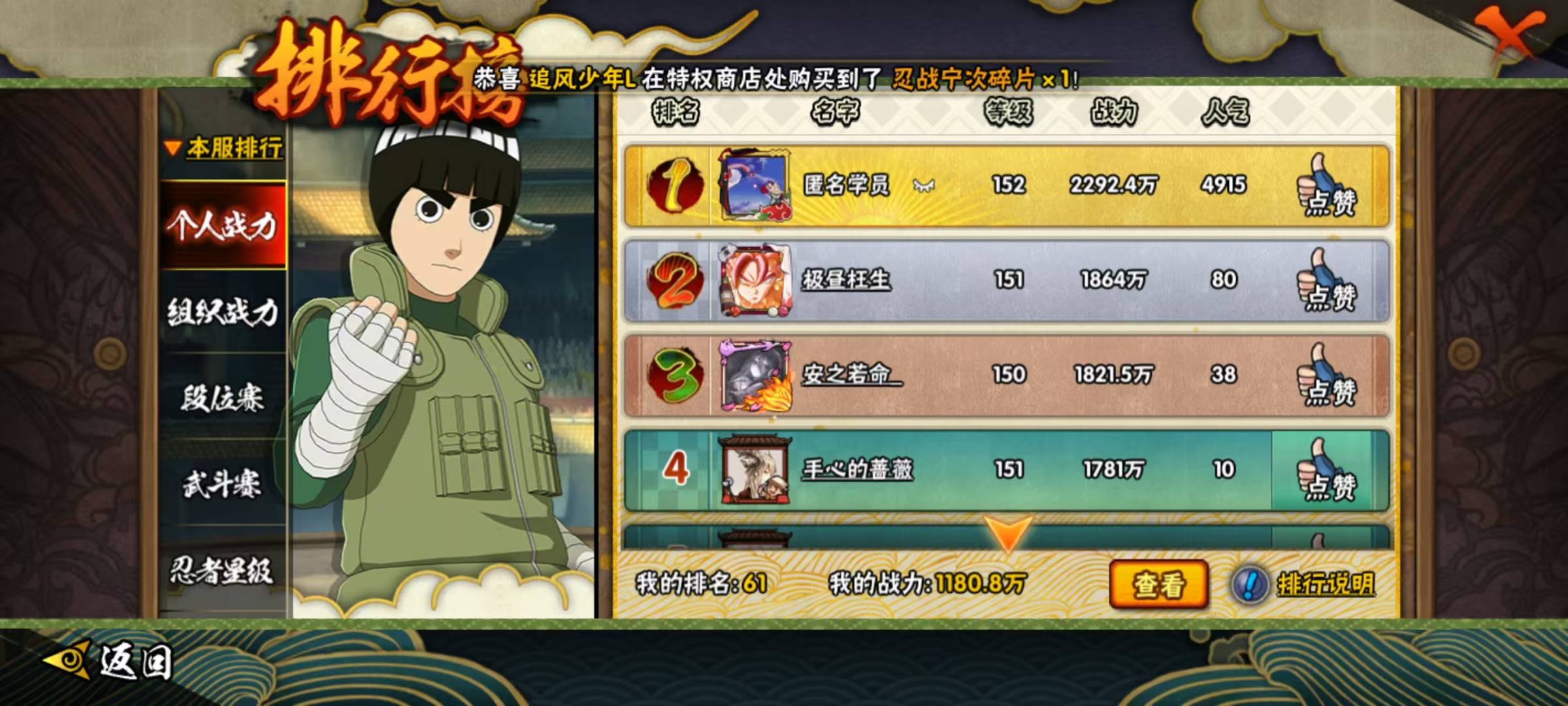 [10020114]v11 20s忍 可二次 可修改实名 s级忍者:宇智波止水「须佐能乎」艾「忍界大战」大筒木桃式宇智波斑「秽土转生·解」千手柱间·木叶创立宇智波佐助「永恒万花筒」神秘面具男 「红夜之刃」大筒木金式「博人传」漩涡鸣人 「九喇嘛连结」大野木 「忍界大战」宇智波斑 「木叶创立」自来也 「舞之豪杰」猿飞日斩「秽土转生」长门「秽土转生」自来也「仙人模式」佩恩「天道」猿飞日斩波风水门大蛇丸纲手