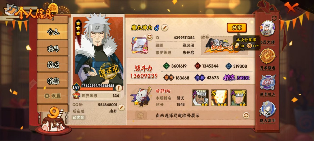 v11 22s 可二次 s级忍者:宇智波斑「秽土转生·解」千手柱间·木叶创立宇智波佐助「永恒万花筒」神秘面具男 「红夜之刃」漩涡鸣人 「九喇嘛连结」迈特凯「死门」宇智波带土 「忍界大战」千手柱间「秽土转生」自来也 「舞之豪杰」宇智波鼬「秽土转生」宇智波斑「秽土转生」艾「三代目雷