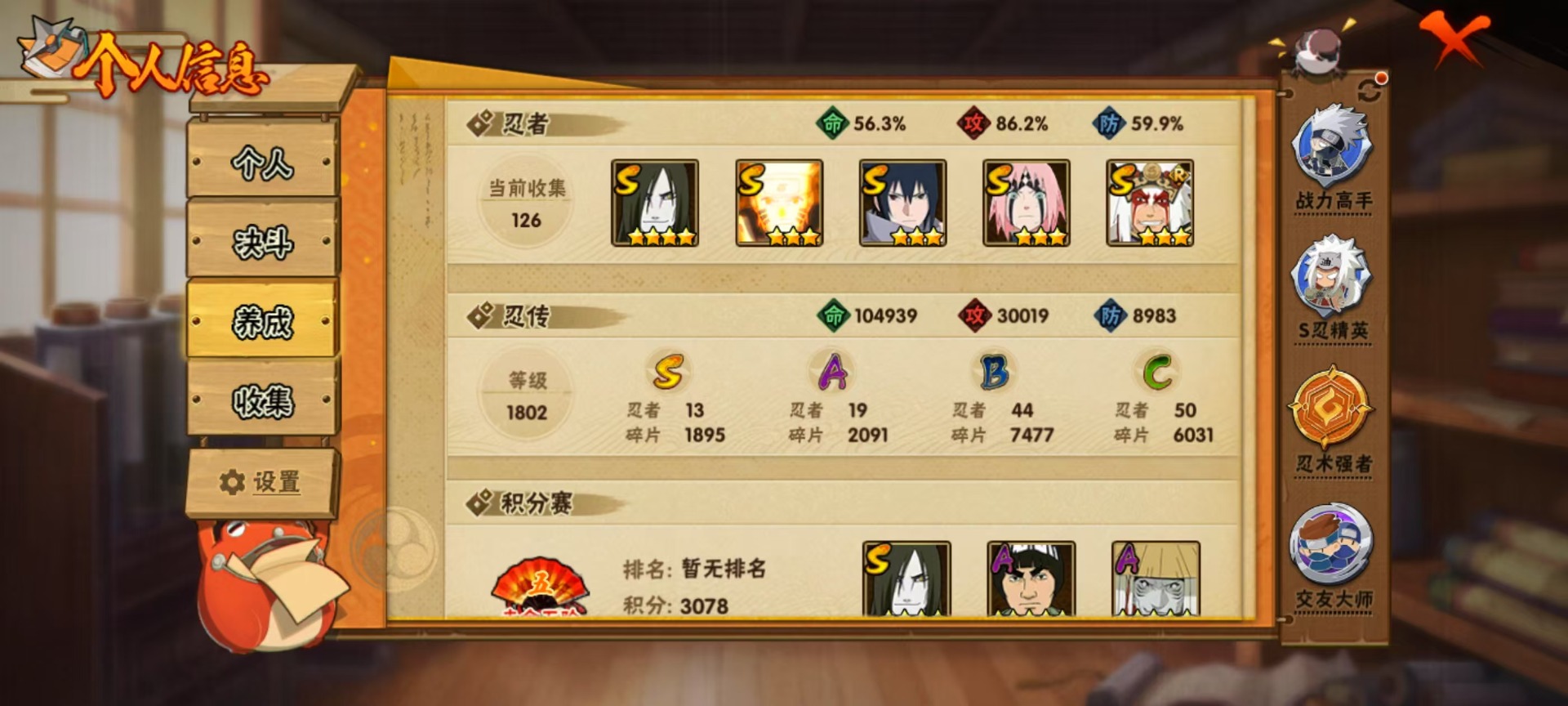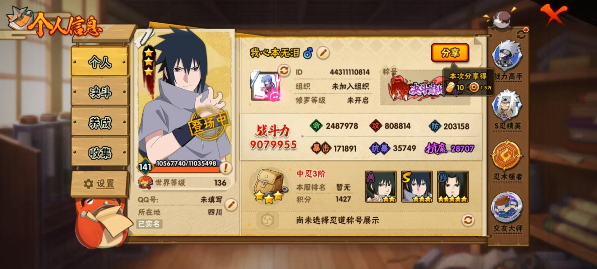 v10 13s忍 可二次 可修改实名 s级忍者:宇智波斑「秽土转生·解」宇智波佐助「永恒万花筒」神秘面具男 「红夜之刃」春野樱 「忍界大战」大筒木金式「博人传」漩涡鸣人 「九喇嘛连结」自来也 「舞之豪杰」千手扉间「秽土转生」宇智波鼬 「须佐能乎」佩恩「天道」波风水门大蛇丸纲手
