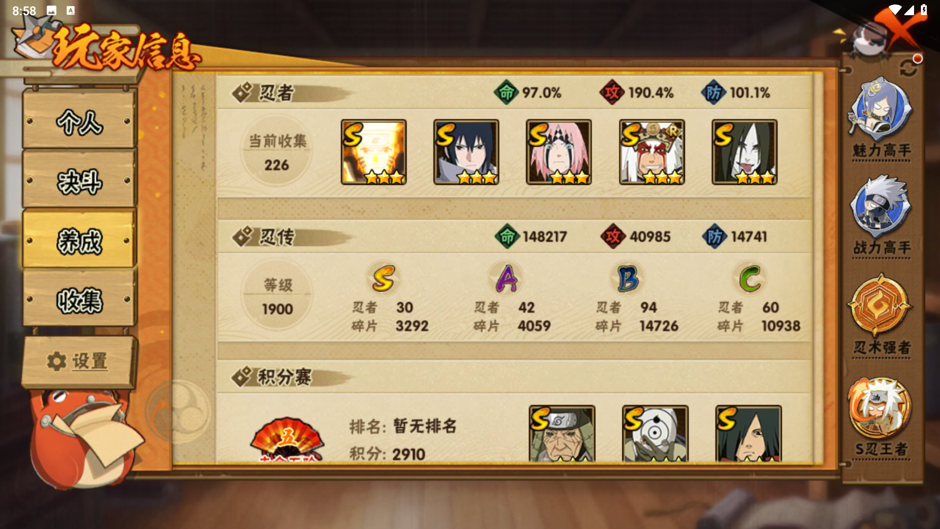 [4869491]v11 30s忍 42a忍 226忍 3292s碎片 20通灵 900w战力 前1000名 见习九喇嘛鸣人永恒万花筒佐助忍战樱舞之豪杰自来也大蛇丸百豪纲手死门凯水门秽土水门秽土日斩扉间秽土扉间柱间创立柱间秽土柱间秽土斑斑创立斑秽土解斑秽土鼬神秘面具男白面具忍战带土红夜带土四代风影二代土影忍战大野木秽土长门仙人兜金式凯阿斯玛疾风传我爱罗蝎鬼鲛飞段仙人鸣人忍者之路面具男九尾鸣人万花筒佐助须佐佐助百豪樱忍战丁次忍战宁次万花筒卡卡西秽土阿斯玛止水新春水门青年水门忍战我爱罗近松十人卫千代五代水影奇拉比忍战奇拉比青年艾漂泊扉间斗篷兜青年长门漂泊六道小南地怨虞角都晓大蛇丸鼬迪达拉秽土迪达拉死司飞段暴怒带土博人传木叶丸桃式显现博人博人传达鲁伊六代水影博人传黑土