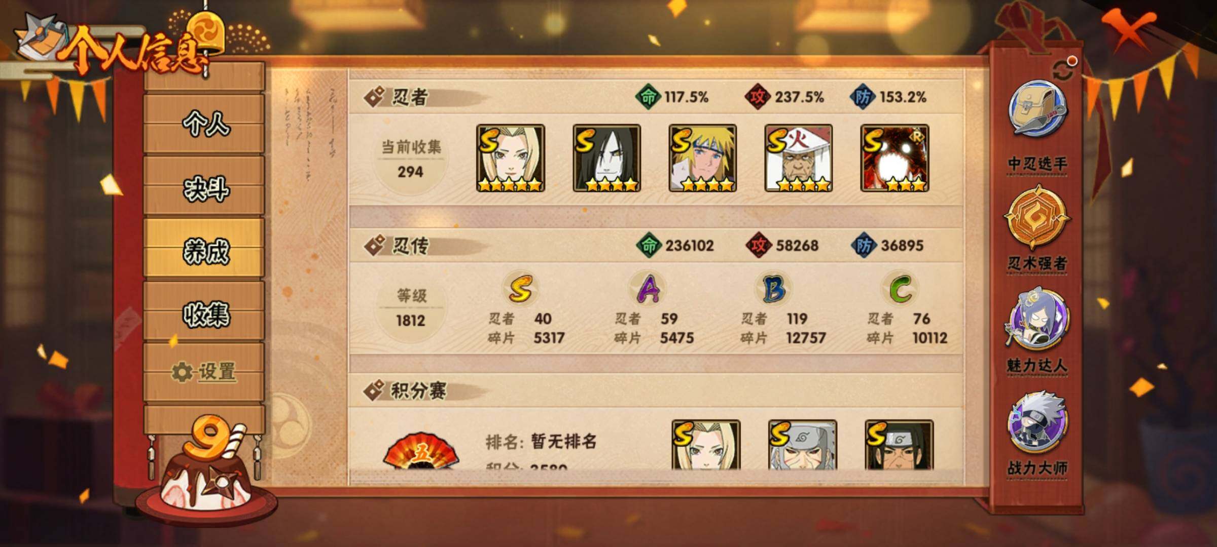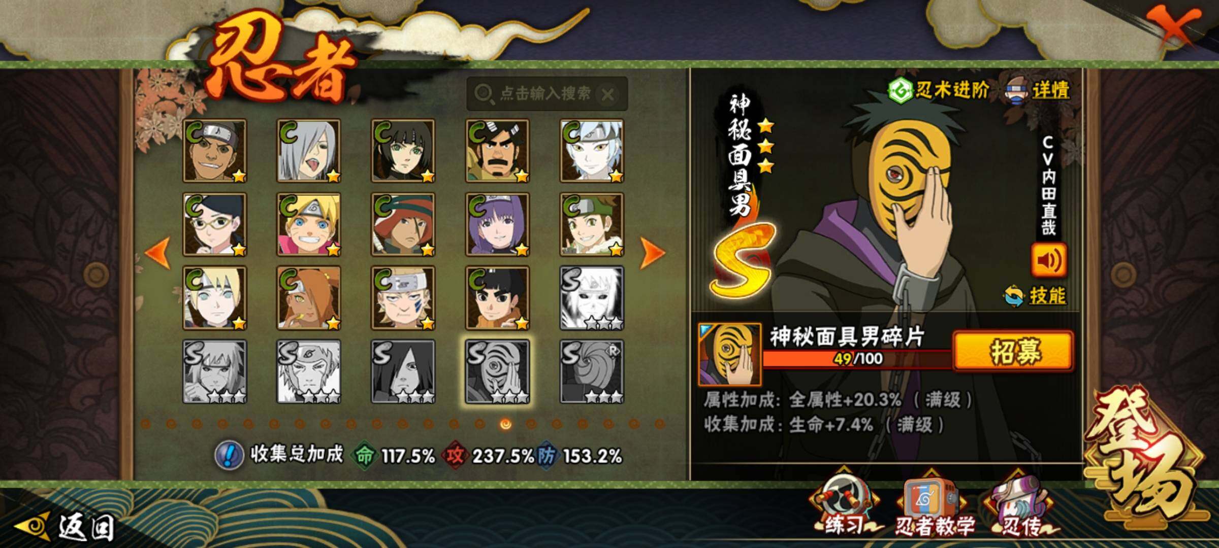 【h3161】v13/s忍40/a忍59/秽土斑/博人传达鲁伊/药师兜「侠隐江湖」/须佐能乎旗木卡卡西/5星蝎/秽土日斩/2星照美冥「五代目水影」/秽土阿斯玛/2星黑土「夏日限定」/5星迈特凯/3星日向宁次「忍界大战」/3星自来也/秽土扉间/3星罗砂「四代目风影」/仙人兜/长十郎/2星蝎「绯流琥」/百豪樱/死门凯/创生角都/秽土迪达拉/斗篷兜/忍战樱/2星宇智波佐助「万花筒写轮眼」/仙人自