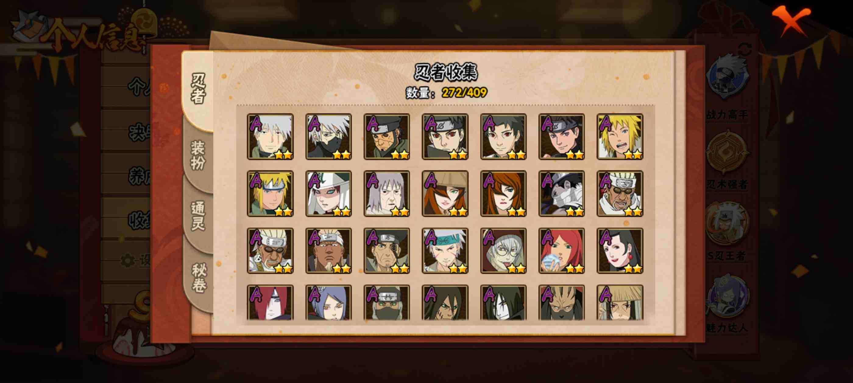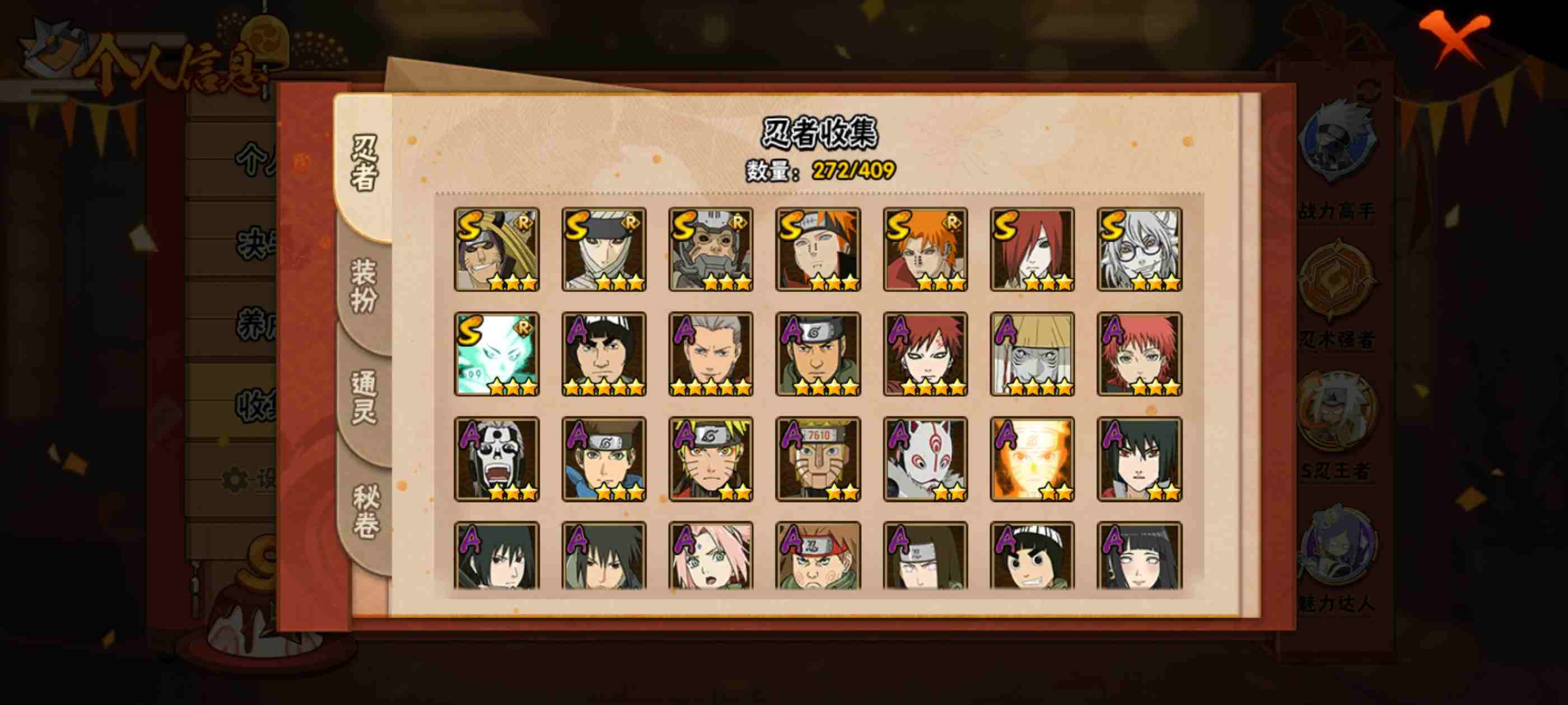 连体火影忍者号共236个忍者,35个s 59个a,连体王者荣耀