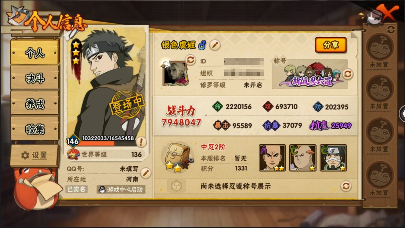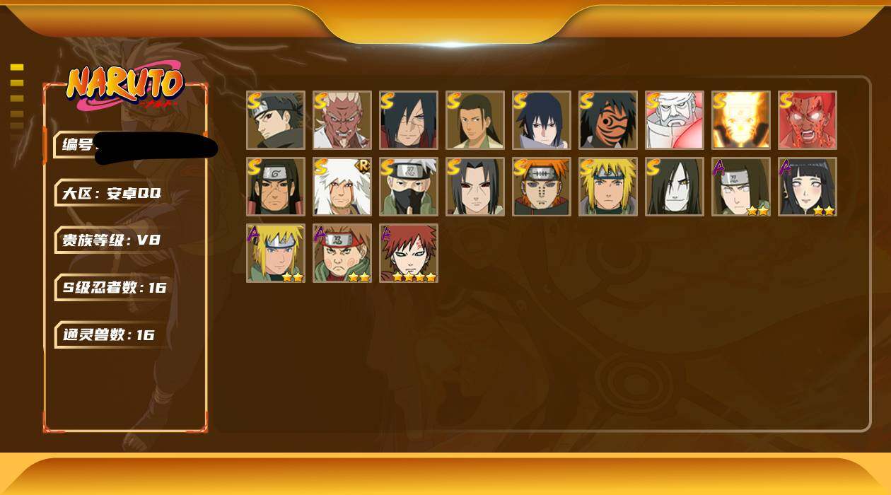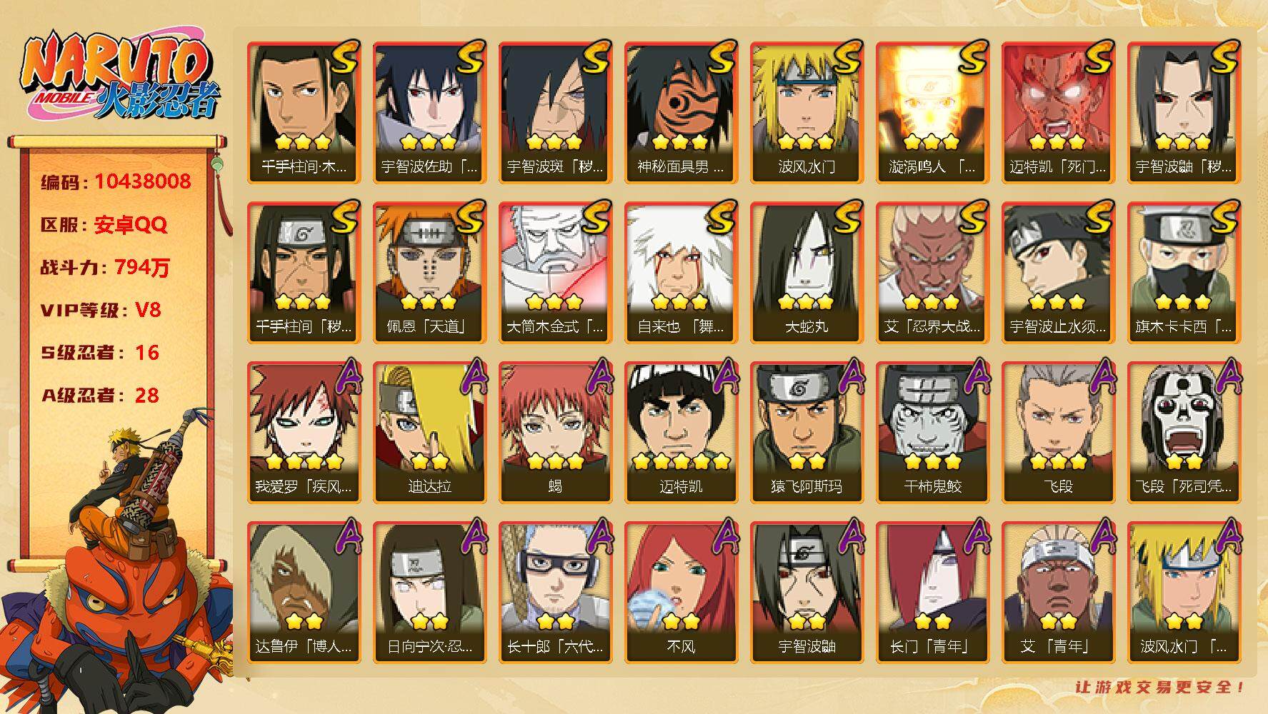[12675607]【编号97248可秒换绑】店长推荐特价处理精品号16s级忍者数-28a级忍者数 【s级忍者】:千手柱间「秽土转生」3星,宇智波鼬「秽土转生」3星,宇智波斑「秽土转生·解」3星,艾「忍界大战」3星,宇智波止水「须佐能乎」3星,旗木卡卡西「须佐能乎」3星,千手柱间「木叶创立」3星,自来也「舞之豪杰」3星,大蛇丸3星,波风水门3星,神秘面具男「红夜之刃」3星,漩涡鸣人「九喇嘛连结」3星,迈特凯「死门」3星,佩恩「天道」3星,宇智波佐助「永恒万花筒」3星,大筒木金式3星 【a级忍者】:艾「青年」2星,长门「青年」2星,波风水门「青年」2星,达鲁伊「博人传」2星,迪达拉2星,奇拉比「忍界大战」2星,飞段3星,飞段「死司凭血」2星,干柿鬼鲛3星,漩涡博人「桃式显现」2星,迈特凯5星,旗木卡卡西「幻之真容」2星,我爱罗「疾风传」4星,蝎3星,猿飞阿斯玛2星,宇智波鼬2星,宇智波佐助「须佐能乎」2星,照美冥「五代目水影」2星,日向宁次「忍界大战」2星,日向雏田「最终章」2星,长十郎「六代目水影」2星,李洛克「忍界大战」2星,猿飞木叶丸「博人传」2星,黑土「博人传」2星,秋道丁次「忍界大战」2星,千代「近松十人卫」2星,不风2星,地陆2星