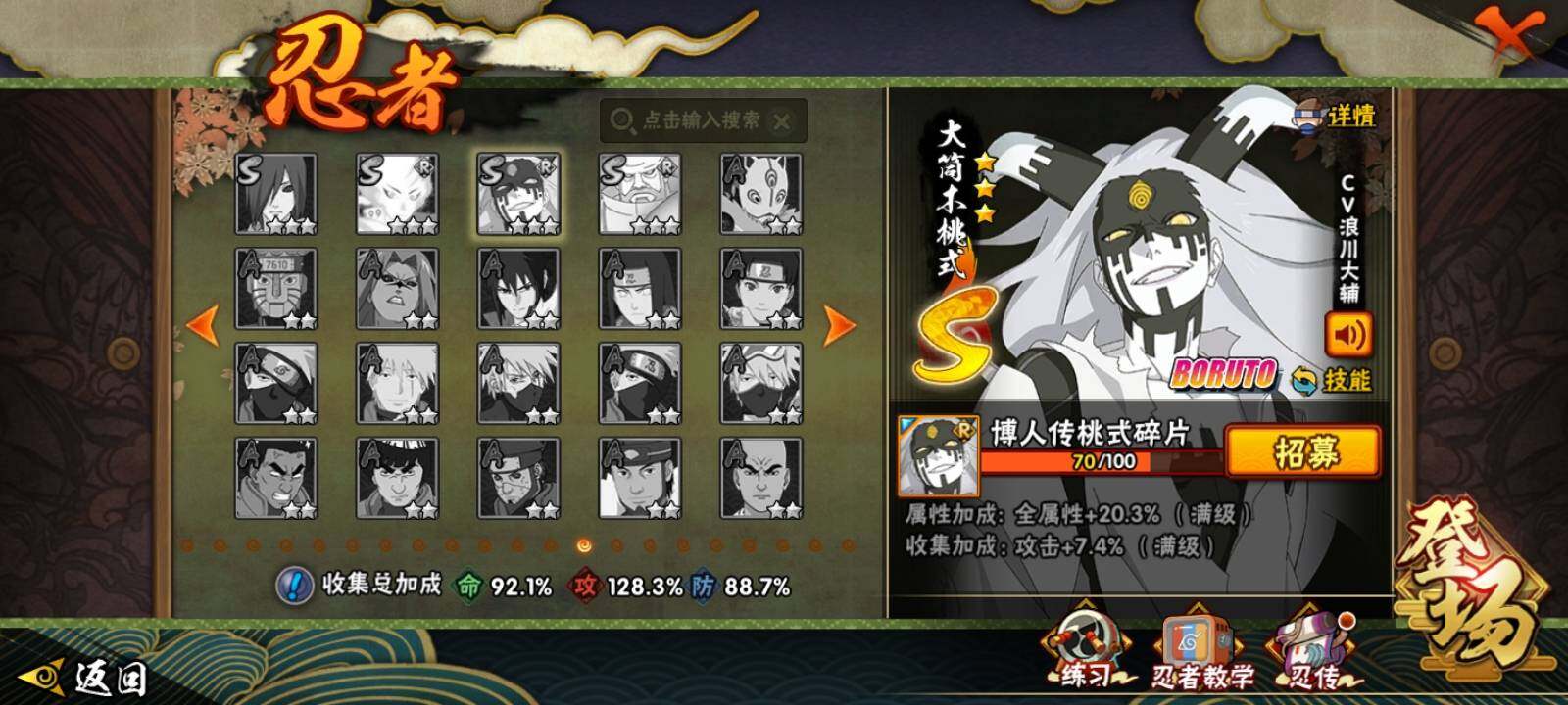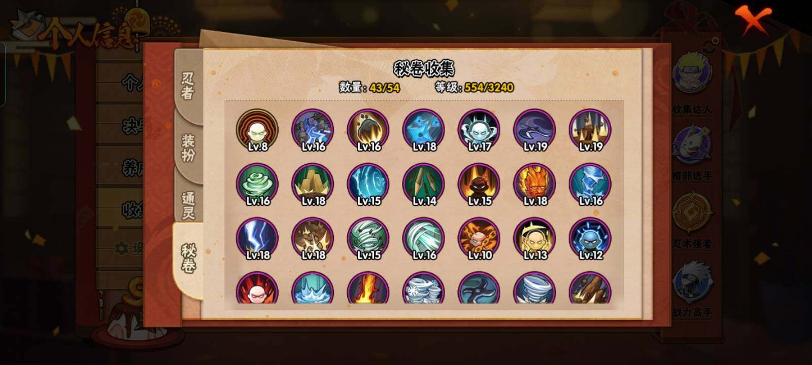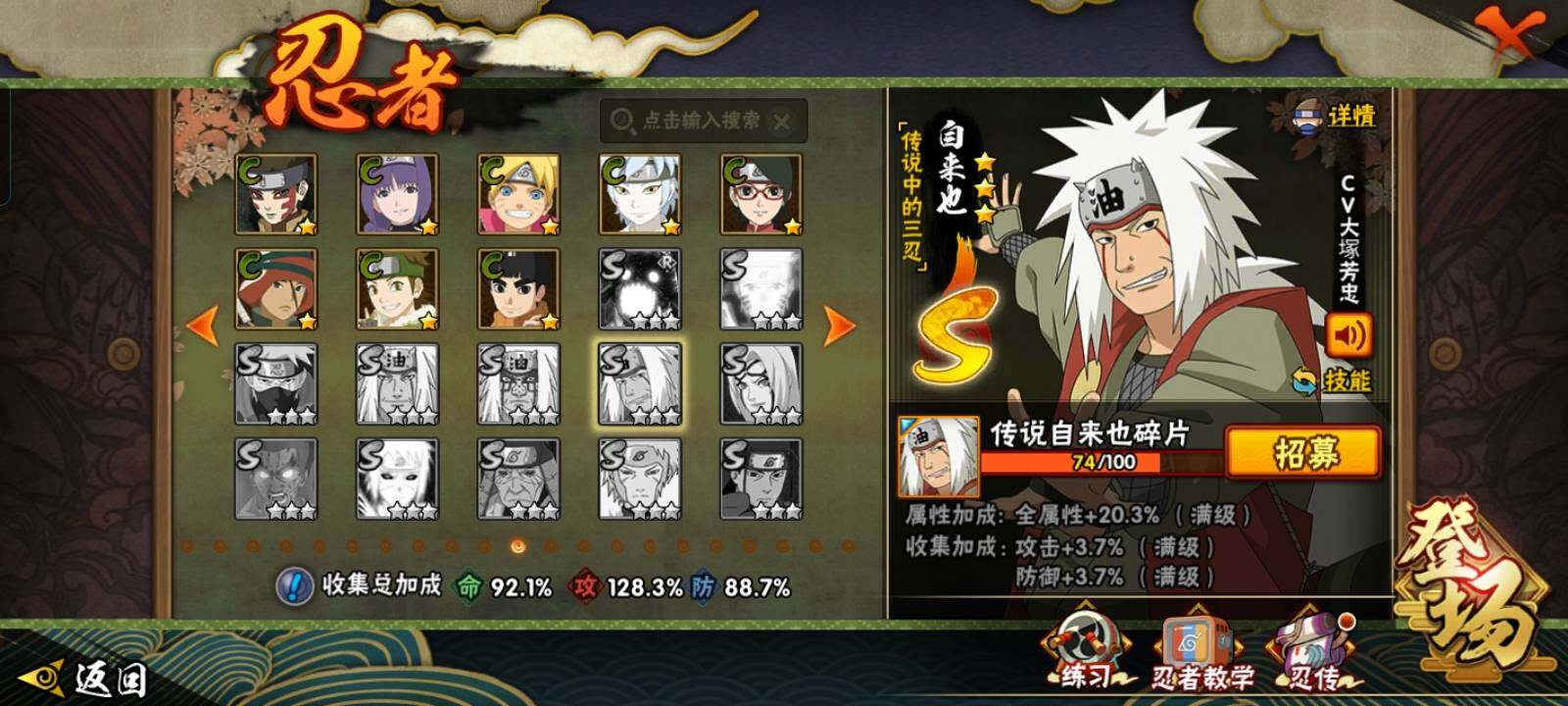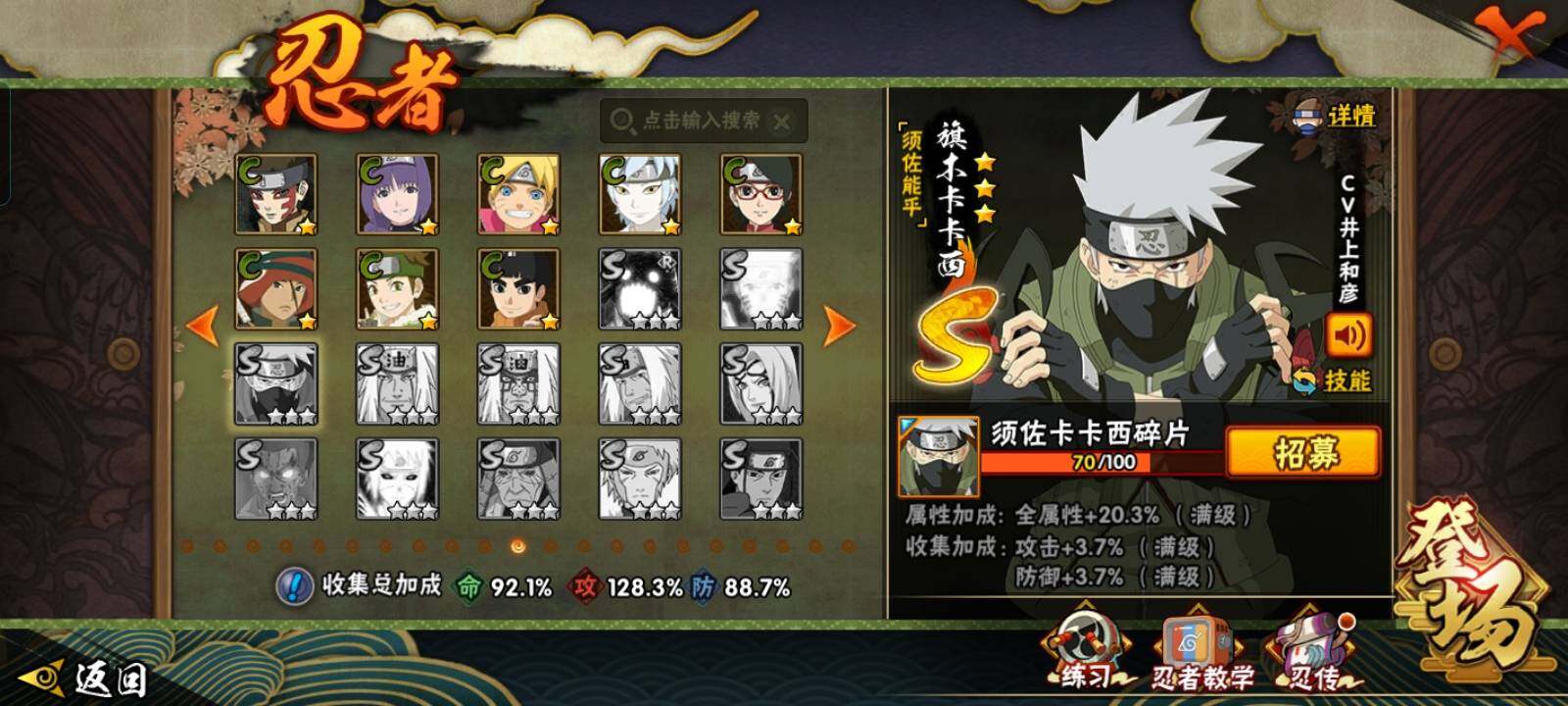 18s级忍者数-36a级忍者数 【s级忍者】:波风水门「秽土转生」3星,千手扉间「秽土转生」3星,千手柱间「秽土转生」3星,宇智波鼬「秽土转生」3星,宇智波斑「秽土转生」3星,宇智波斑「秽土转生·解」3星,春野樱「忍界大战」3星,宇智波鼬「须佐能乎」3星,宇智波止水「须佐能乎」3星,自来也「舞之豪杰」3星,大蛇丸3星,纲手3星,猿飞日斩4星,波风水门3星,药师兜「仙人模式」3星,佩恩「天道」3星,宇智波佐助「永恒万花筒」3星,宇智波斑 「白面具」3星宇智波斑「白面具」 【a级忍者】:长门「青年」2星,波风水门「青年」2星,波风水门「新春限定」2星,达鲁伊「博人传」2星,迪达拉2星,迪达拉「秽土转生」2星,奇拉比「忍界大战」2星,飞段3星,飞段「死司凭血」2星,干柿鬼鲛5星,漩涡博人「桃式显现」2星,漩涡鸣人「仙人模式」2星,漩涡鸣人「九尾查克拉」2星,迈特凯5星,桃地再不斩「秽土转生」2星,我爱罗「疾风传」3星,我爱罗「忍界大战」2星,蝎5星,蝎「绯流琥」2星,猿飞阿斯玛5星,宇智波鼬2星,宇智波佐助「须佐能乎」2星,宇智波佐助「万花筒写轮眼」2星,药师兜「半蛇斗篷」2星,药师兜「侠影江湖」2星,日向雏田「最终章」2星,宇智波带土「暴怒」2星,宇智波带土「漂泊浪客」2星,长十郎「六代目水影」2星,李洛克「忍界大战」2星,黑土「博人传」2星,春野樱「百豪」2星,秋道丁次「忍界大战」2星,千代「近松十人卫」2星,不缘2星,宇智波泉奈2星