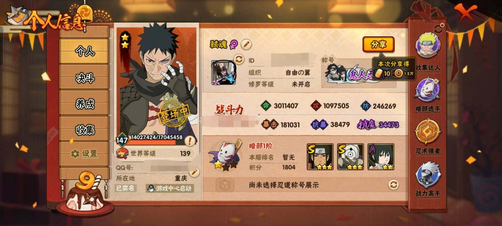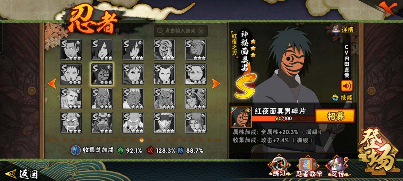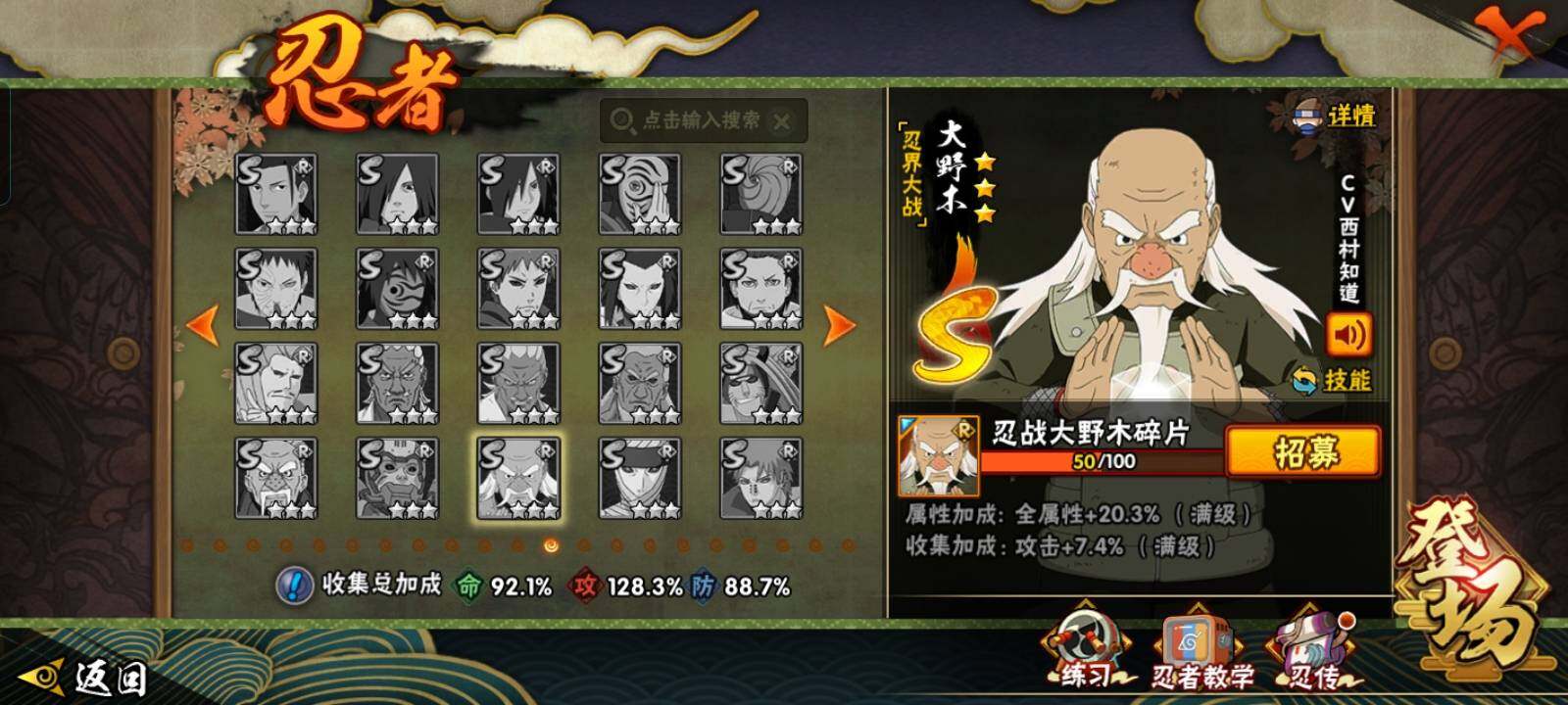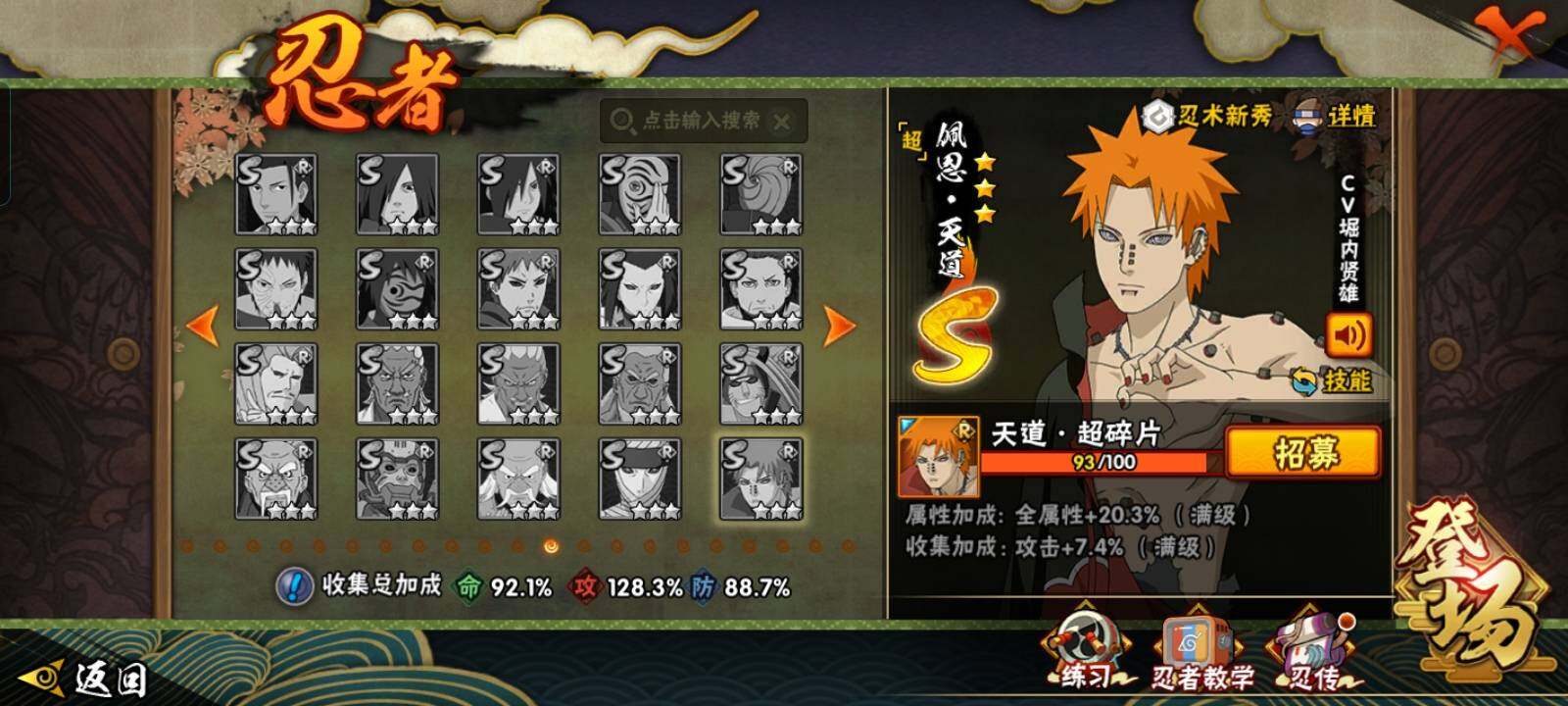 18s级忍者数-36a级忍者数 【s级忍者】:波风水门「秽土转生」3星,千手扉间「秽土转生」3星,千手柱间「秽土转生」3星,宇智波鼬「秽土转生」3星,宇智波斑「秽土转生」3星,宇智波斑「秽土转生·解」3星,春野樱「忍界大战」3星,宇智波鼬「须佐能乎」3星,宇智波止水「须佐能乎」3星,自来也「舞之豪杰」3星,大蛇丸3星,纲手3星,猿飞日斩4星,波风水门3星,药师兜「仙人模式」3星,佩恩「天道」3星,宇智波佐助「永恒万花筒」3星,宇智波斑 「白面具」3星宇智波斑「白面具」 【a级忍者】:长门「青年」2星,波风水门「青年」2星,波风水门「新春限定」2星,达鲁伊「博人传」2星,迪达拉2星,迪达拉「秽土转生」2星,奇拉比「忍界大战」2星,飞段3星,飞段「死司凭血」2星,干柿鬼鲛5星,漩涡博人「桃式显现」2星,漩涡鸣人「仙人模式」2星,漩涡鸣人「九尾查克拉」2星,迈特凯5星,桃地再不斩「秽土转生」2星,我爱罗「疾风传」3星,我爱罗「忍界大战」2星,蝎5星,蝎「绯流琥」2星,猿飞阿斯玛5星,宇智波鼬2星,宇智波佐助「须佐能乎」2星,宇智波佐助「万花筒写轮眼」2星,药师兜「半蛇斗篷」2星,药师兜「侠影江湖」2星,日向雏田「最终章」2星,宇智波带土「暴怒」2星,宇智波带土「漂泊浪客」2星,长十郎「六代目水影」2星,李洛克「忍界大战」2星,黑土「博人传」2星,春野樱「百豪」2星,秋道丁次「忍界大战」2星,千代「近松十人卫」2星,不缘2星,宇智波泉奈2星