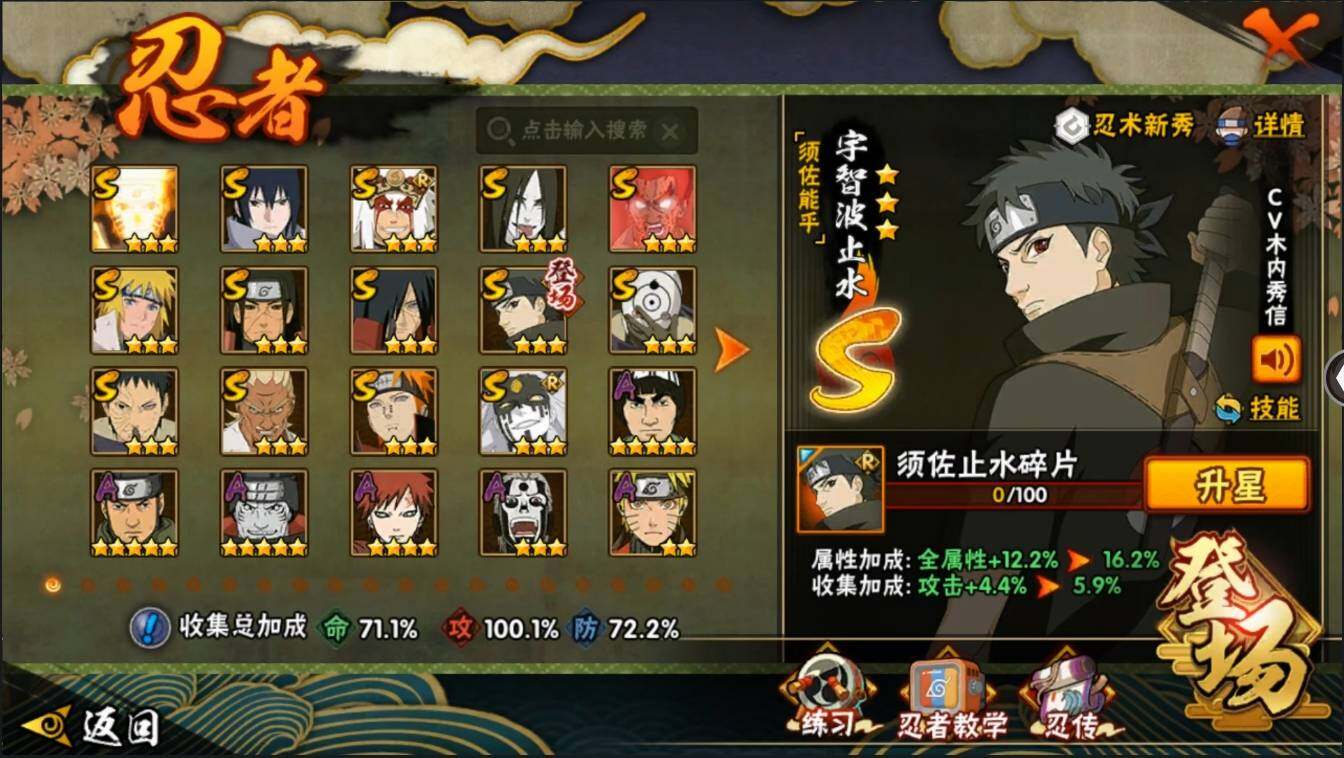 【编号27248可秒换绑】【店长推荐捡漏号】【商品标题】:14s级忍者数-28a级忍者数 【s级忍者】:千手柱间「秽土转生」3星,宇智波斑「秽土转生」3星,宇智波带土「忍界大战」3星,艾「忍界大战」3星,宇智波止水「须佐能乎」3星,自来也「舞之豪杰」3星,大蛇丸3星,波风水门3星,漩涡鸣人「九喇嘛连结」3星,迈特凯「死门」3星,佩恩「天道」3星,宇智波佐助「永恒万花筒」3星,宇智波斑 「白面具」3星宇智波斑「白面具」,大筒木桃式3星 【a级忍者】:艾「青年」2星,长门「青年」2星,波风水门「青年」2星,迪达拉2星,迪达拉「秽土转生」2星,飞段2星,飞段「死司凭血」3星,干柿鬼鲛5星,漩涡博人「桃式显现」2星,漩涡鸣人「仙人模式」2星,漩涡鸣人「九尾查克拉」2星,迈特凯5星,旗木卡卡西「万花筒写轮眼」2星,我爱罗「疾风传」4星,蝎2星,猿飞阿斯玛5星,宇智波鼬2星,宇智波佐助「须佐能乎」2星,药师兜「半蛇斗篷」2星,照美冥「五代目水影」2星,日向雏田「最终章」2星,长十郎「六代目水影」2星,李洛克「忍界大战」2星,猿飞木叶丸「博人传」2星,黑土「博人传」2星,秋道丁次「忍界大战」2星,千代「近松十人卫」2星,不缘2星