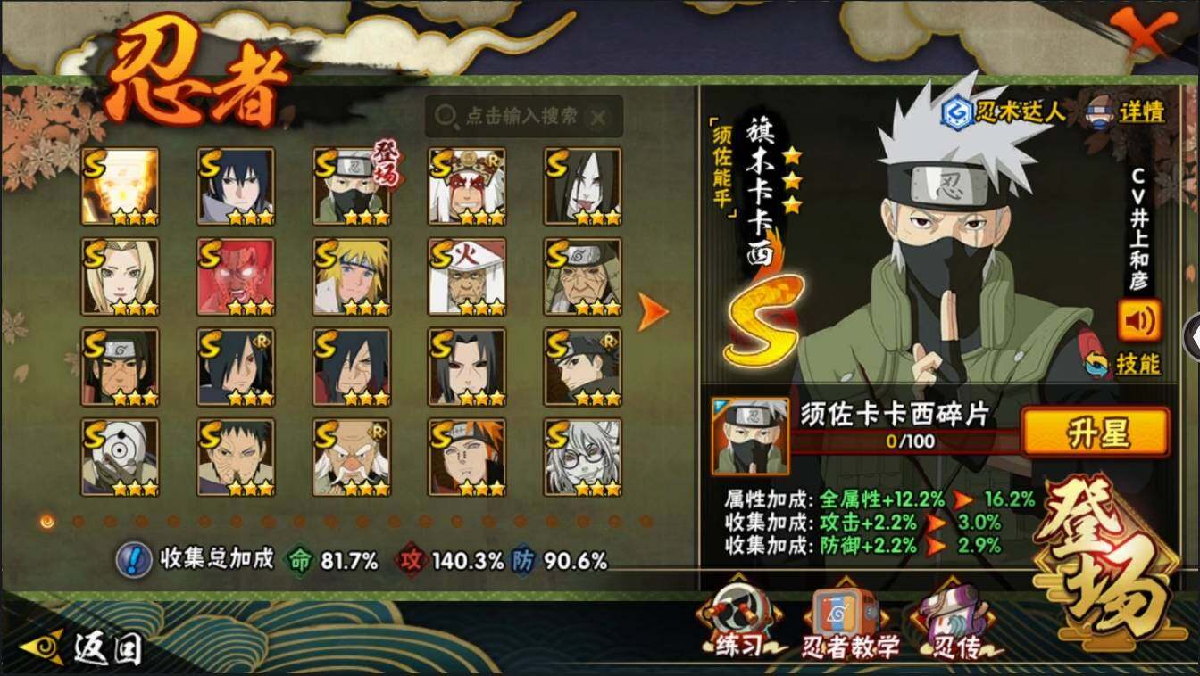 【编号97096 可秒换绑】【店长推荐精品号】【商品标题】:21s级忍者数-33a级忍者数 【s级忍者】:猿飞日斩「秽土转生」3星,千手柱间「秽土转生」3星,宇智波鼬「秽土转生」3星,宇智波斑「秽土转生·解」3星,大野木「忍界大战」3星,宇智波带土「忍界大战」3星,宇智波止水「须佐能乎」3星,旗木卡卡西「须佐能乎」3星,宇智波斑「木叶创立」3星,自来也「舞之豪杰」3星,大蛇丸3星,纲手3星,猿飞日斩3星,波风水门3星,药师兜「仙人模式」3星,漩涡鸣人「九喇嘛连结」3星,迈特凯「死门」3星,佩恩「天道」3星,宇智波佐助「永恒万花筒」3星,宇智波斑 「白面具」3星宇智波斑「白面具」,大筒木金式3星 【a级忍者】:艾「青年」2星,长门「青年」2星,波风水门「青年」2星,达鲁伊「博人传」2星,迪达拉2星,迪达拉「秽土转生」2星,大蛇丸「晓」2星,奇拉比2星,奇拉比「忍界大战」2星,飞段3星,飞段「死司凭血」2星,干柿鬼鲛5星,漩涡博人「桃式显现」2星,迈特凯5星,我爱罗「疾风传」4星,蝎4星,猿飞阿斯玛5星,宇智波鼬3星,宇智波佐助「须佐能乎」2星,宇智波佐助「万花筒写轮眼」2星,照美冥「五代目水影」2星,日向宁次「忍界大战」2星,日向雏田「最终章」2星,宇智波带土「暴怒」2星,长十郎「六代目水影」2星,佩恩·六道「漂泊浪客」2星,李洛克「忍界大战」2星,黑土「博人传」2星,千手扉间「漂泊武士」2星,秋道丁次「忍界大战」2星,千代「近松十人卫」2星,不缘2星,地陆2星