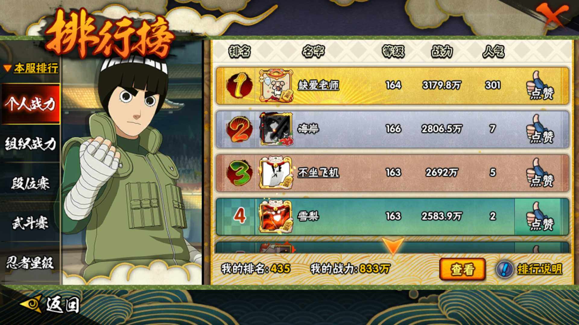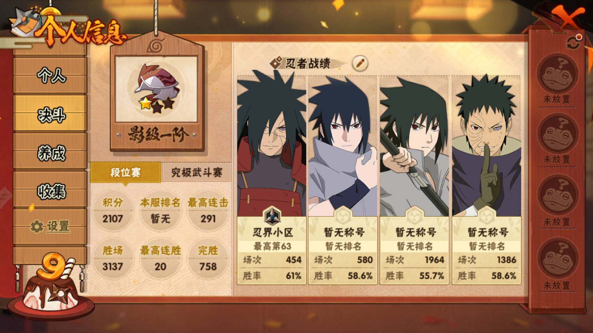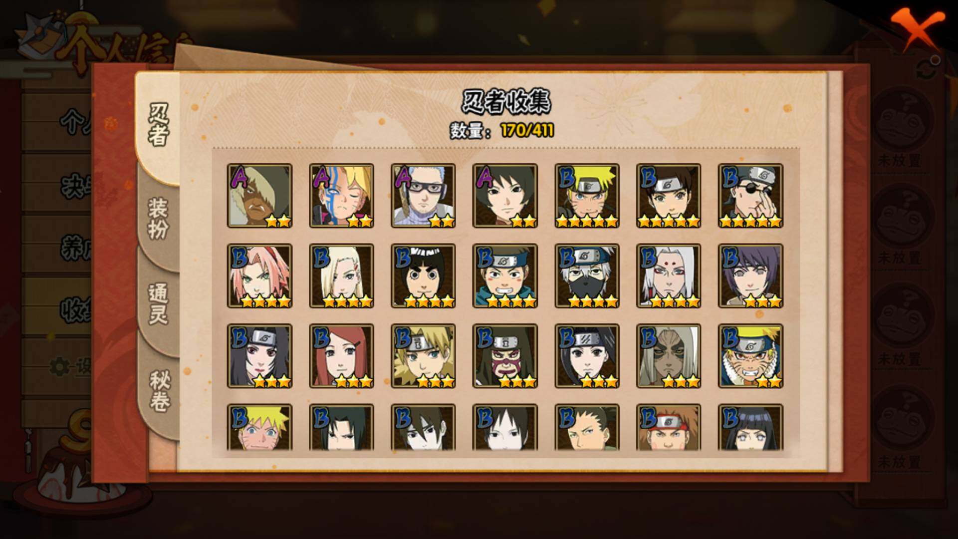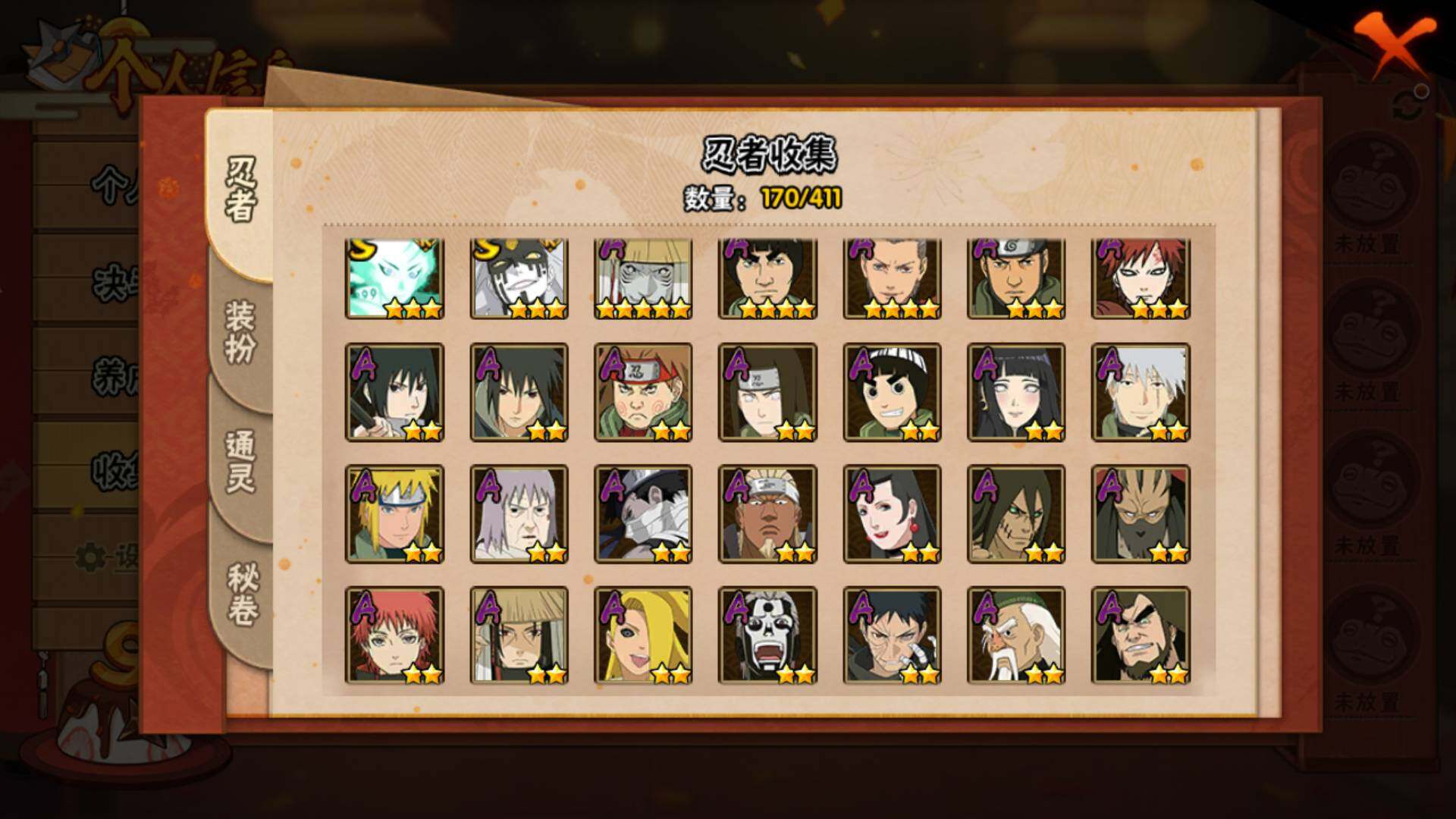 v10/833万战力/总忍者170/23s/30a/暴怒六尾/最终章舍人/红夜带土/须佐止水/创立柱间/九喇嘛水门/须佐卡卡西/传说自来也/白面具/忍战带土/忍战艾/秽土解斑/秽土鼬/秽土日斩/永恒佐助/死门凯/仙人兜/侠隐大野木/漂泊带土/真容卡卡西/秽土再不斩/秽土角都/神农/17通灵/49密卷/3.5千金币/210点卷/鬼灯幻月61片
