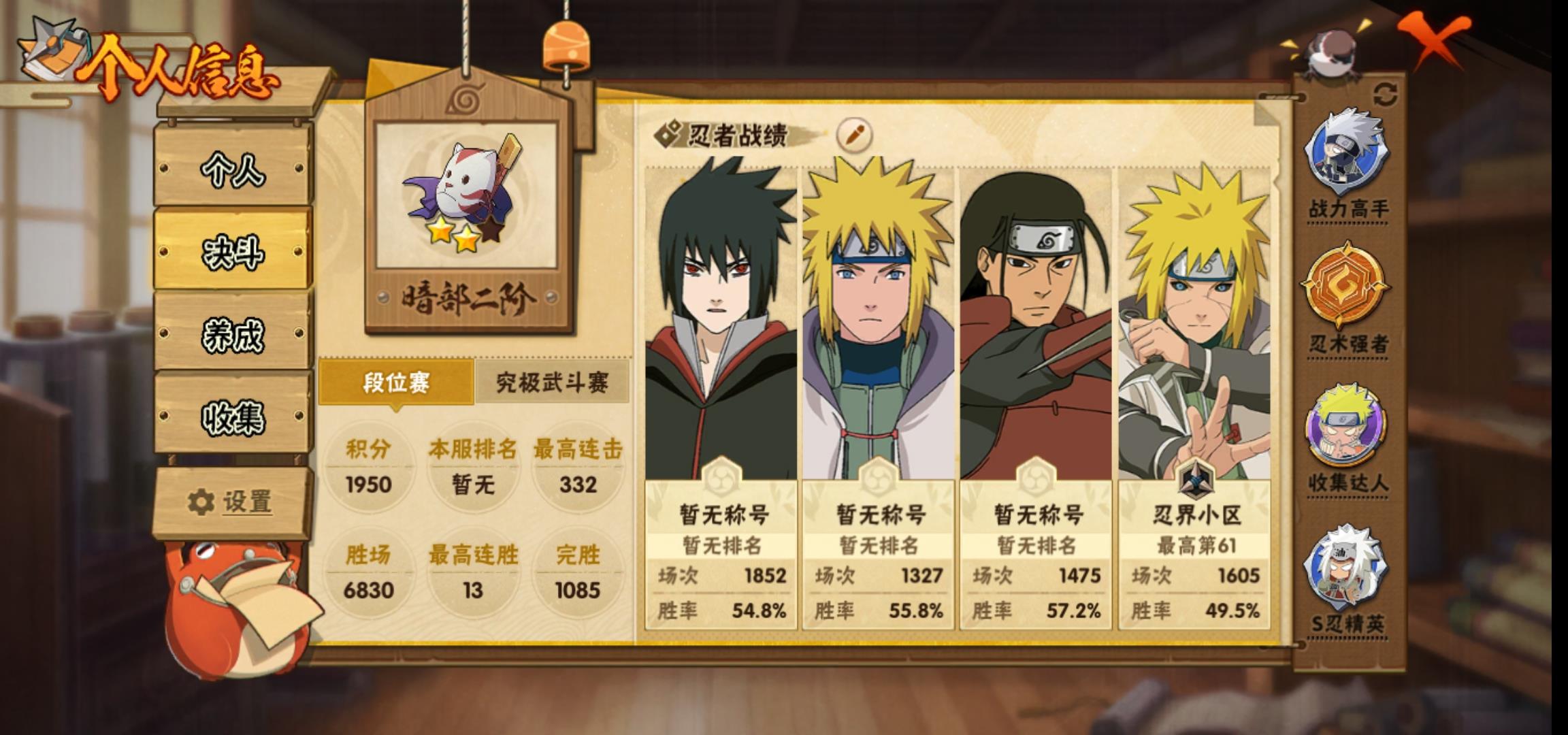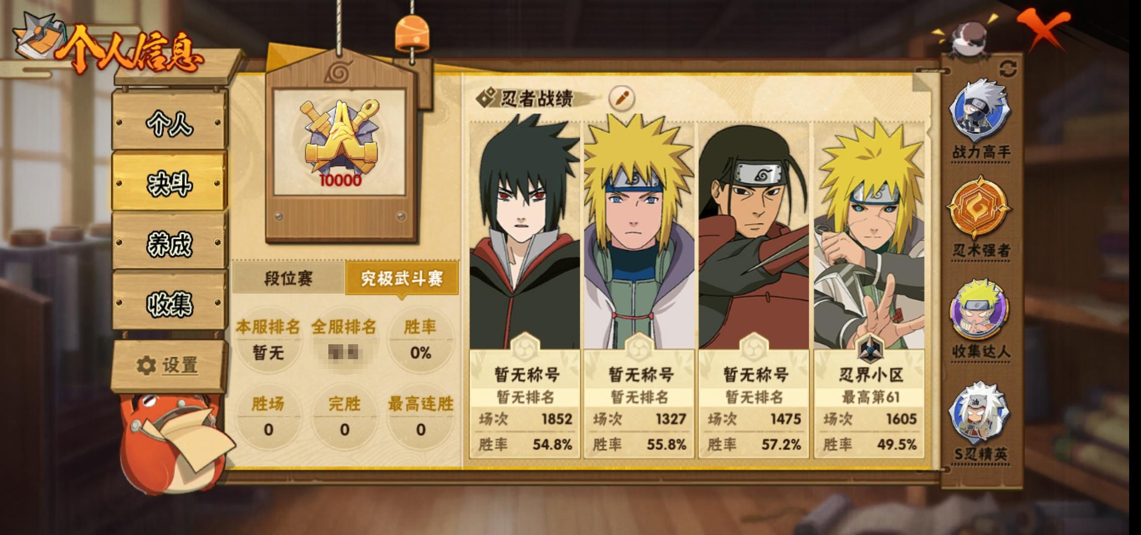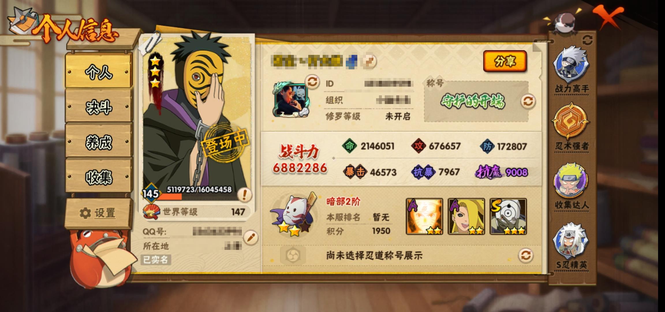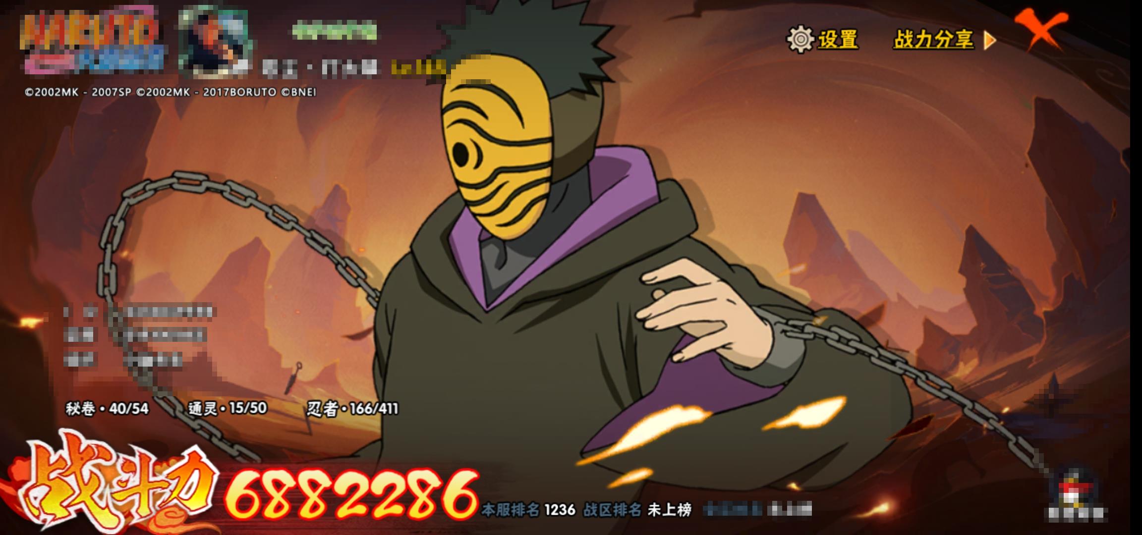 [12927951]0ajdtb 号 vip10,688w战力,s忍19个,a忍31个,本服排名1236,战区排名未上榜,通灵兽15个,1时装,暗部2阶,忍者星数468