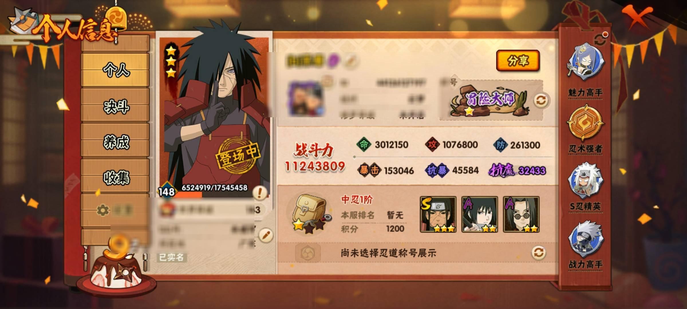 [13386396]贵族等级 v11 s忍数 18 a忍数 37 战力值万 1124