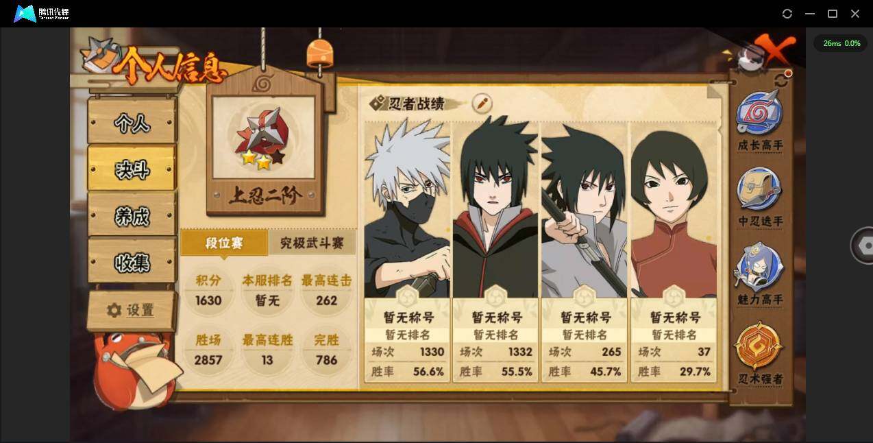 [13666385]实名: 可修改 贵族等级: v3 s忍数: 4 a忍数: 22 战力值万: 463 s级忍者: 佩恩「天道」波风水门宇智波鼬 「须佐能乎」自来也 「舞之豪杰」 热门a级忍者: 宇智波佐助「须佐能乎」