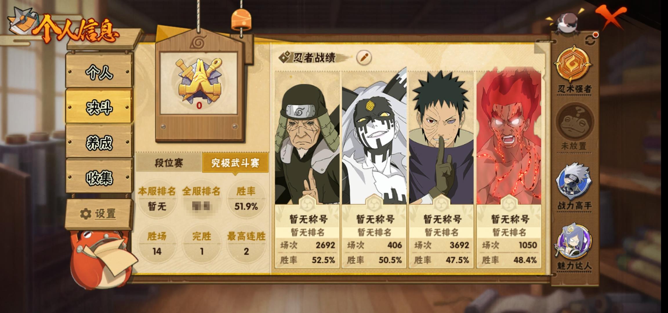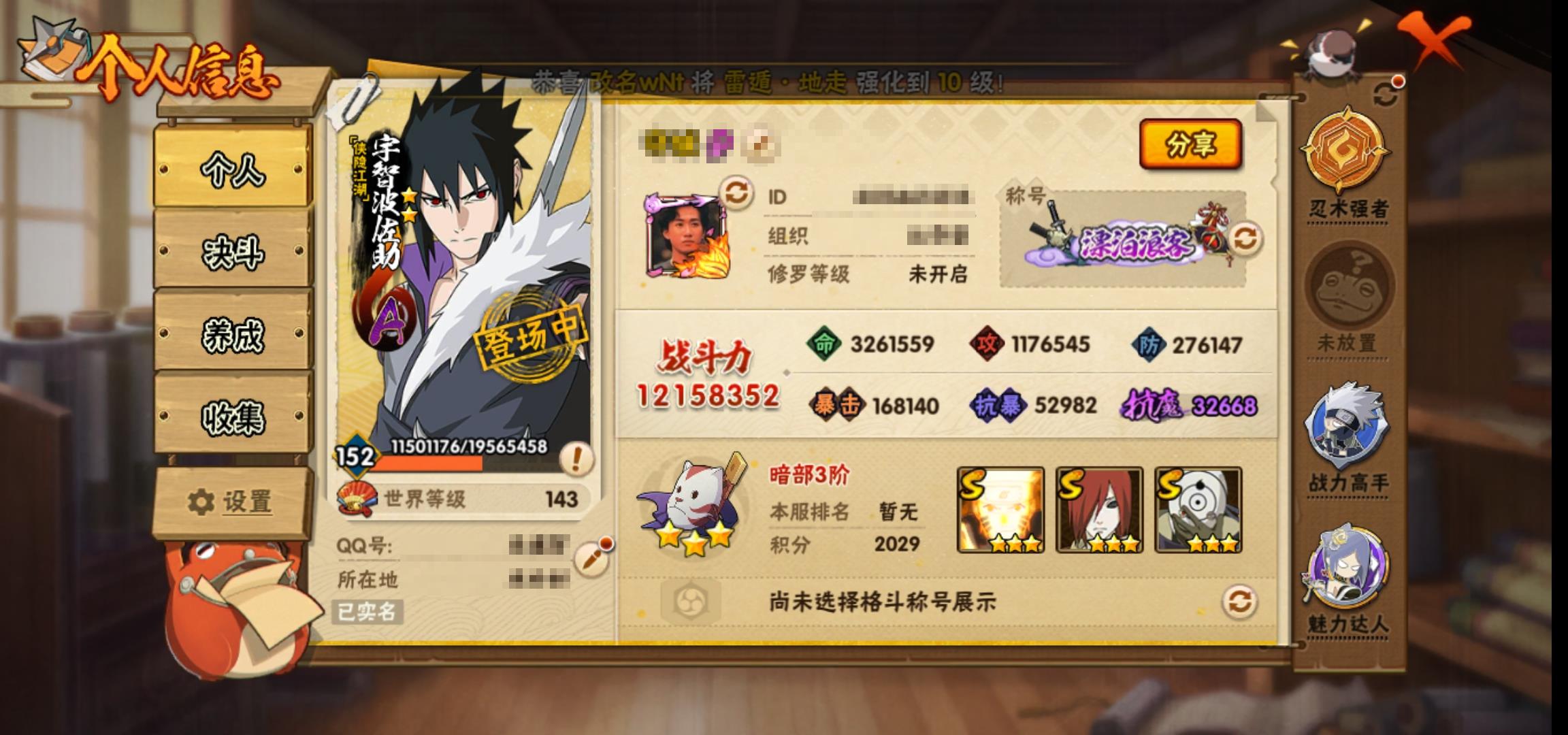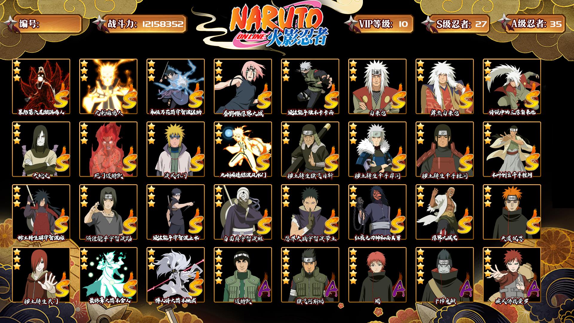 [13773835]0amj4j 号 vip10,1215w战力,s忍27个,a忍35个,本服排名291,战区排名未上榜,通灵兽17个,7时装,暗部3阶,忍者星数484