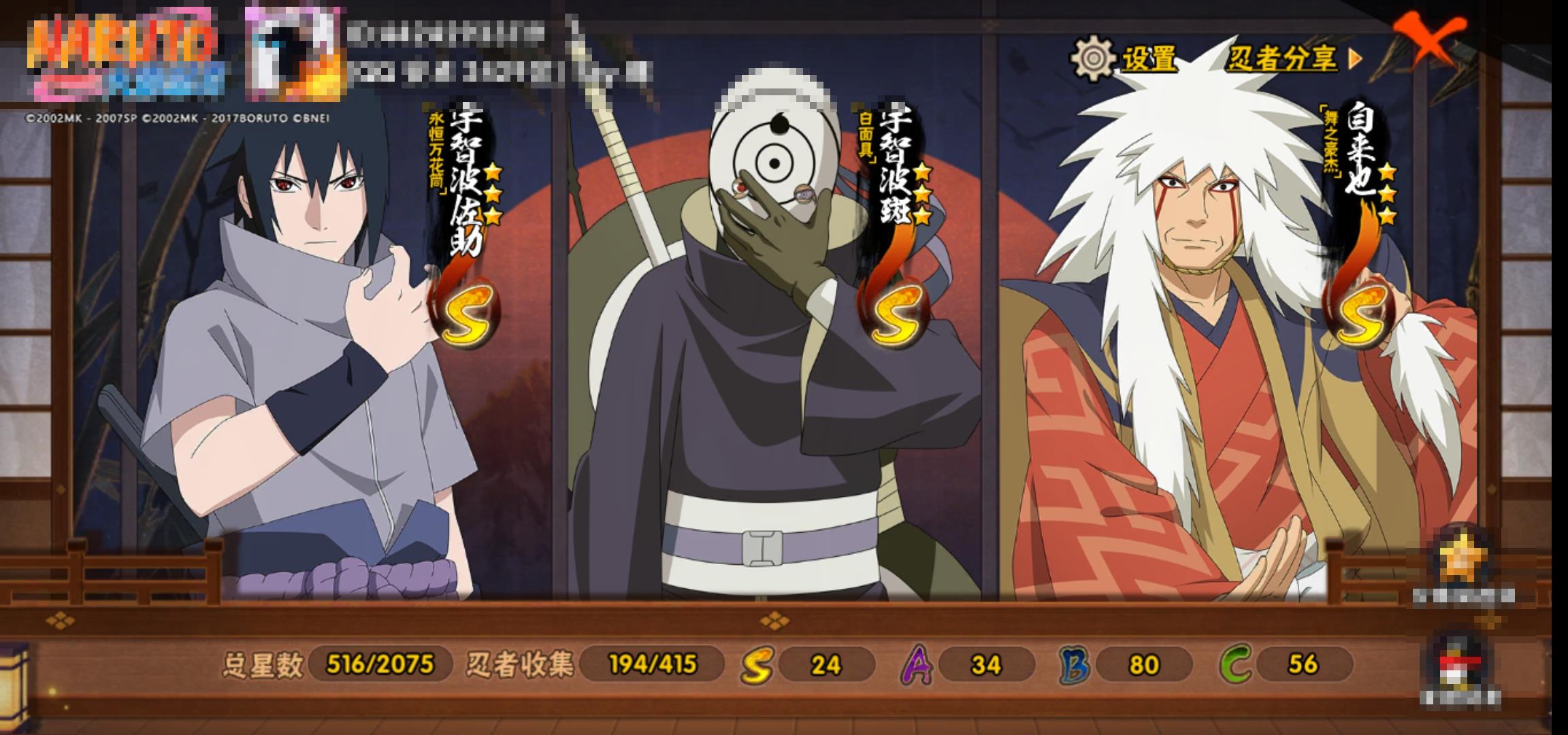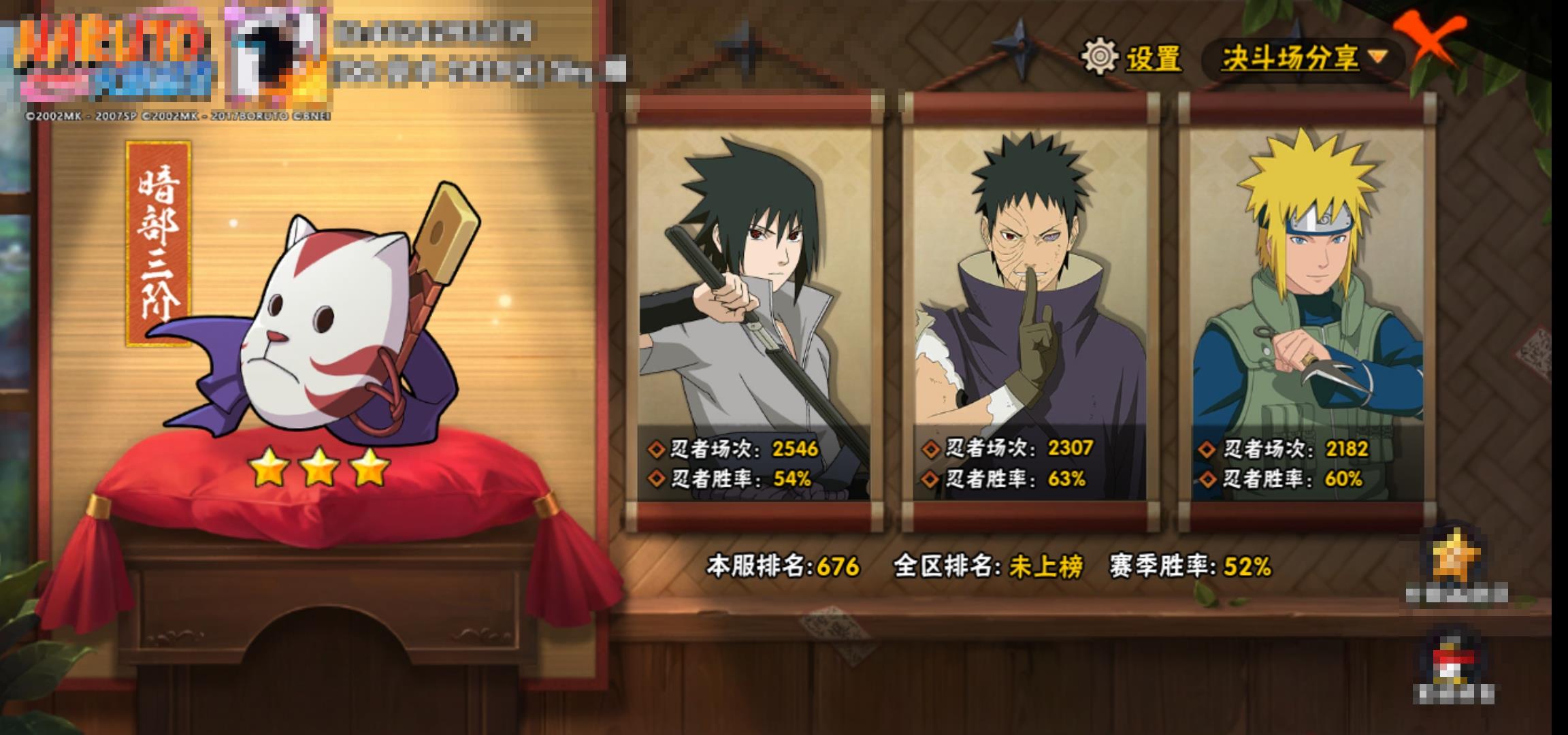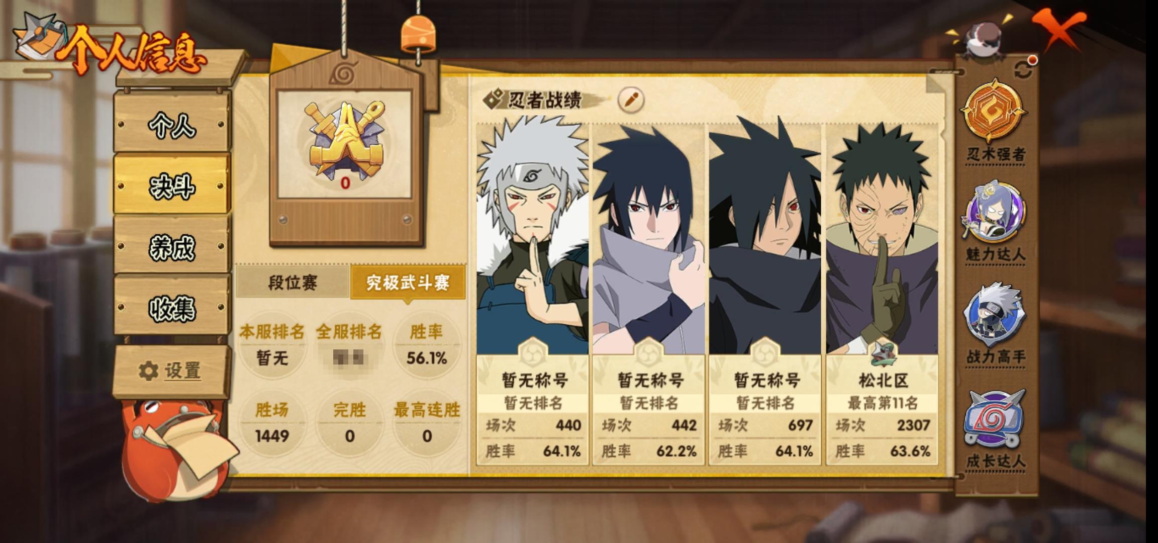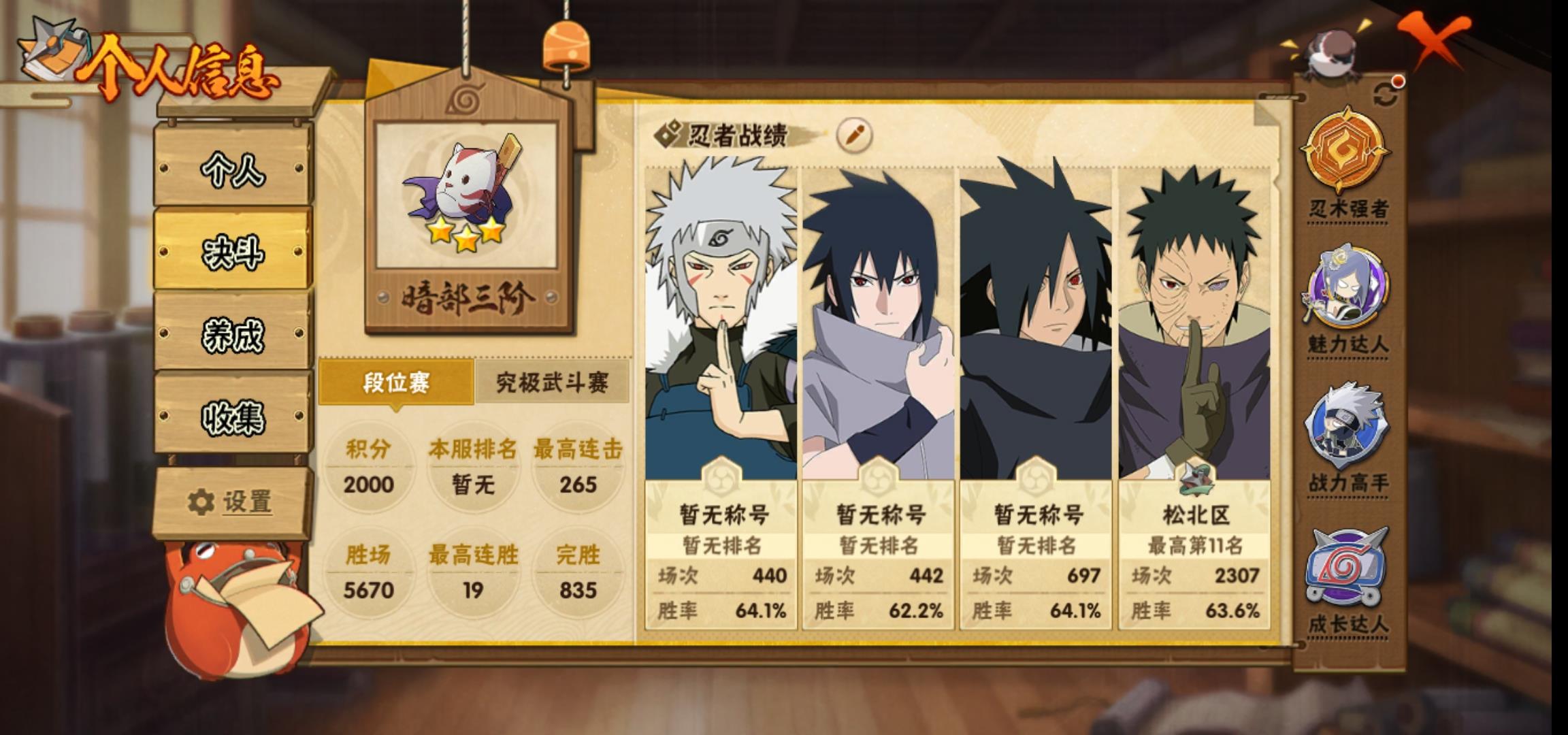 [13937405]0an5s4 号 vip7,1461w战力,s忍24个,a忍34个,本服排名238,战区排名未上榜,通灵兽19个,6时装,暗部3阶,忍者星数516