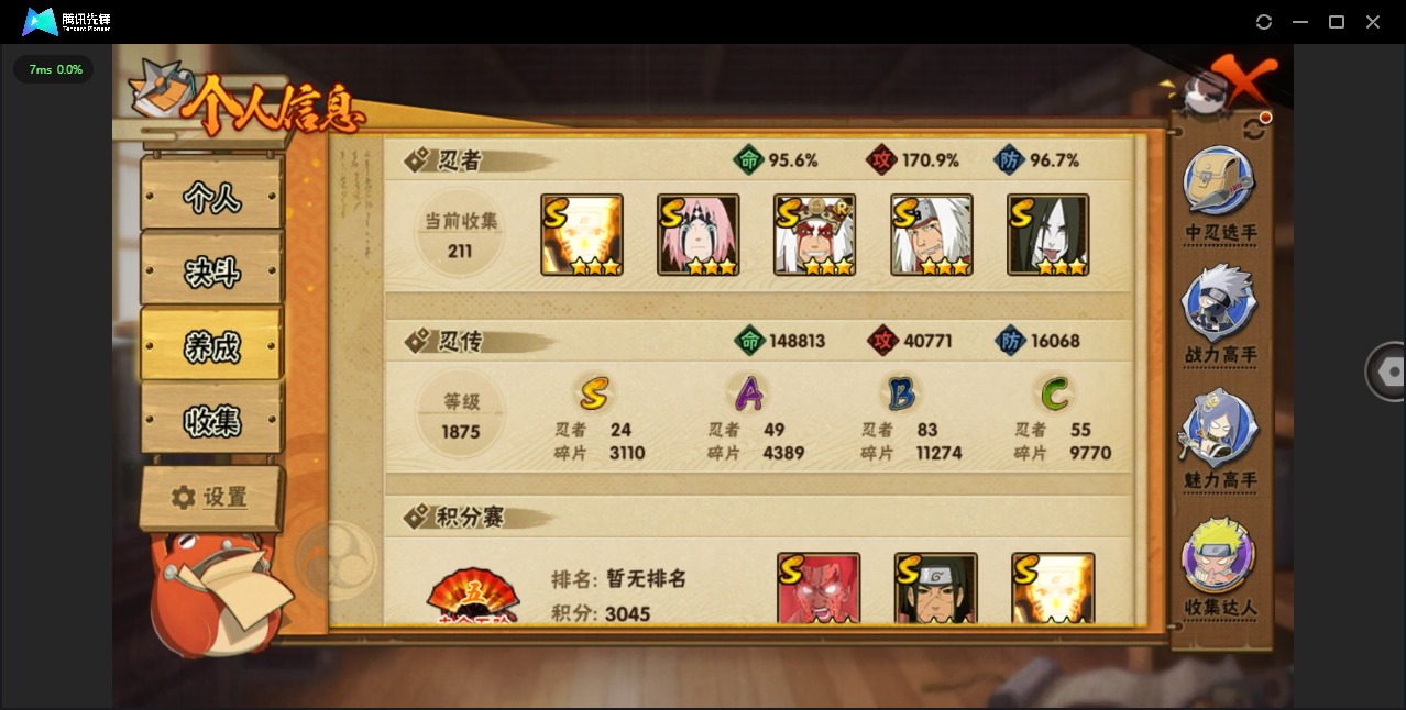 v12 24s忍 49a忍 21通灵 1089.4w战力 可二次 可修改实名 【s级忍者】:艾「忍界大战」大筒木桃式宇智波斑「秽土转生·解」春野樱 「忍界大战」漩涡鸣人 「九喇嘛连结」大野木 「忍界大战」迈特凯「死门」宇智波斑 「木叶创立」宇智波带土 「忍界大战」千手柱间「秽土转