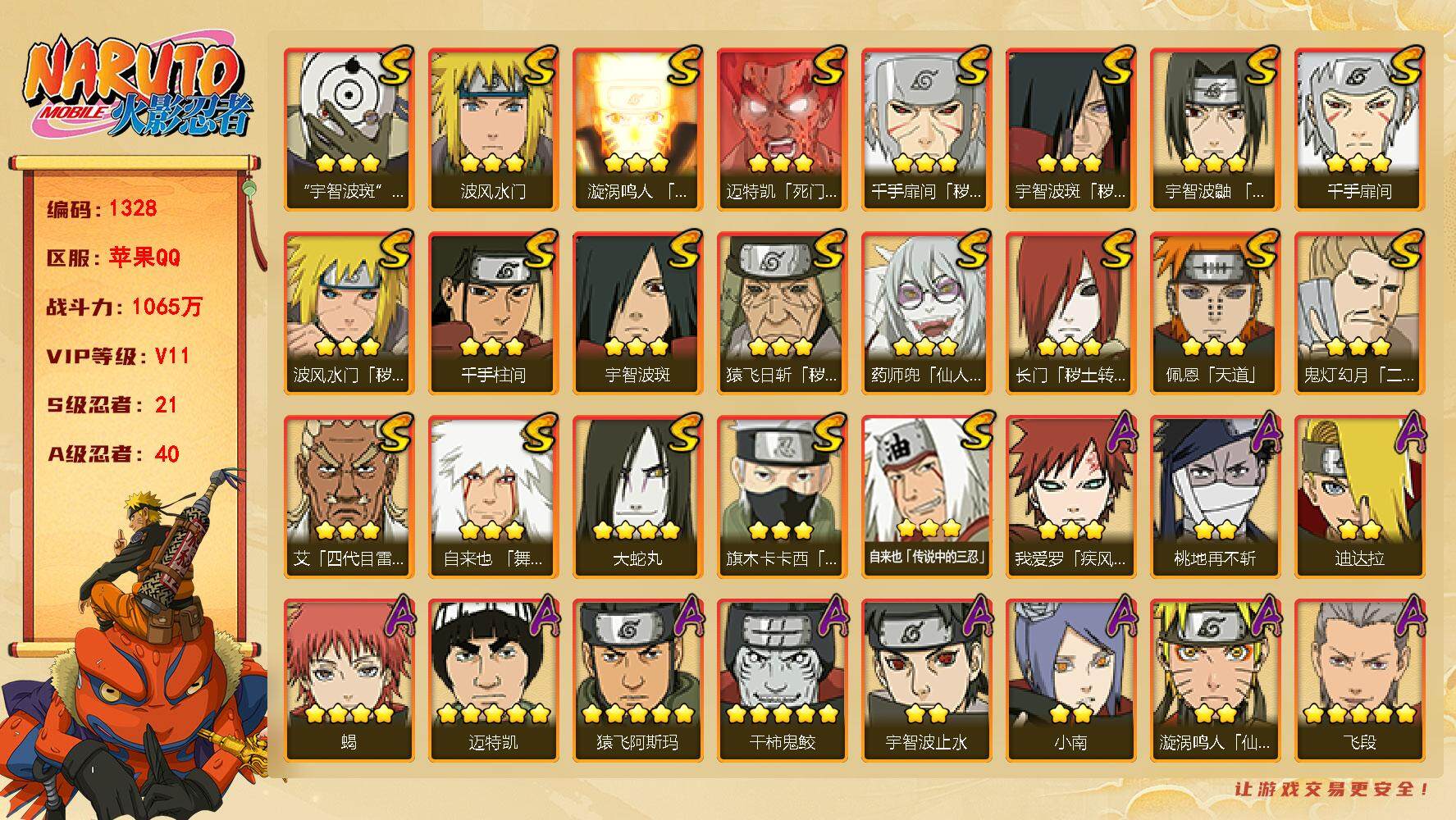 [14201592]v11 21s 40a 1065w战力 自来也碎片62 纲手碎片52 九水门碎片49 日斩碎片71 三代目雷影碎片65 无碎片55 nn1014 【s级忍者】:长门「秽土转生」3星,猿飞日斩「秽土转生」3星,波风水门「秽土转生」3星,千手扉间「秽土转生」3星,宇智波斑「秽土转生」3星,宇智波鼬「须佐能乎」3星,旗木卡卡西「须佐能乎」3星,艾「四代目雷影」3星,鬼灯幻月「二代目水影」3星,自来也「舞之豪杰」3星,大蛇丸4星,自来也「传说中的三忍」3星,千手柱间3星,千手扉间3星,宇智波斑3星,波风水门3星,药师兜「仙人模式」3星,漩涡鸣人「九喇嘛连结」3星,迈特凯「死门」3星,佩恩「天道」3星,宇智波斑 「白面具」3星宇智波斑「白面具」 【a级忍者】:艾「青年」2星,三船2星,波风水门「青年」2星,达鲁伊「博人传」2星,迪达拉2星,迪达拉「秽土转生」2星,大蛇丸「晓」2星,奇拉比2星,奇拉比「忍界大战」2星,飞段5星,飞段「死司凭血」2星,干柿鬼鲛5星,漩涡鸣人「仙人模式」2星,漩涡鸣人「九尾查克拉」2星,迈特凯5星,旗木卡卡西「幻之真容」2星,桃地再不斩2星,桃地再不斩「秽土转生」2星,我爱罗「疾风传」3星,我爱罗「忍界大战」2星,蝎4星,蝎「绯流琥」2星,小南2星,角都「晓创生」2星,猿飞阿斯玛5星,宇智波止水2星,宇智波鼬2星,宇智波佐助「须佐能乎」2星,宇智波佐助「万花筒写轮眼」2星,药师兜「半蛇斗篷」2星,照美冥「五代目水影」2星,绝2星,猿飞木叶丸「博人传」2星,黑土「博人传」2星,春野樱「百豪」2星,秋道丁次「忍界大战」2星,千代「近松十人卫」2星,神农「羁绊」2星,不缘2星,宇智波泉奈2星