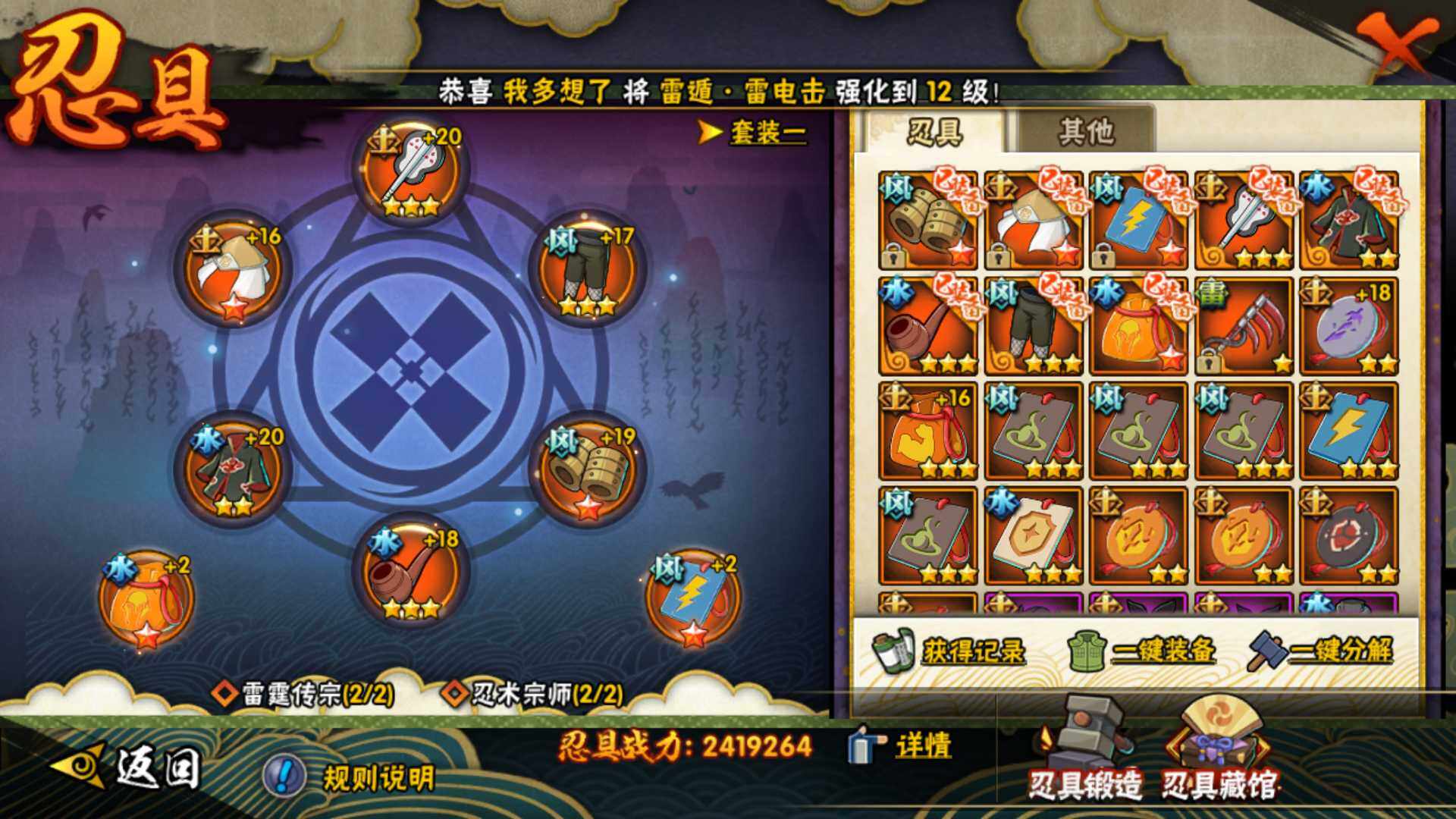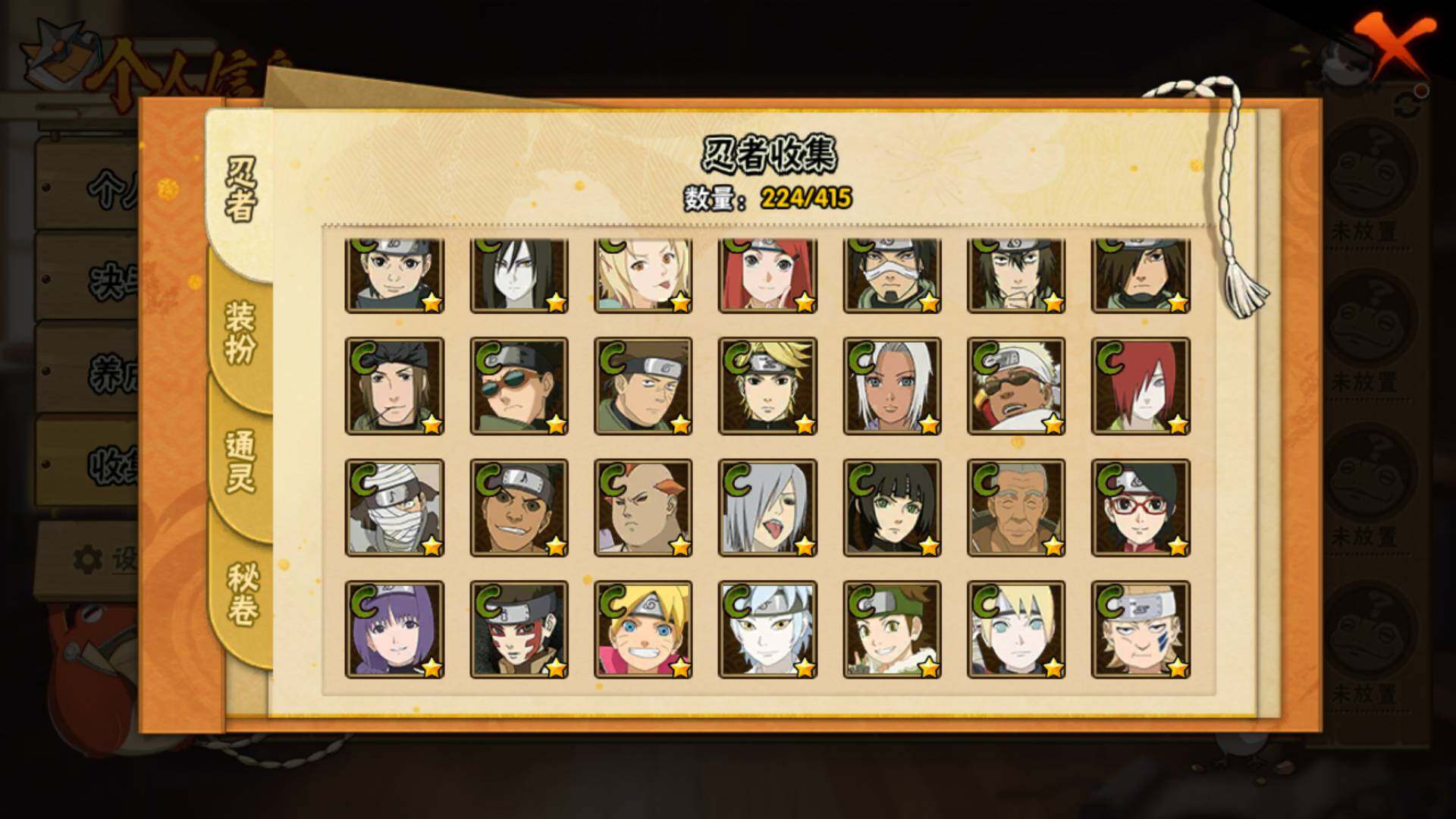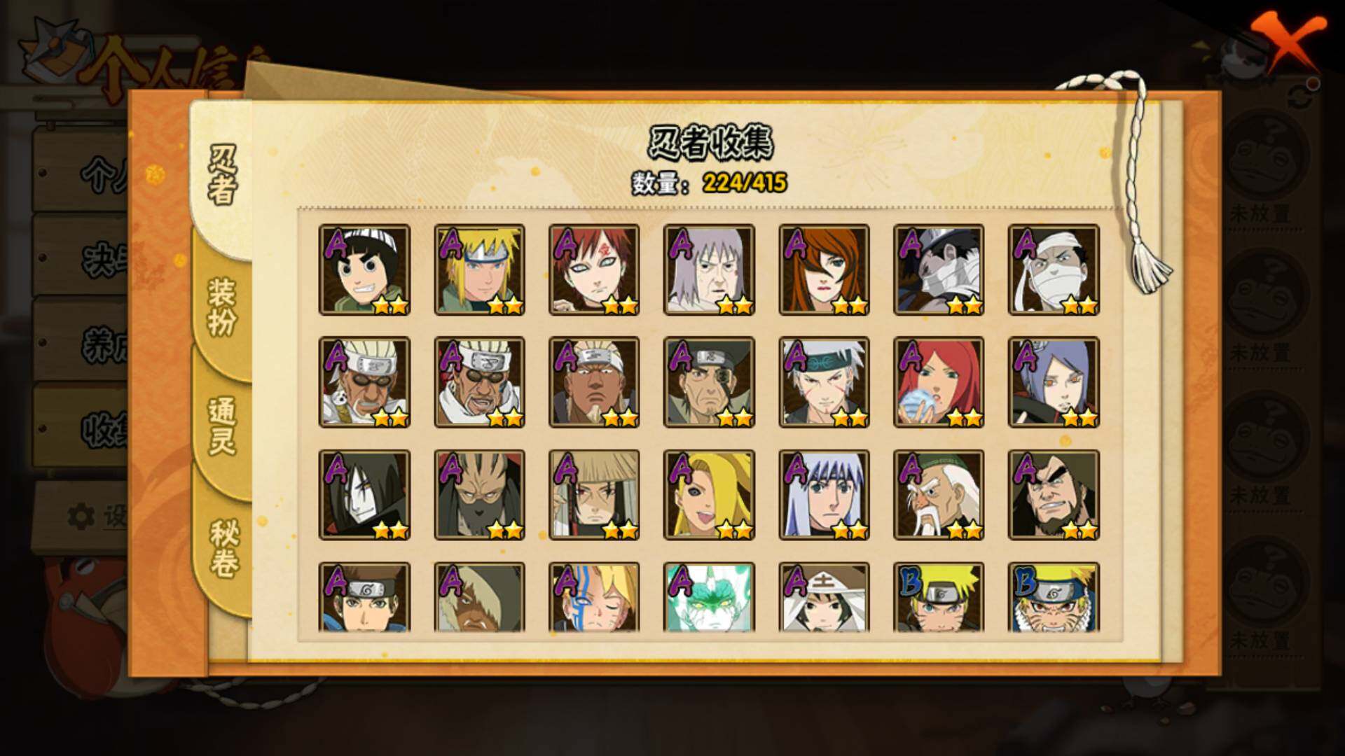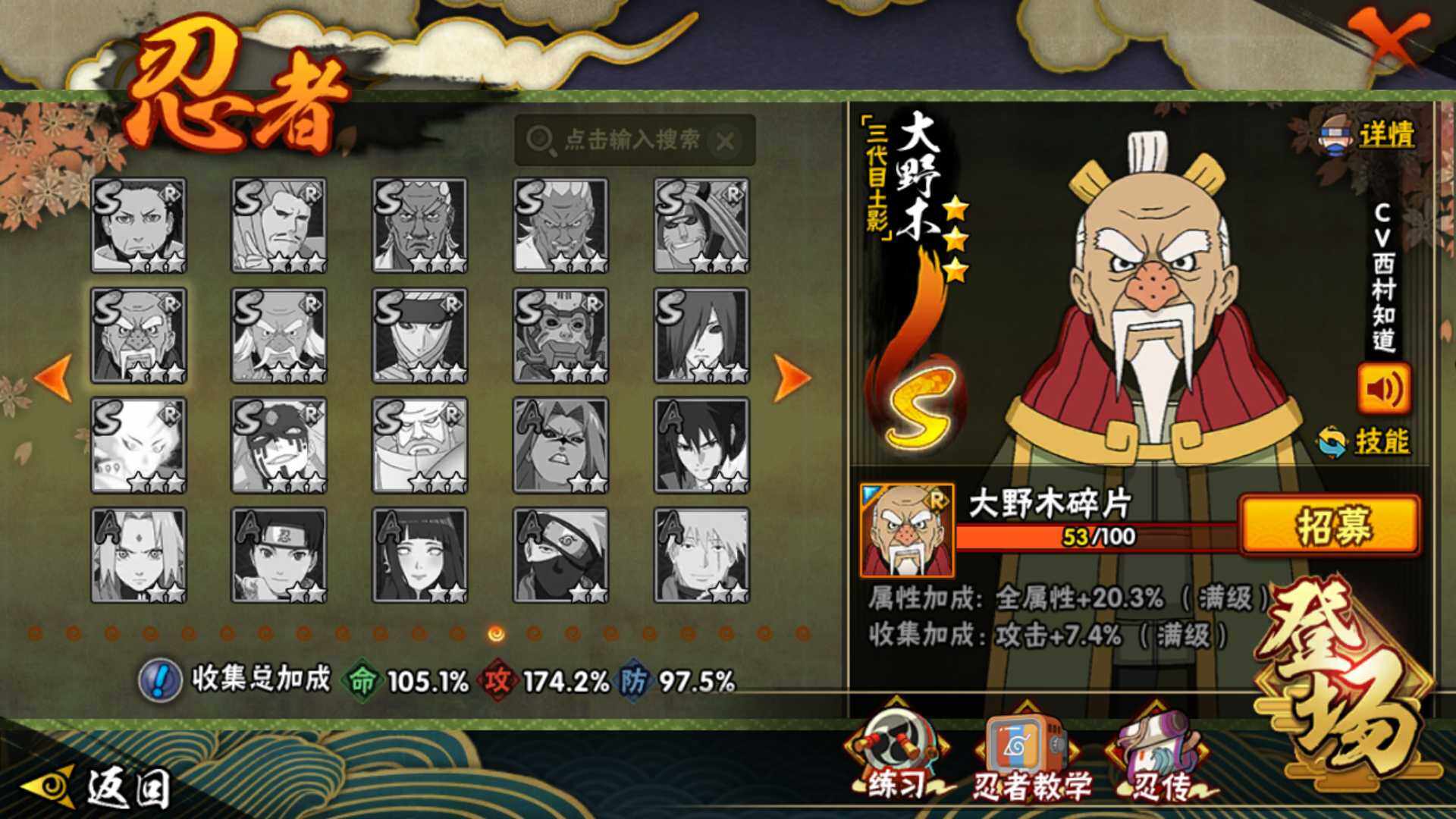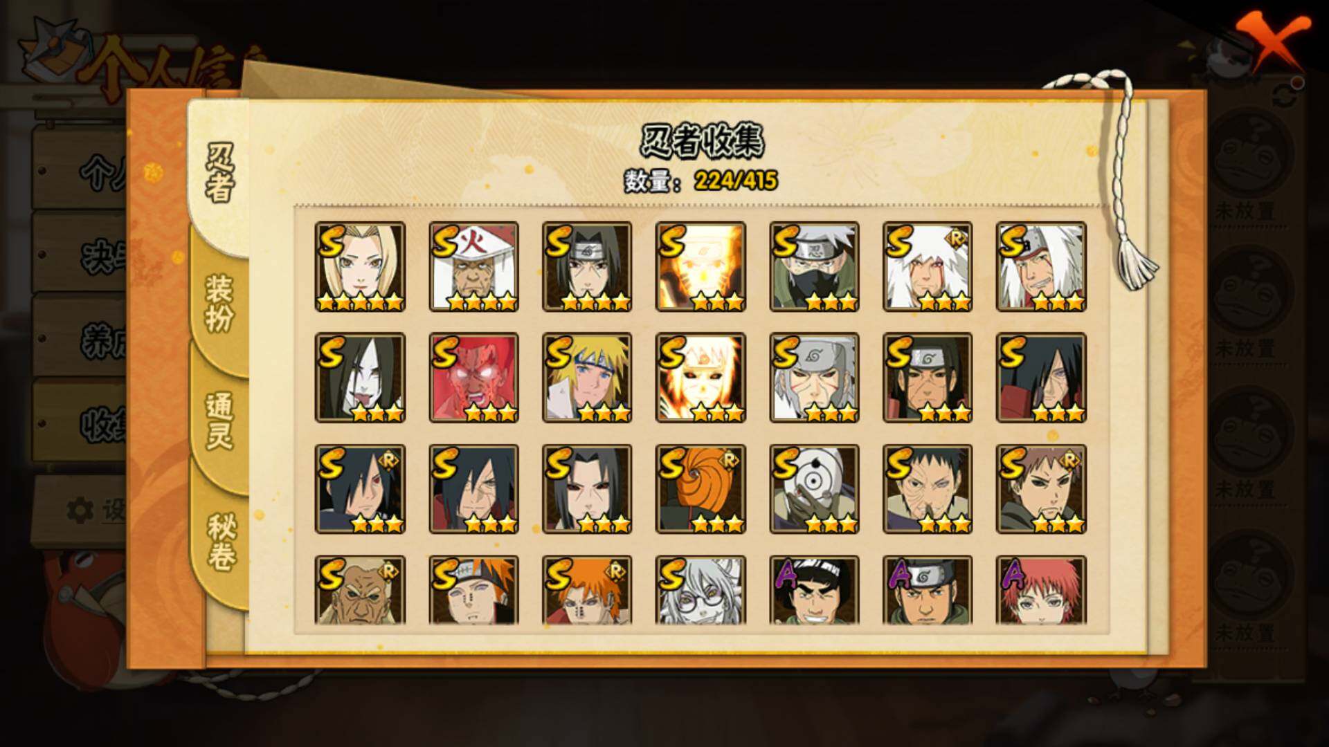 [14249203]v11 1771万战力 25s-43a 自来也57片 仙人自来也84片 大野木53片 无50片 ll5461 【s级忍者】:千手扉间「秽土转生」3星,千手柱间「秽土转生」3星,宇智波鼬「秽土转生」3星,宇智波斑「秽土转生」3星,宇智波斑「秽土转生·解」3星,宇智波带土「忍界大战」3星,宇智波鼬「须佐能乎」4星,旗木卡卡西「须佐能乎」3星,宇智波斑「木叶创立」3星,罗砂「四代目风影」3星,艾「三代目雷影」3星,自来也「舞之豪杰」3星,大蛇丸3星,自来也「传说中的三忍」3星,纲手5星,猿飞日斩4星,波风水门3星,药师兜「仙人模式」3星,漩涡鸣人「九喇嘛连结」3星,迈特凯「死门」3星,佩恩「天道」3星,佩恩·天道「超」3星,宇智波斑 「白面具」3星宇智波斑「白面具」,波风水门「九喇嘛连结」3星,宇智波斑「五影会谈」3星 【a级忍者】:艾「青年」2星,波风水门「青年」2星,达鲁伊「博人传」2星,迪达拉3星,迪达拉「秽土转生」2星,大蛇丸「晓」2星,奇拉比2星,奇拉比「忍界大战」2星,飞段4星,飞段「死司凭血」3星,干柿鬼鲛5星,漩涡博人「桃式显现」2星,漩涡鸣人「仙人模式」2星,漩涡鸣人「九尾查克拉」2星,机械鸣人「初始形态」2星,迈特凯5星,桃地再不斩「漂泊武士」2星,桃地再不斩「秽土转生」2星,我爱罗「疾风传」3星,我爱罗「忍界大战」2星,蝎5星,蝎「绯流琥」2星,小南2星,猿飞阿斯玛5星,宇智波鼬2星,宇智波佐助「须佐能乎」3星,宇智波佐助「万花筒写轮眼」2星,照美冥「五代目水影」2星,日向宁次「忍界大战」2星,神秘面具男「忍者之路」2星,李洛克「忍界大战」2星,猿飞木叶丸「博人传」2星,黑土「博人传」2星,千手扉间「漂泊武士」2星,秋道丁次「忍界大战」2星,千代「近松十人卫」2星,神农「羁绊」2星,土台「忍界大战」2星,不风2星,加藤断2星,宇智波泉奈2星,大野木「侠隐江湖」2星,巳月「仙人模式」2星