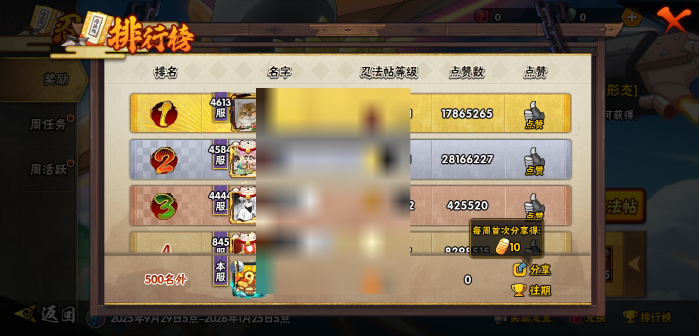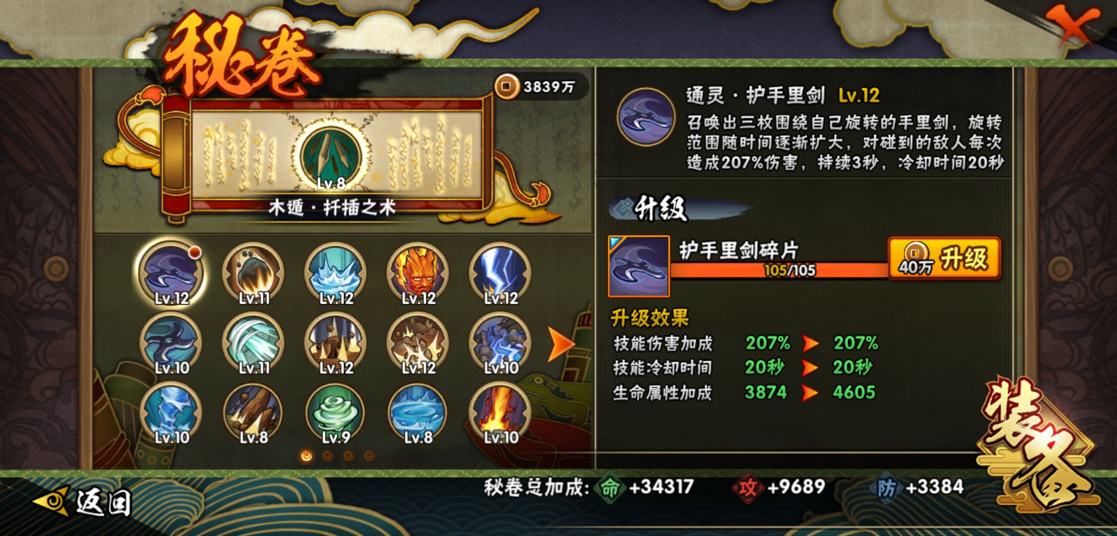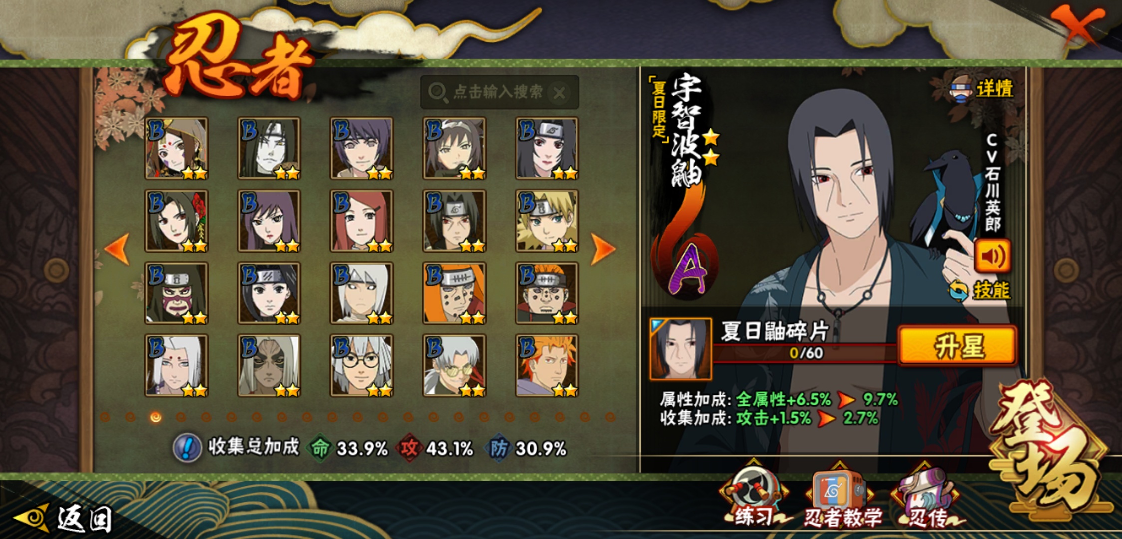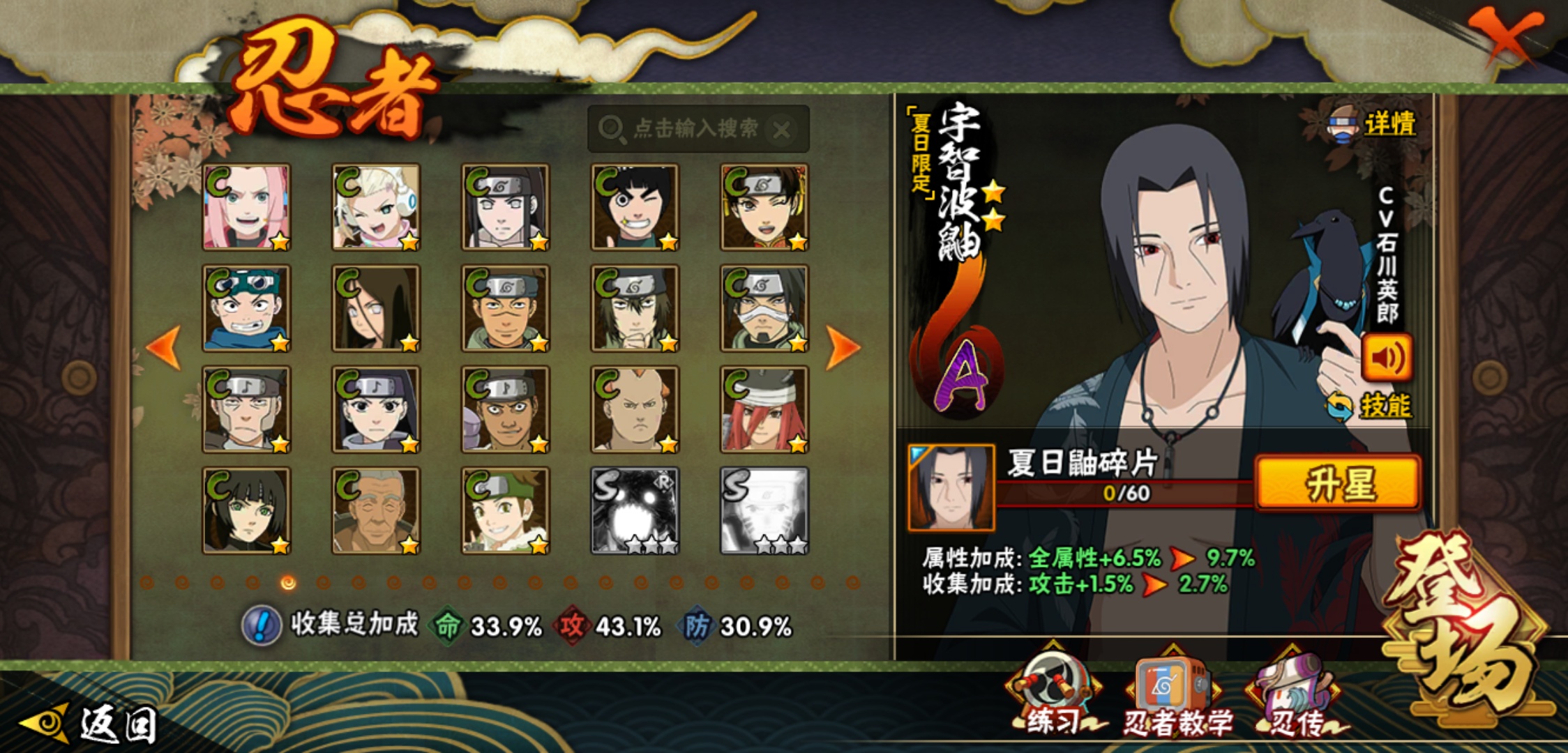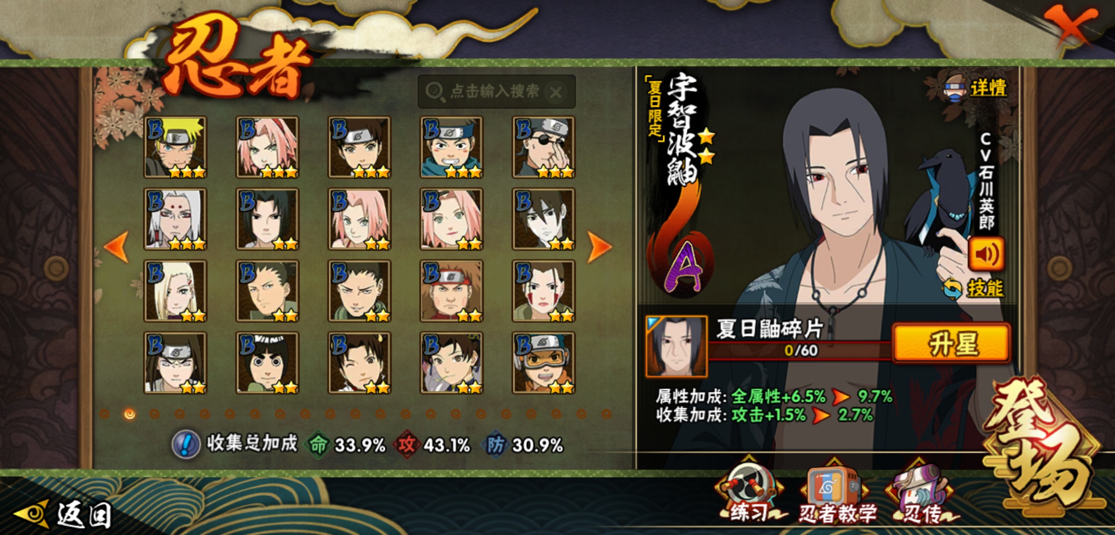【火影忍者】【lyhy8864】战斗力:382w;段位:下忍1阶;本服排名:2659;vip:v6级;s忍:5个;a忍:15个;通灵兽:13个,s忍:舞之豪杰自来也|死门迈特凯|波风水门|天道佩恩|最终章大筒木舍人__a忍:须佐能乎宇智波佐助|宇智波泉奈|迈特凯(普通)|猿飞阿斯玛(普通)|青年波风水门|疾风传我爱罗|青年长门|地怨虞角都|秽土转生角都|绯流琥蝎|蝎(普通)|夏日限定宇智波鼬|干柿鬼鲛(普通)|飞段(普通)|死司凭血飞段__通灵兽:忍犬(普通)|蓝蛇|蛤蟆吉|忍龟|镰鼬|猿魔|砂之守鹤|山椒鱼|蜃|蛤蟆仙人|鲛鲨|蛤蟆健|乌鸦(普通)