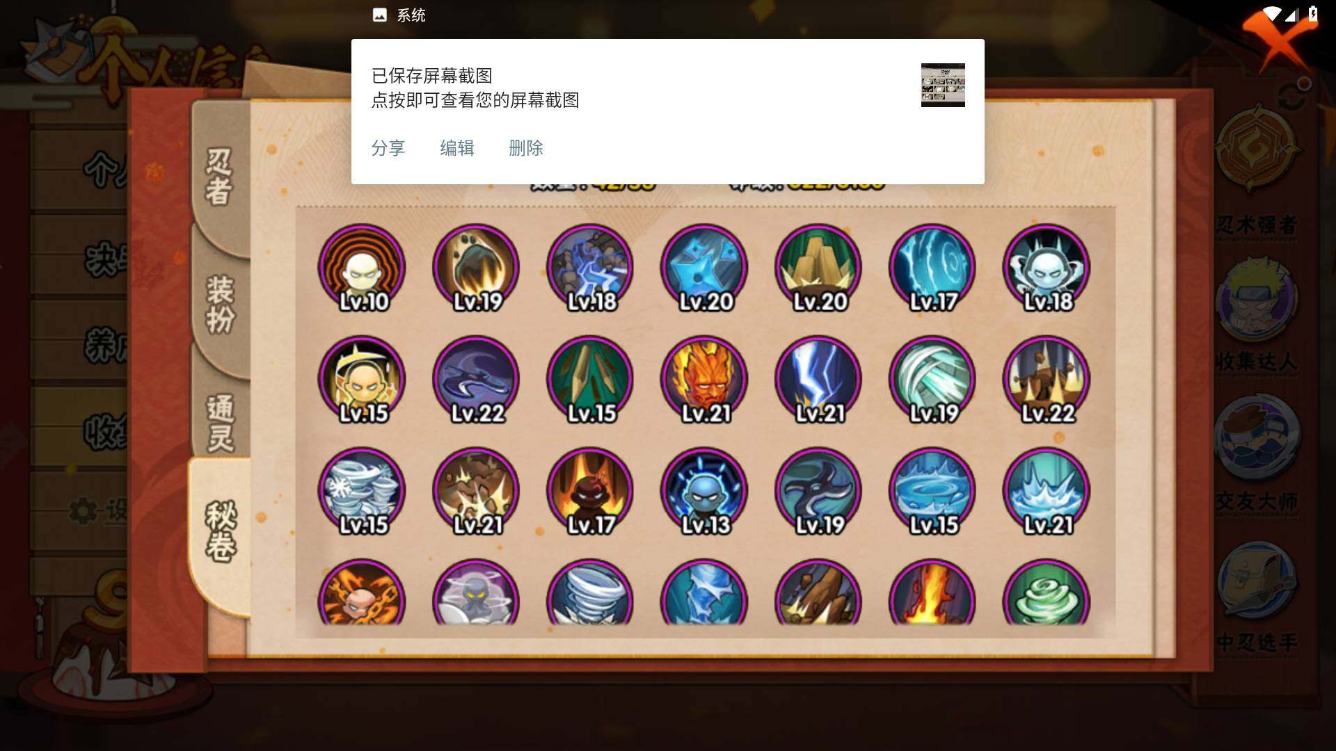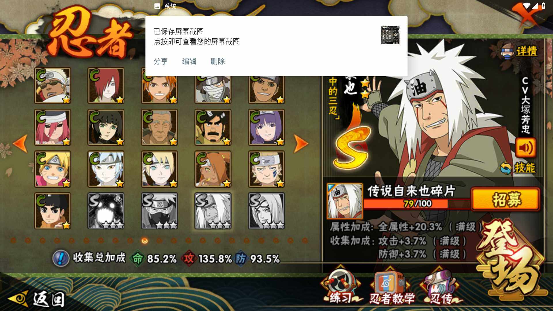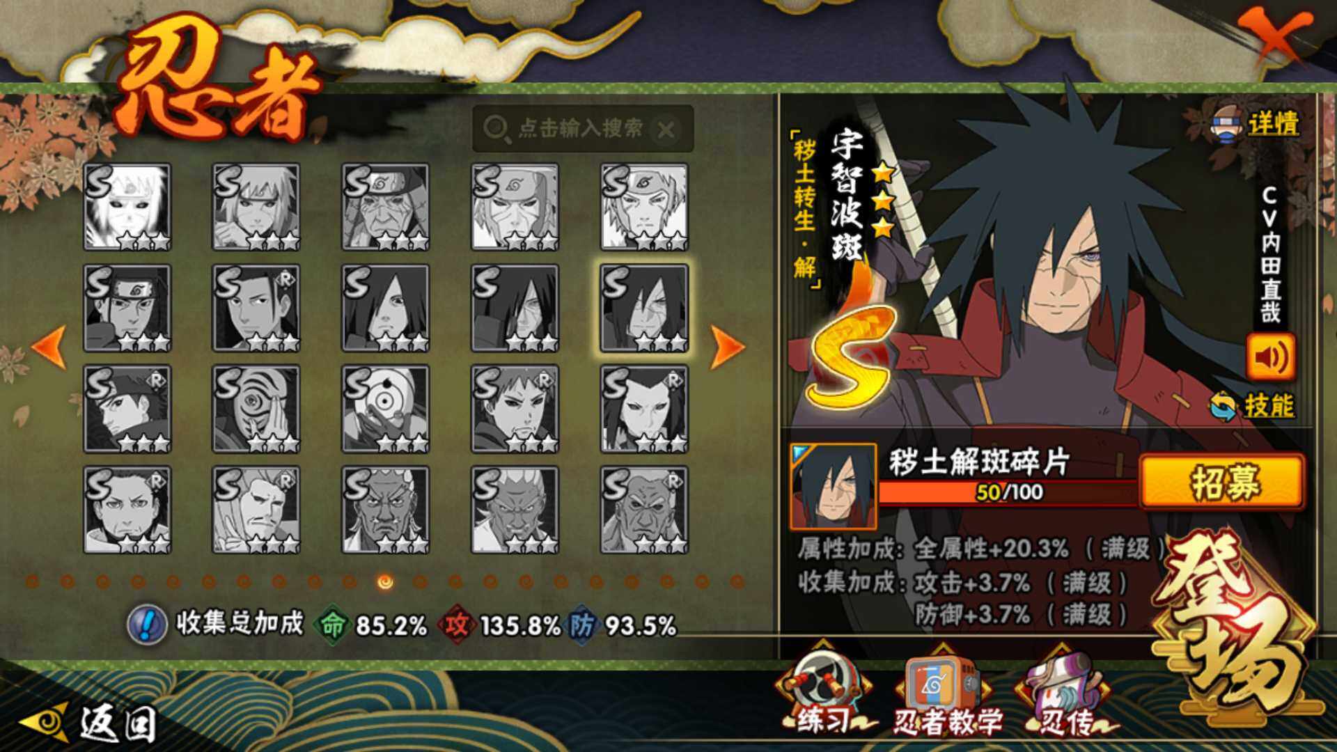 [14282363]v11 19s 32a 1240万战力 须佐卡卡西60片 传说自来也79片 秽土解斑50片 白面具63片 忍战艾68片 鬼灯幻月58片 大野木75片 zp3144 【s级忍者】:千手柱间「秽土转生」3星,宇智波鼬「秽土转生」3星,大野木「忍界大战」3星,春野樱「忍界大战」3星,宇智波带土「忍界大战」3星,宇智波鼬「须佐能乎」3星,宇智波斑「木叶创立」3星,自来也3星,自来也「仙人模式」3星,自来也「舞之豪杰」3星,大蛇丸3星,纲手5星,猿飞日斩4星,波风水门4星,神秘面具男「红夜之刃」3星,漩涡鸣人「九喇嘛连结」3星,迈特凯「死门」3星,佩恩「天道」3星,宇智波佐助「永恒万花筒」3星 【a级忍者】:艾「青年」2星,长门「青年」2星,波风水门「青年」3星,达鲁伊「博人传」2星,迪达拉2星,迪达拉「秽土转生」2星,奇拉比2星,奇拉比「忍界大战」2星,飞段3星,飞段「死司凭血」2星,干柿鬼鲛5星,漩涡鸣人「九尾查克拉」2星,迈特凯5星,桃地再不斩「秽土转生」2星,我爱罗「疾风传」4星,蝎5星,蝎「绯流琥」2星,猿飞阿斯玛5星,宇智波鼬2星,宇智波佐助「须佐能乎」2星,宇智波佐助「万花筒写轮眼」2星,照美冥「侠隐江湖」2星,照美冥「五代目水影」2星,日向宁次「忍界大战」2星,长十郎「六代目水影」2星,佩恩·六道「漂泊浪客」2星,李洛克「忍界大战」2星,千手扉间「漂泊武士」2星,秋道丁次「忍界大战」2星,千代「近松十人卫」2星,宇智波泉奈2星,不动2星