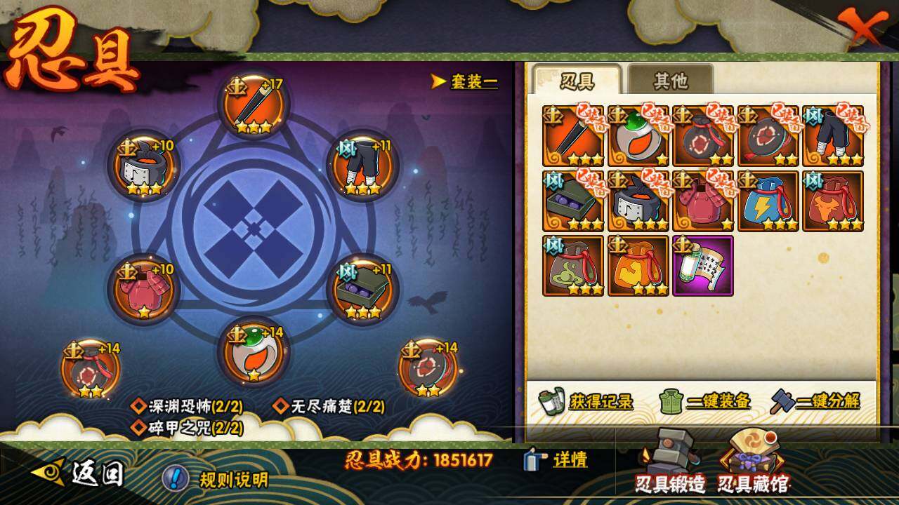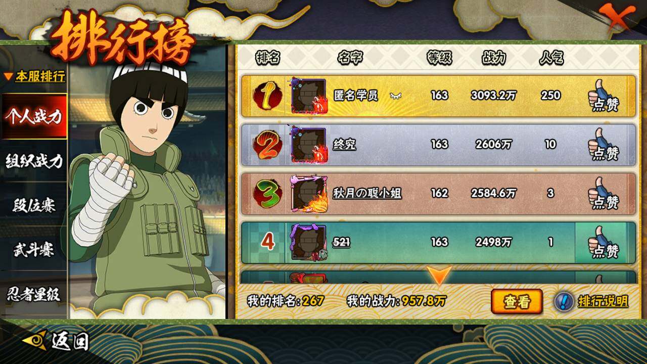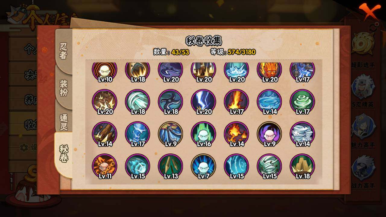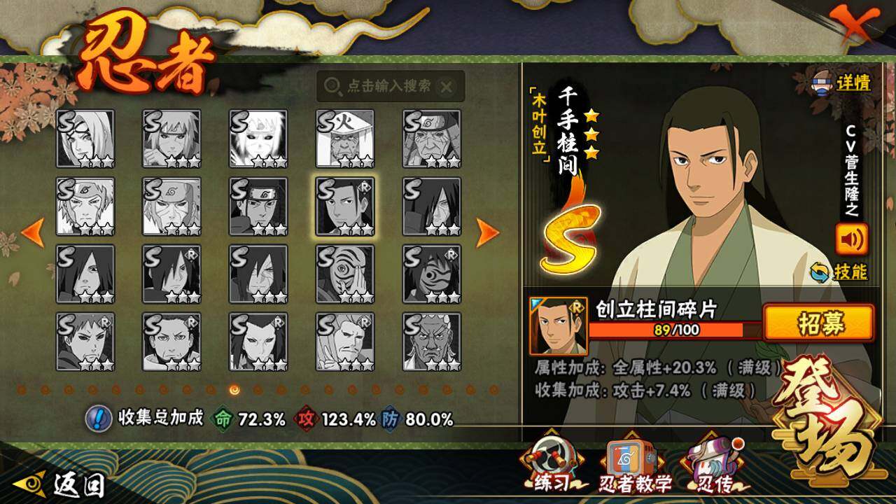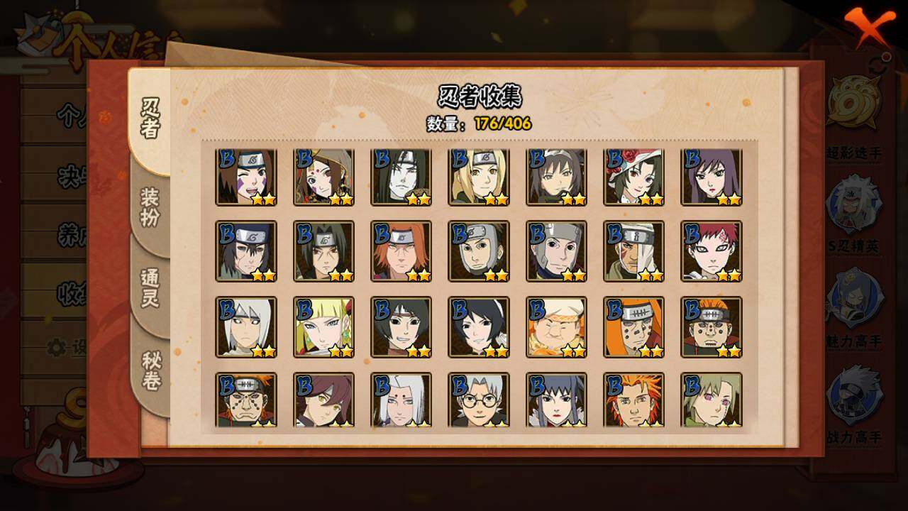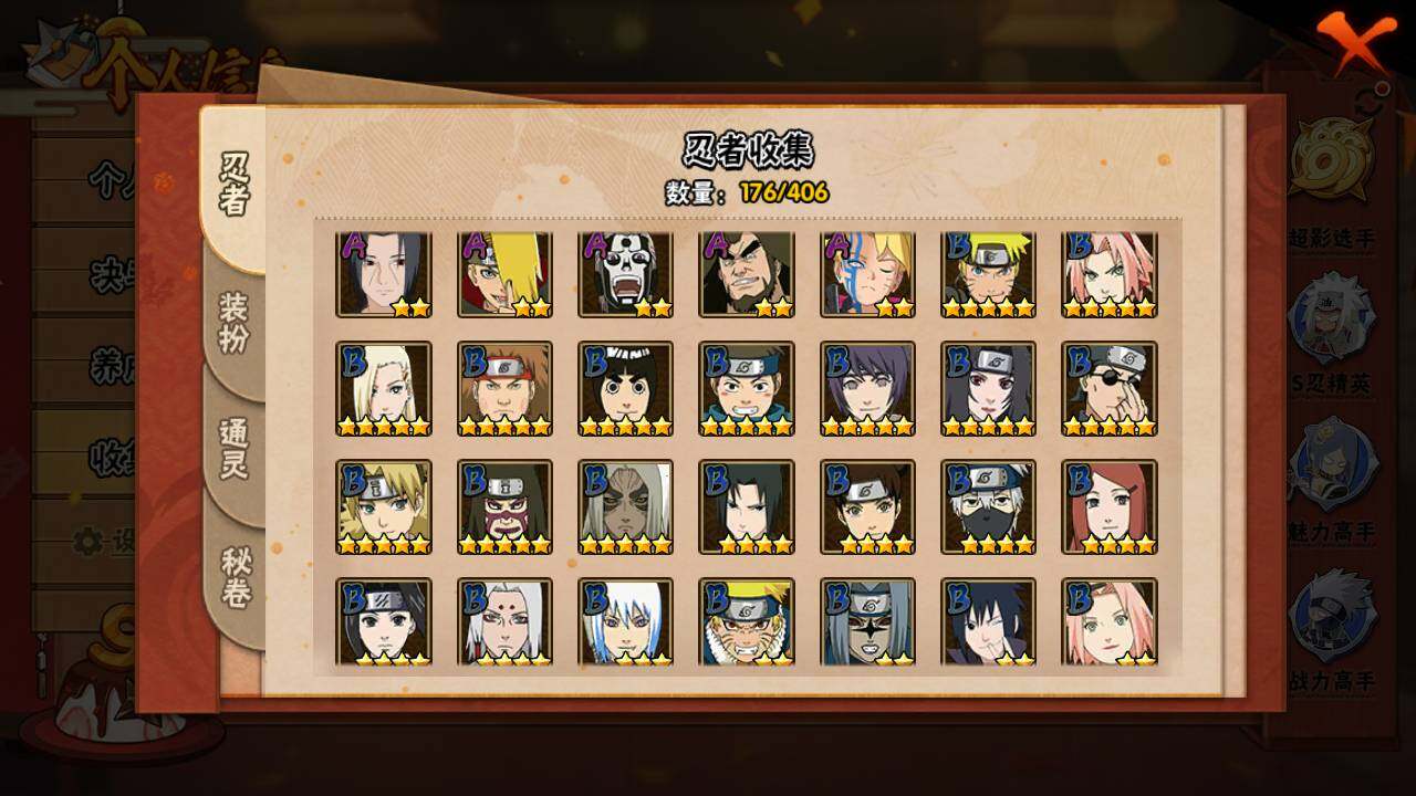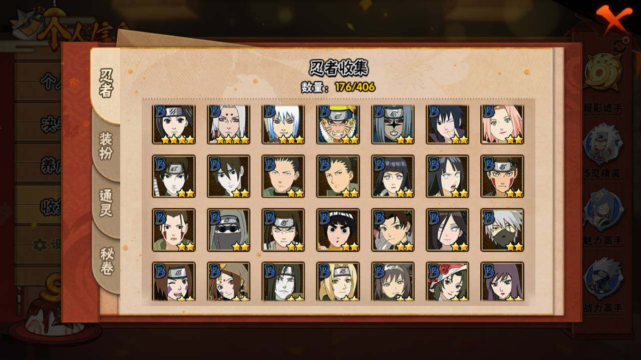 [14323133]v10 957万战力 19s级忍者数-28a级忍者数 自来也59片九喇嘛水门59片 创立柱间89片ll5185 【s级忍者】:长门「秽土转生」3星,千手柱间「秽土转生」3星,宇智波鼬「秽土转生」3星,大野木「忍界大战」3星,春野樱「忍界大战」3星,宇智波带土「忍界大战」3星,宇智波鼬「须佐能乎」3星,宇智波止水「须佐能乎」3星,旗木卡卡西「须佐能乎」3星,自来也「舞之豪杰」3星,大蛇丸3星,自来也「传说中的三忍」3星,波风水门3星,药师兜「仙人模式」3星,漩涡鸣人「九喇嘛连结」3星,迈特凯「死门」3星,佩恩「天道」3星,宇智波佐助「永恒万花筒」3星,宇智波斑 「白面具」3星宇智波斑「白面具」 【a级忍者】:艾「青年」3星,波风水门「青年」2星,迪达拉2星,飞段3星,飞段「死司凭血」2星,干柿鬼鲛5星,漩涡博人「桃式显现」2星,漩涡鸣人「九尾查克拉」2星,迈特凯5星,桃地再不斩「秽土转生」2星,我爱罗「疾风传」2星,蝎4星,蝎「绯流琥」2星,猿飞阿斯玛5星,宇智波止水「新春限定」2星,宇智波鼬2星,宇智波鼬「夏日限定」2星,宇智波佐助「须佐能乎」2星,宇智波佐助「万花筒写轮眼」2星,日向宁次「忍界大战」2星,佩恩·六道「漂泊浪客」2星,李洛克「忍界大战」2星,秋道丁次「忍界大战」2星,千代「近松十人卫」2星,神农「羁绊」2星,不缘2星,地陆2星,宇智波泉奈2星