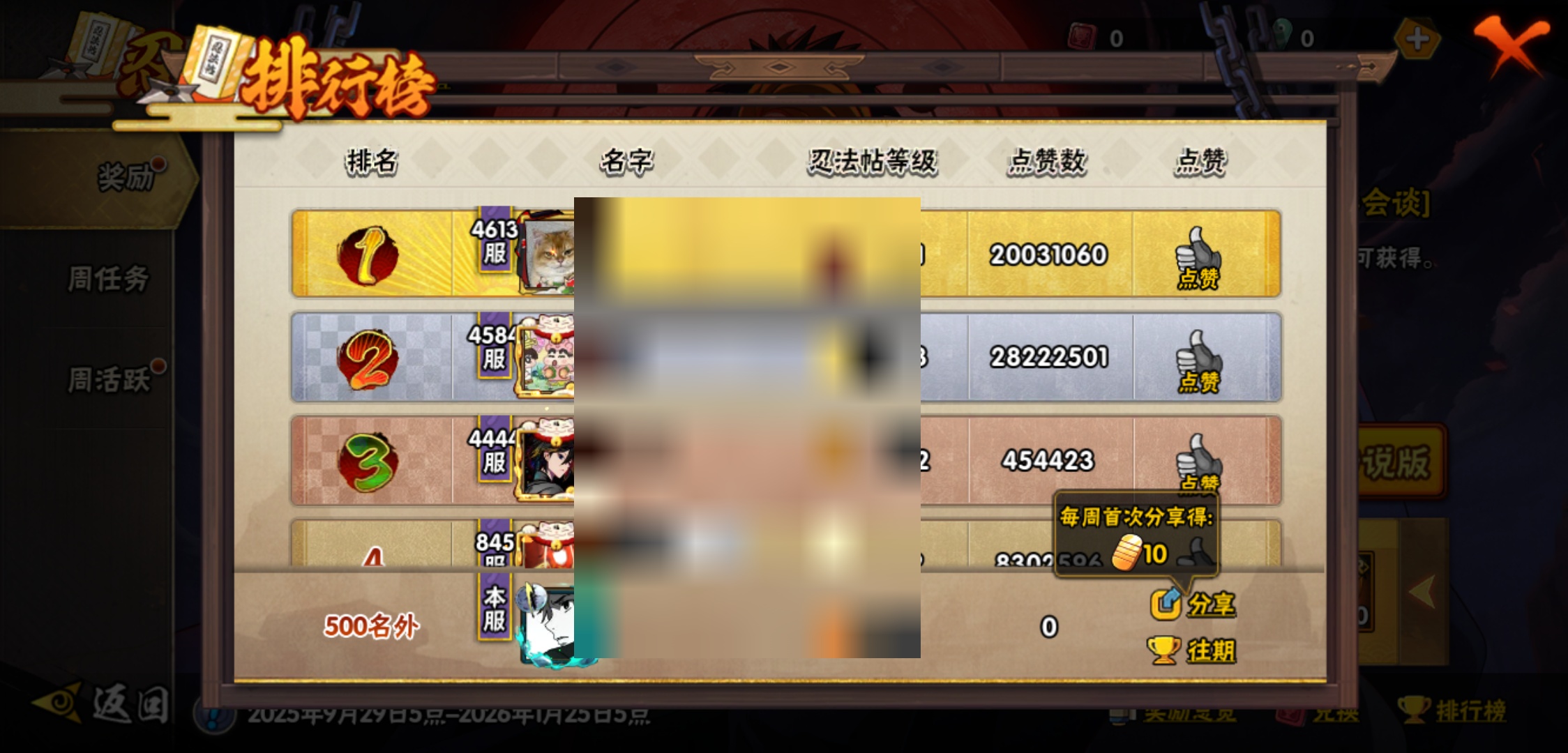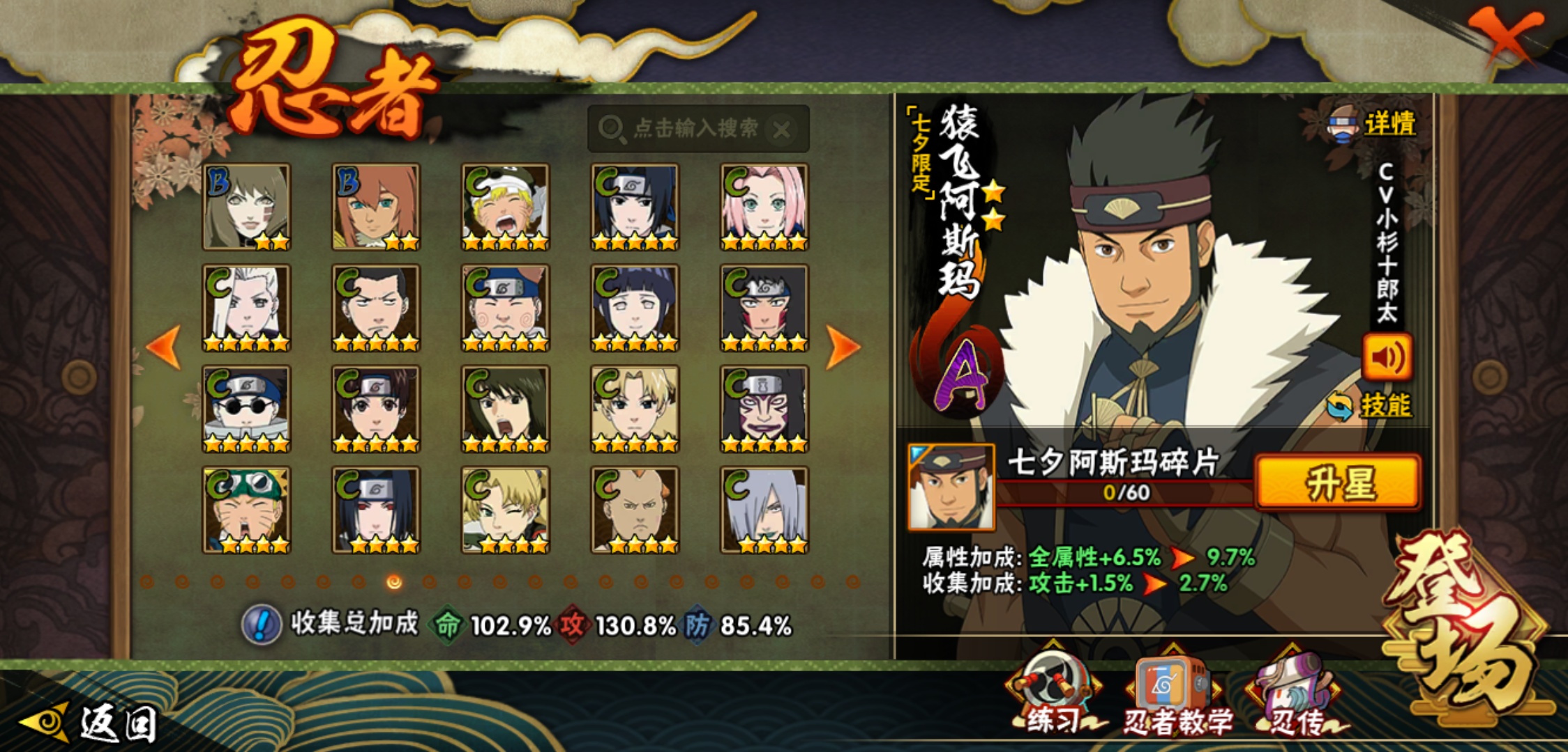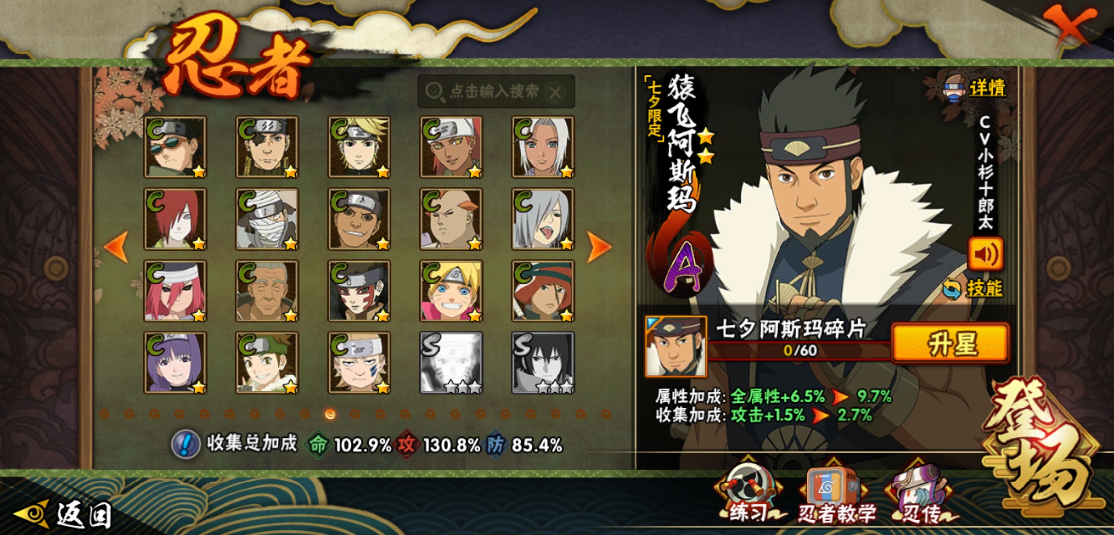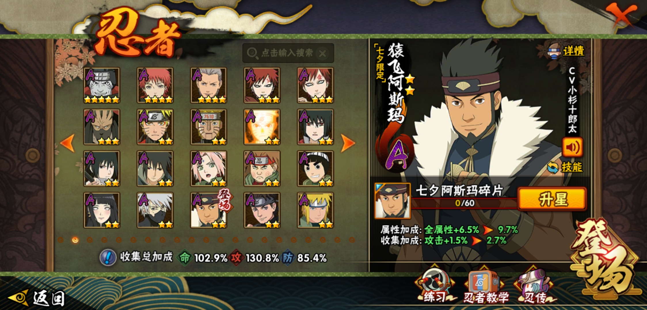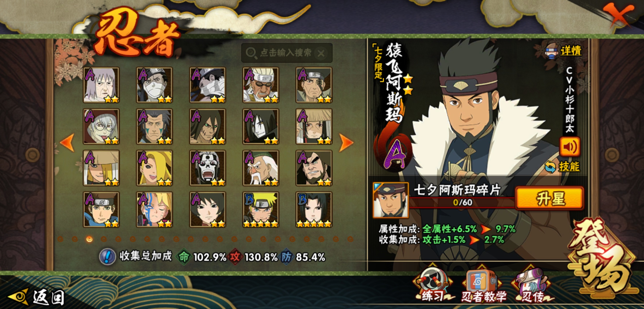 【火影忍者】【lyhy8965】战斗力:1175w;段位:影级2阶;本服排名:769;vip:v10级;s忍:18个;a忍:40个;通灵兽:17个,s忍:暴怒第六尾漩涡鸣人|须佐能乎旗木卡卡西|舞之豪杰自来也|传说中的三忍自来也|大蛇丸(普通)|百豪纲手|波风水门|秽土转生波风水门|九喇嘛连结波风水门|秽土转生猿飞日斩|秽土转生宇智波斑|须佐能乎宇智波鼬|白面具宇智波斑|忍界大战艾|秽土转生金角银角|天道佩恩|秽土转生长门|最终章大筒木舍人__a忍:迈特凯(普通) 5星|猿飞阿斯玛(普通) 5星|干柿鬼鲛(普通) 5星|蝎(普通) 4星|飞段(普通) 4星|疾风传我爱罗 3星|忍界大战我爱罗 3星|绯流琥蝎 3星|仙人模式漩涡鸣人|初始形态机械鸣人|九尾查克拉漩涡鸣人|万花筒写轮眼宇智波佐助|须佐能乎宇智波佐助|宇智波泉奈|百豪春野樱|忍界大战秋道丁次|忍界大战李洛克|最终章日向雏田|万花筒写轮眼旗木卡卡西|七夕限定猿飞阿斯玛|火影继承人猿飞日斩|青年波风水门|近松十人卫千代|桃地再不斩|秽土转生桃地再不斩|忍界大战奇拉比|忍界大战土台|半蛇斗篷药师兜|不动|秽土转生角都|晓大蛇丸|宇智波鼬(普通)|迪达拉(普通)|秽土转生迪达拉|死司凭血飞段|侠隐江湖大野木|羁绊神农|木叶上忍猿飞木叶丸|桃式显现漩涡博人|四代目土影黑土__通灵兽:忍犬(普通)|蓝蛇|蛤蟆吉|忍龟|镰鼬|猿魔|山椒鱼|蜃|蛤蟆仙人|鲛鲨|蛤蟆健|乌鸦(普通)|蛞蝓(普通)|蛤蟆龙|砂之守鹤|蛤蟆广|梦貘