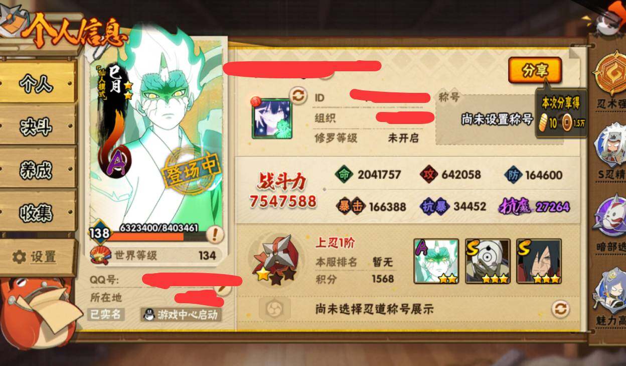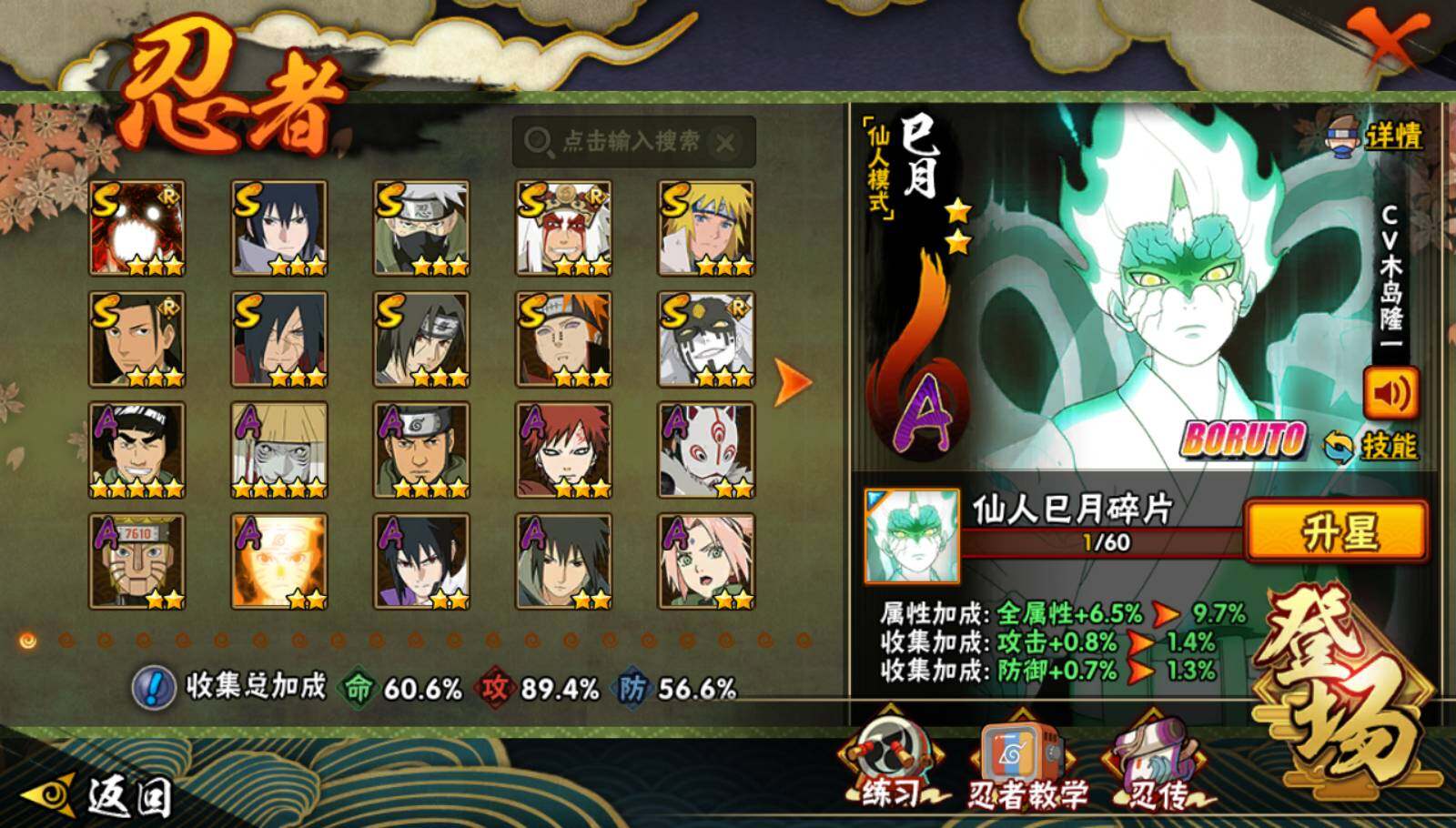 【hyyh687】v11/战力754w/s忍10/a忍37/2星波风水门「新春限定」/2星日向宁次「忍界大战」/2星大野木「侠隐江湖」/2星飞段「死司凭血」/2星宇智波鼬/3星宇智波佐助「永恒万花筒」/3星旗木卡卡西「须佐能乎」/2星长门「青年」/2星宇智波佐助「侠隐江湖」/2星蝎/3星佩恩「天道」/3星波风水门/2星秋道丁次「忍界大战」/2星猿飞阿斯玛「秽土转生」/5星迈特凯/2星漩涡博人「桃式显现」/3星千手柱间「木叶创立」/2星迪达拉「新春限定」/3星我爱罗「疾风传」/2星李洛克「忍界大战」/2星土台「忍界大战」/2星神秘面具男「忍者之路」/3星大筒木桃式/2星长十郎「六代目水影」/2星波风水门「青年」/2星蝎「绯流琥」/4星猿飞阿斯玛/3星自来也「舞之豪杰」/3星漩涡鸣人「暴怒·第六尾」/2星桃地再不斩「秽土转生」/2星春野樱「百豪」/2星黑土「博人传」/2星小南「新春限定」/2星药师兜「半蛇斗篷」/2星飞段/2星神农「羁绊」/熊猫/2星宇智波泉奈/2星迪达拉/2星旗木卡卡西「幻之真容」/2星巳月「仙人模式」/3星宇智波斑「秽土转生·解」/2星漩涡鸣人「九尾查克拉」/2星不缘/5星干柿鬼鲛/2星机械鸣人「初始形态」/2星千代「近松十人卫」/3星宇智波鼬「须佐能乎」