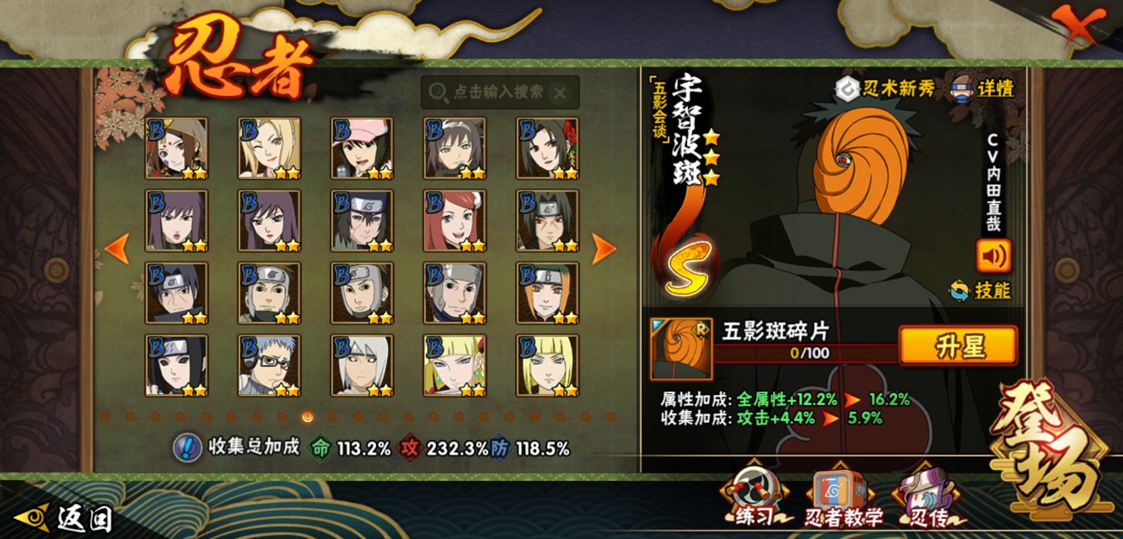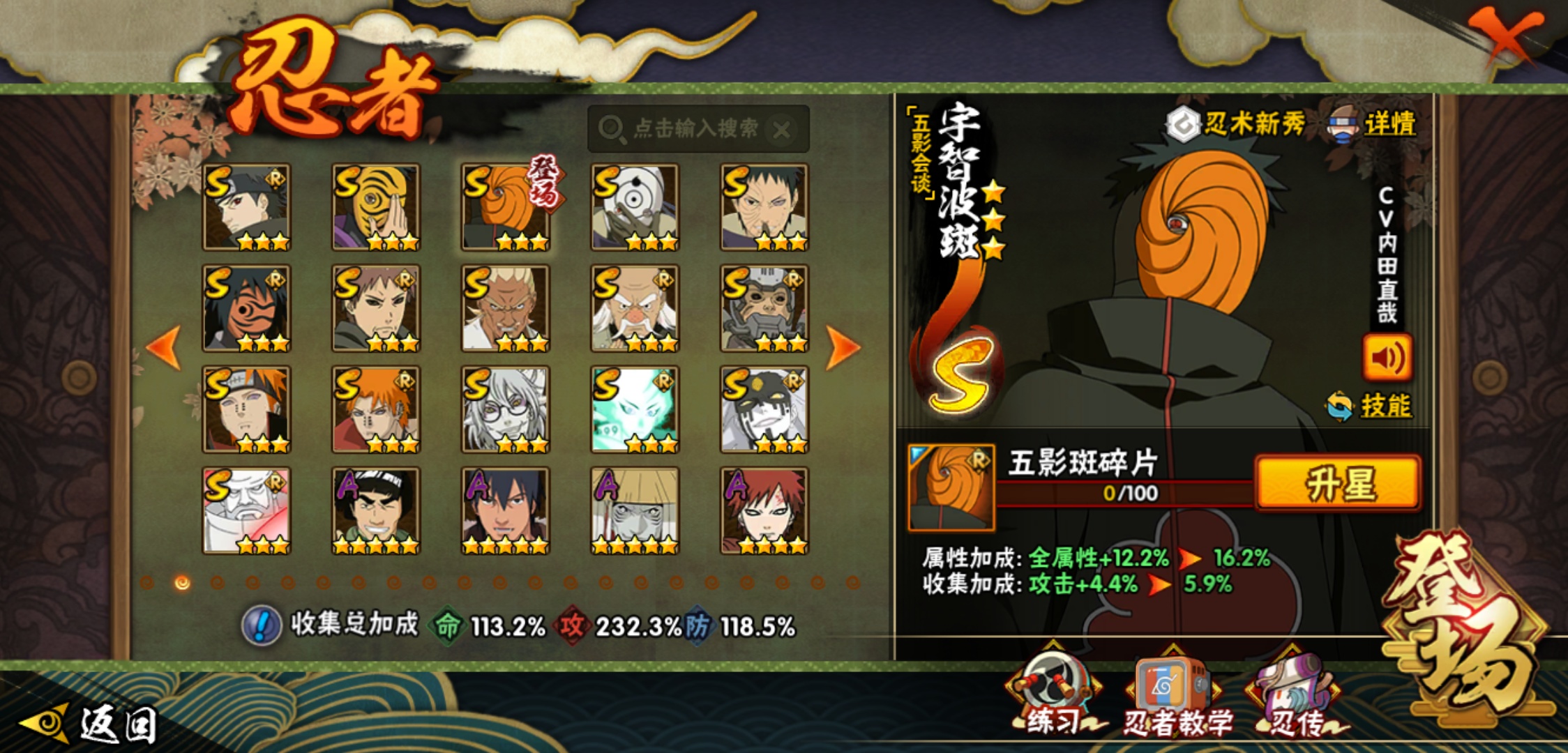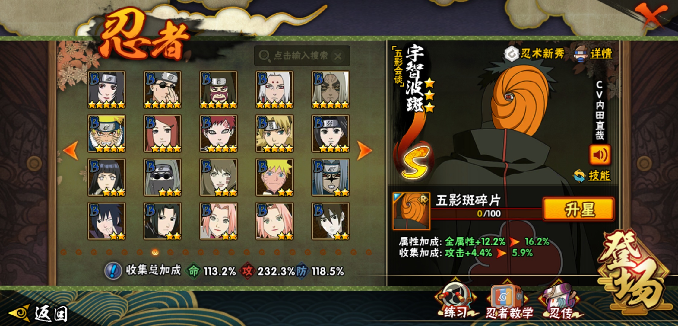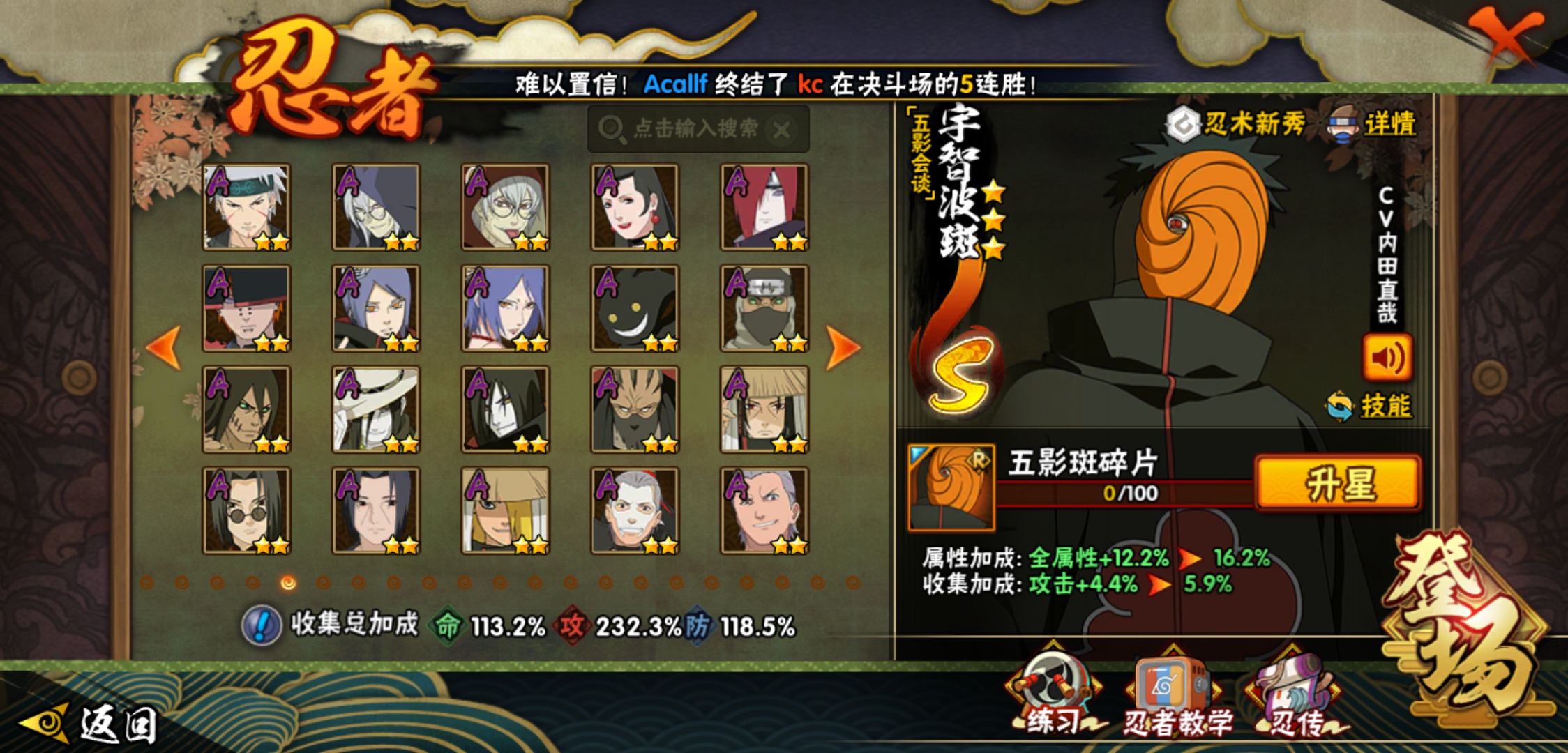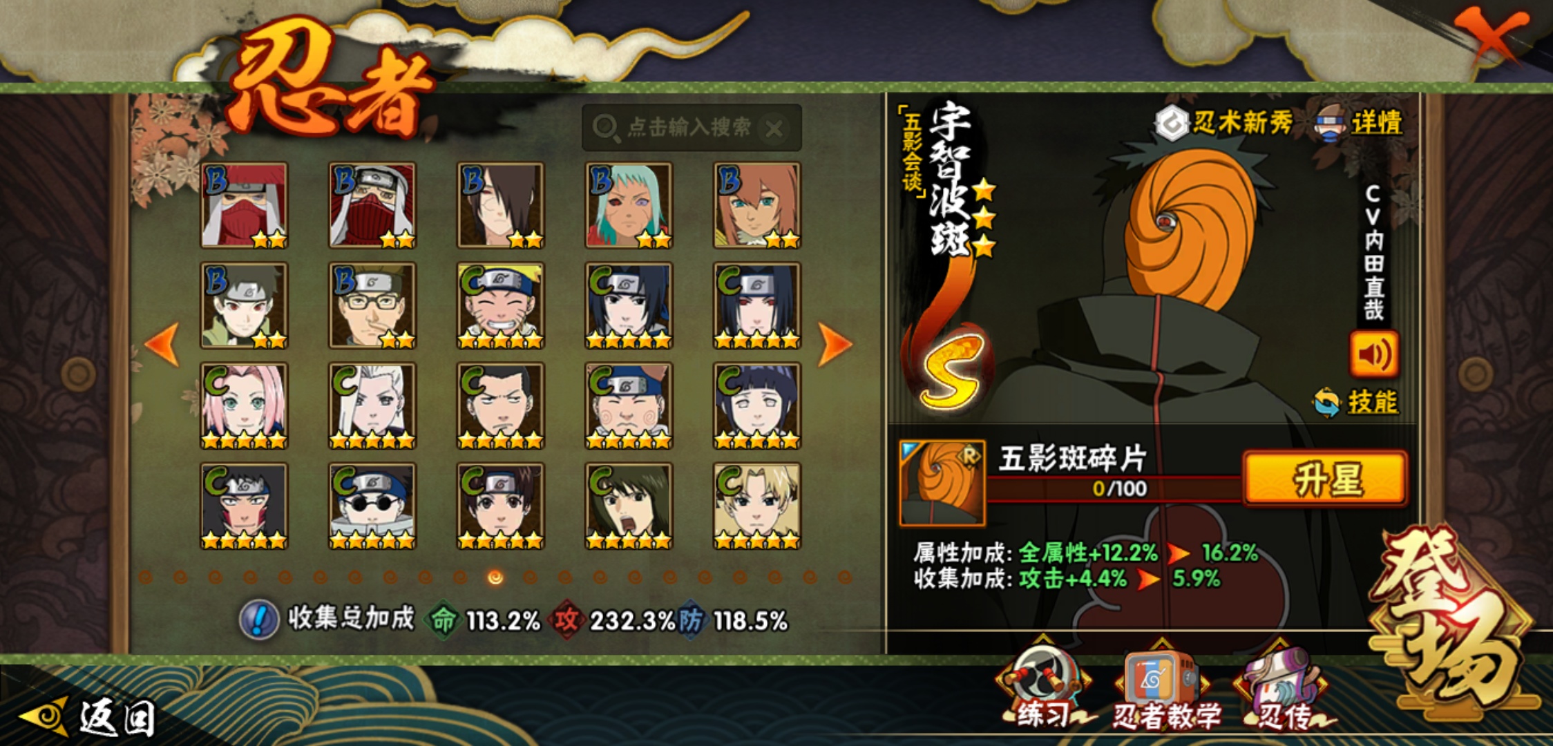 【火影忍者】【lyhy8975】战斗力:1378w;段位:上忍2阶;本服排名:238;vip:v14级;s忍:36个;a忍:74个;通灵兽:22个,s忍:暴怒第六尾漩涡鸣人|九喇嘛连结漩涡鸣人|永恒万花筒宇智波佐助|忍界大战春野樱|须佐能乎旗木卡卡西|自来也(普通)|舞之豪杰自来也|传说中的三忍自来也|大蛇丸(普通)|纲手(普通)|死门迈特凯|波风水门|九喇嘛连结波风水门|木叶创立千手柱间|秽土转生千手柱间|秽土转生宇智波斑|木叶创立宇智波斑|秽土转生解宇智波斑|须佐能乎宇智波鼬|秽土转生宇智波鼬|须佐能乎宇智波止水|神秘面具男(普通)|五影会谈宇智波斑|白面具宇智波斑|忍界大战宇智波带土|红夜之刃神秘面具男|四代目风影罗砂|忍界大战艾|忍界大战大野木|秽土转生半藏|天道佩恩|超佩恩天道|仙人模式药师兜|最终章大筒木舍人|大筒木桃式|博人传大筒木金式__a忍:迈特凯(普通) 5星|猿飞阿斯玛(普通) 5星|干柿鬼鲛(普通) 5星|疾风传我爱罗 4星|飞段(普通) 4星|蝎(普通) 3星|死司凭血飞段 3星|初始形态机械鸣人|仙人模式漩涡鸣人|忍者之路神秘面具男|九尾查克拉漩涡鸣人|万花筒写轮眼宇智波佐助|须佐能乎宇智波佐助|疾风传咒印宇智波佐助|宇智波泉奈|百豪春野樱|忍界大战秋道丁次|忍界大战日向宁次|忍界大战李洛克|最终章日向雏田|旗木卡卡西(普通)|幻之真容旗木卡卡西|元气夏日旗木卡卡西|忍界大战迈特凯|秽土转生猿飞阿斯玛|七夕限定猿飞阿斯玛|宇智波止水(普通)|新春限定宇智波止水|三忍之师猿飞日斩|新春限定波风水门|青年波风水门|近松十人卫千代|夏日泳装照美冥|五代目水影照美冥|侠隐江湖照美冥|秽土转生桃地再不斩|桃地再不斩|漂泊武士桃地再不斩|忍界大战奇拉比|奇拉比(普通)|青年艾|忍界大战土台|侠隐江湖纲手|妖怪奇谭纲手|漂泊武士千手扉间|侠隐江湖药师兜|半蛇斗篷药师兜|不缘|青年长门|漂泊浪客佩恩六道|小南(普通)|漂泊浪客小南|黑绝|地怨虞角都|秽土转生角都|新春限定大蛇丸|晓大蛇丸|绯流琥蝎|宇智波鼬(普通)|新春限定宇智波鼬|夏日限定宇智波鼬|迪达拉(普通)|恶灵之影飞段|晓创生飞段|暴怒宇智波带土|漂泊浪客宇智波带土|侠隐江湖大野木|火之意志继承者卑留呼|羁绊神农|桃式显现漩涡博人|六代目水影长十郎|五代目雷影达鲁伊|四代目土影黑土|夏日限定黑土__通灵兽:忍犬(普通)|蓝蛇|砂之守鹤|蛤蟆吉|忍龟|镰鼬|猿魔|山椒鱼|蛞蝓(普通)|蜃|蛤蟆仙人|鲛鲨|蛤蟆健|熊猫|乌鸦(普通)|蛤蟆龙|怒鬼无臂|蛤蟆广|蛞蝓侠隐江湖|梦貘|万蛇|鹰