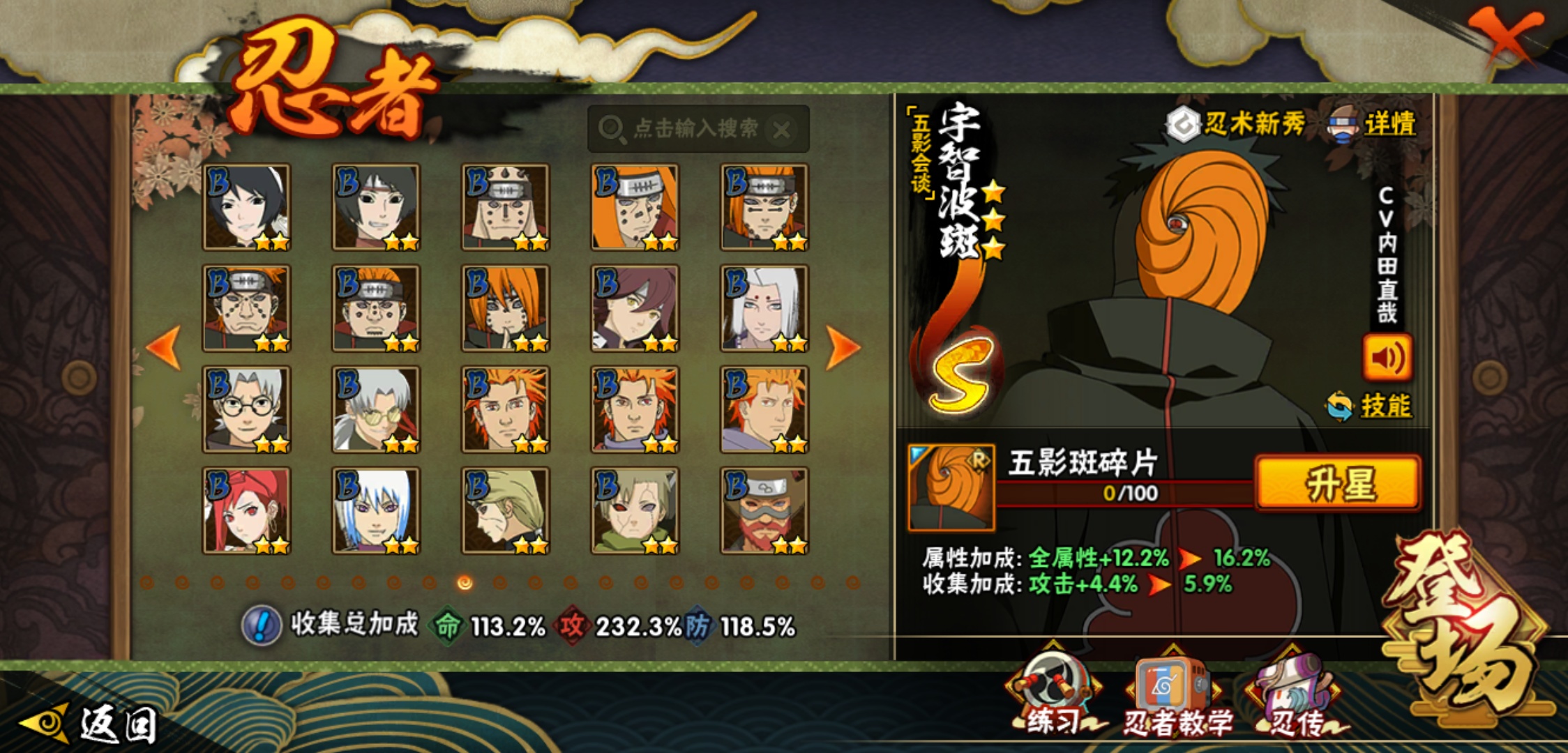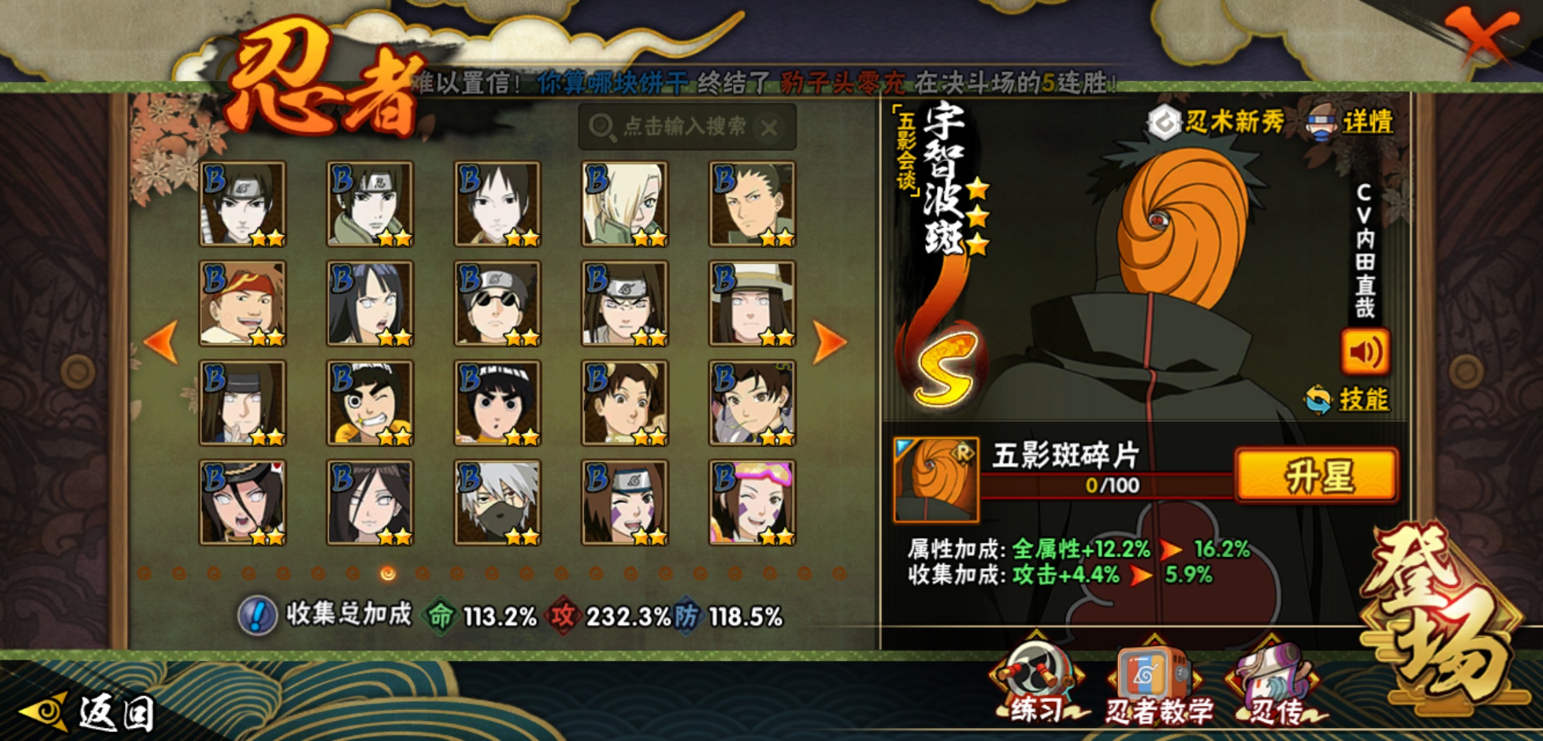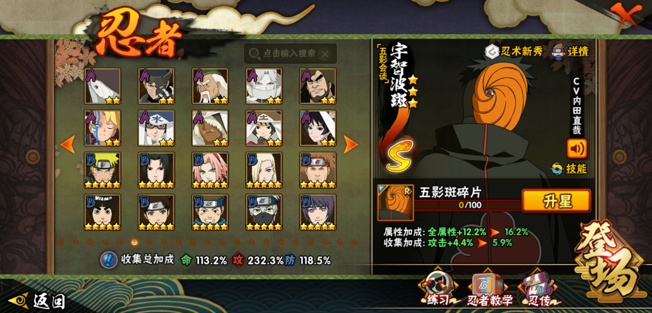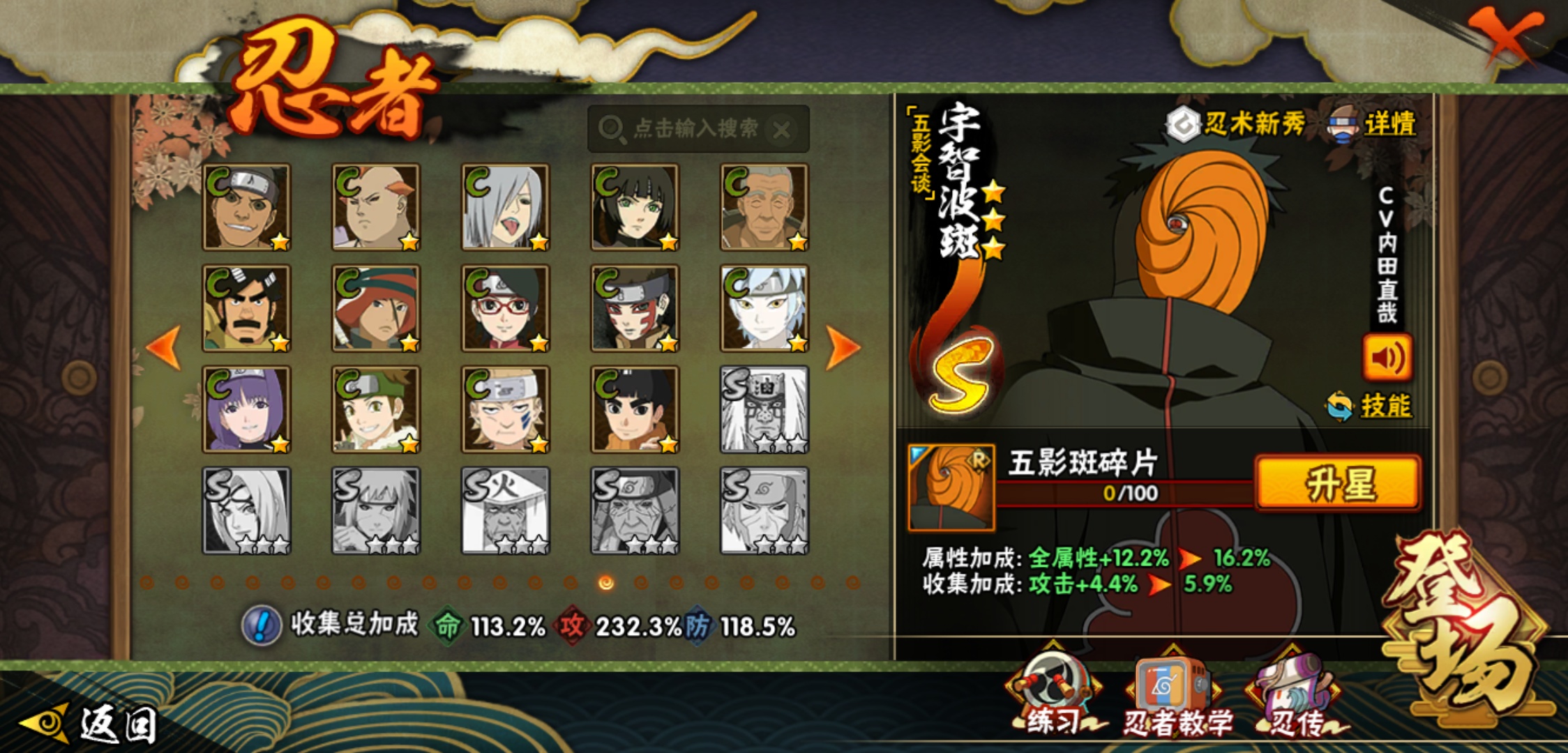【火影忍者】【lyhy8975】战斗力:1378w;段位:上忍2阶;本服排名:238;vip:v14级;s忍:36个;a忍:74个;通灵兽:22个,s忍:暴怒第六尾漩涡鸣人|九喇嘛连结漩涡鸣人|永恒万花筒宇智波佐助|忍界大战春野樱|须佐能乎旗木卡卡西|自来也(普通)|舞之豪杰自来也|传说中的三忍自来也|大蛇丸(普通)|纲手(普通)|死门迈特凯|波风水门|九喇嘛连结波风水门|木叶创立千手柱间|秽土转生千手柱间|秽土转生宇智波斑|木叶创立宇智波斑|秽土转生解宇智波斑|须佐能乎宇智波鼬|秽土转生宇智波鼬|须佐能乎宇智波止水|神秘面具男(普通)|五影会谈宇智波斑|白面具宇智波斑|忍界大战宇智波带土|红夜之刃神秘面具男|四代目风影罗砂|忍界大战艾|忍界大战大野木|秽土转生半藏|天道佩恩|超佩恩天道|仙人模式药师兜|最终章大筒木舍人|大筒木桃式|博人传大筒木金式__a忍:迈特凯(普通) 5星|猿飞阿斯玛(普通) 5星|干柿鬼鲛(普通) 5星|疾风传我爱罗 4星|飞段(普通) 4星|蝎(普通) 3星|死司凭血飞段 3星|初始形态机械鸣人|仙人模式漩涡鸣人|忍者之路神秘面具男|九尾查克拉漩涡鸣人|万花筒写轮眼宇智波佐助|须佐能乎宇智波佐助|疾风传咒印宇智波佐助|宇智波泉奈|百豪春野樱|忍界大战秋道丁次|忍界大战日向宁次|忍界大战李洛克|最终章日向雏田|旗木卡卡西(普通)|幻之真容旗木卡卡西|元气夏日旗木卡卡西|忍界大战迈特凯|秽土转生猿飞阿斯玛|七夕限定猿飞阿斯玛|宇智波止水(普通)|新春限定宇智波止水|三忍之师猿飞日斩|新春限定波风水门|青年波风水门|近松十人卫千代|夏日泳装照美冥|五代目水影照美冥|侠隐江湖照美冥|秽土转生桃地再不斩|桃地再不斩|漂泊武士桃地再不斩|忍界大战奇拉比|奇拉比(普通)|青年艾|忍界大战土台|侠隐江湖纲手|妖怪奇谭纲手|漂泊武士千手扉间|侠隐江湖药师兜|半蛇斗篷药师兜|不缘|青年长门|漂泊浪客佩恩六道|小南(普通)|漂泊浪客小南|黑绝|地怨虞角都|秽土转生角都|新春限定大蛇丸|晓大蛇丸|绯流琥蝎|宇智波鼬(普通)|新春限定宇智波鼬|夏日限定宇智波鼬|迪达拉(普通)|恶灵之影飞段|晓创生飞段|暴怒宇智波带土|漂泊浪客宇智波带土|侠隐江湖大野木|火之意志继承者卑留呼|羁绊神农|桃式显现漩涡博人|六代目水影长十郎|五代目雷影达鲁伊|四代目土影黑土|夏日限定黑土__通灵兽:忍犬(普通)|蓝蛇|砂之守鹤|蛤蟆吉|忍龟|镰鼬|猿魔|山椒鱼|蛞蝓(普通)|蜃|蛤蟆仙人|鲛鲨|蛤蟆健|熊猫|乌鸦(普通)|蛤蟆龙|怒鬼无臂|蛤蟆广|蛞蝓侠隐江湖|梦貘|万蛇|鹰