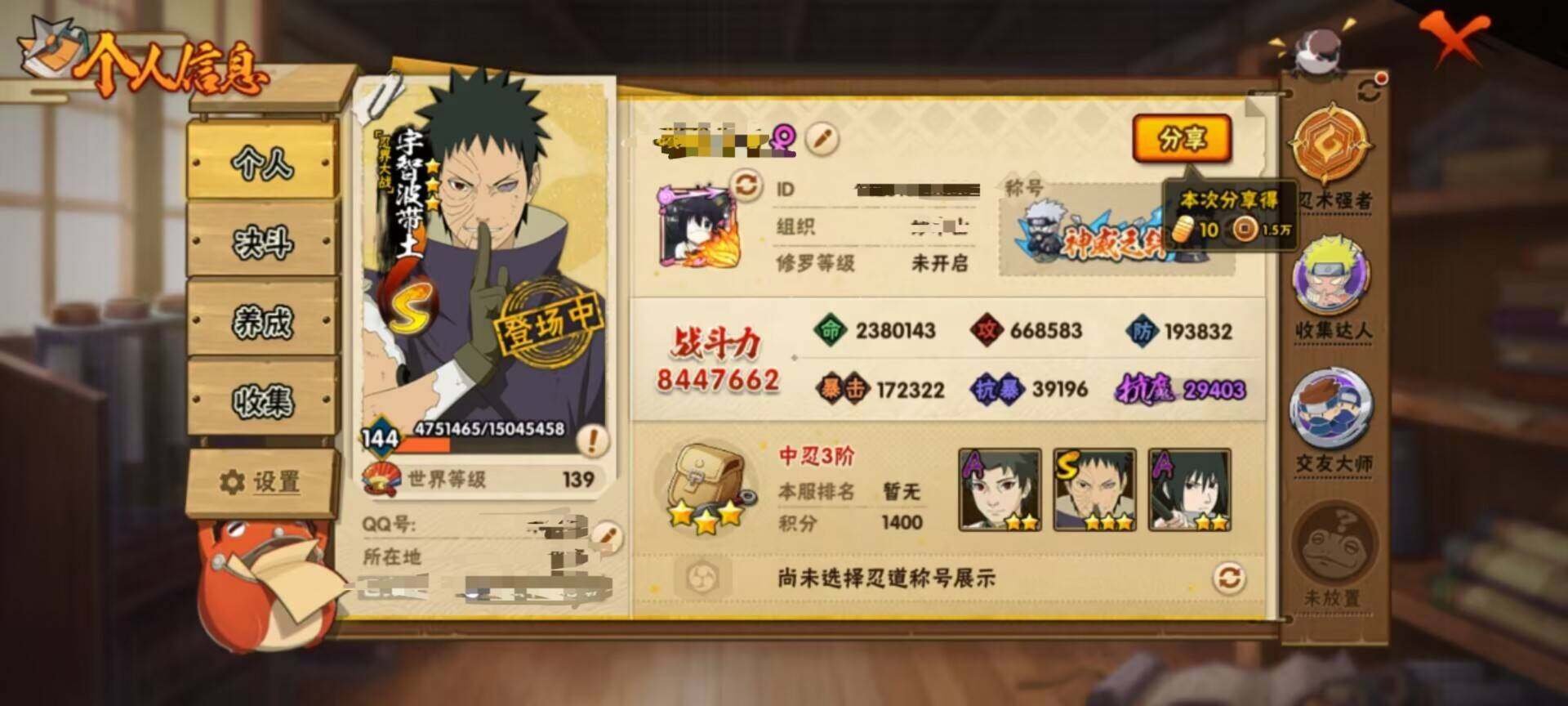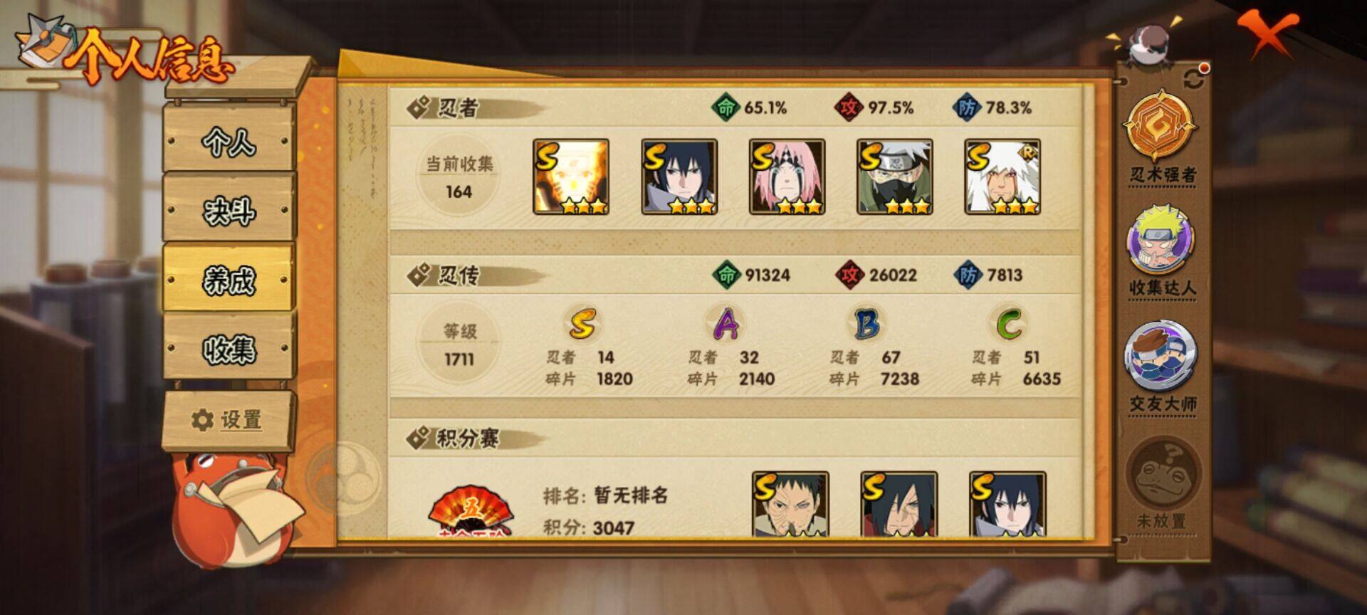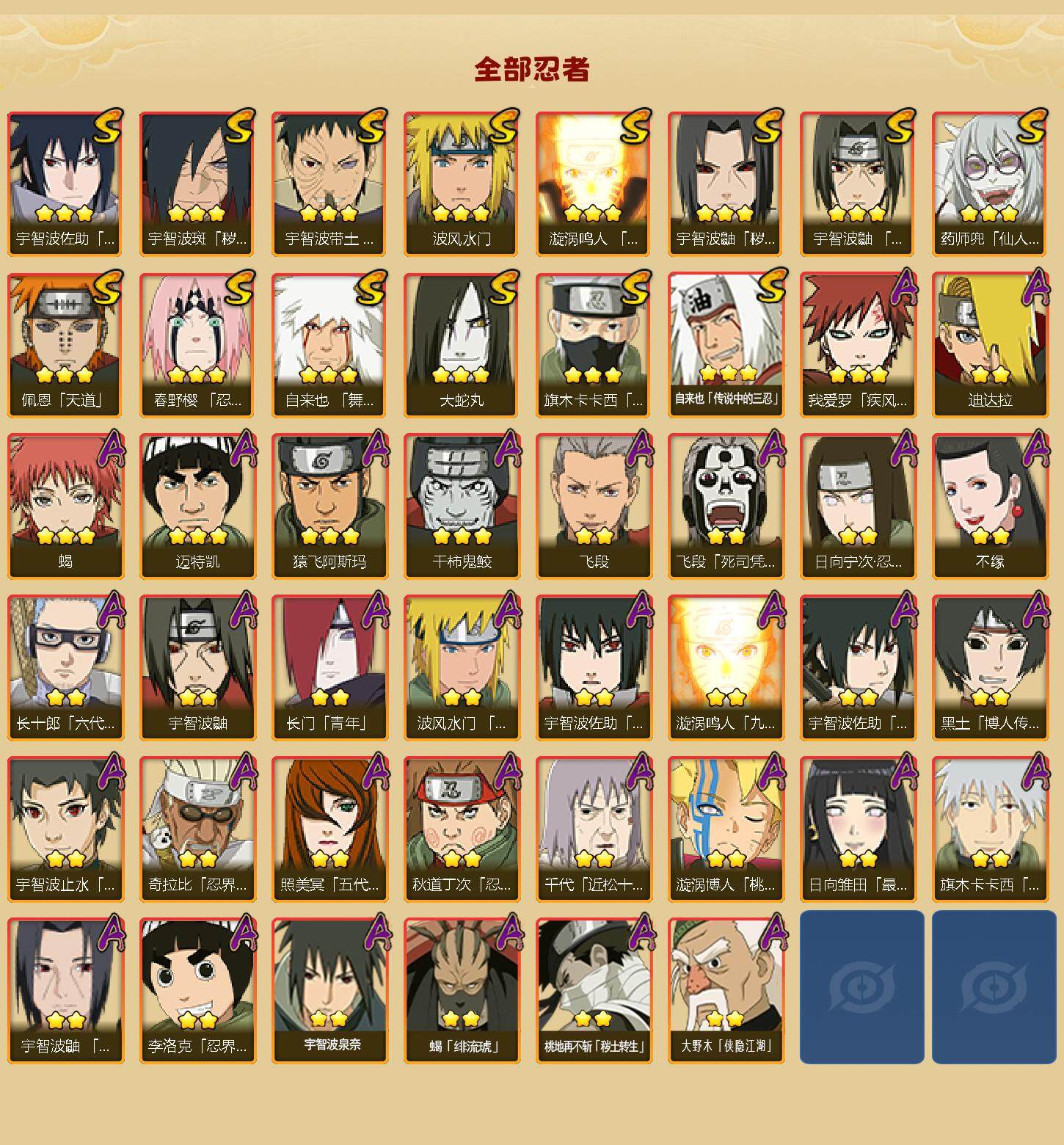 【hyyt18】v7/战力840w/s忍14/a忍32/通灵兽16/日向宁次「忍界大战」/2星大野木「侠隐江湖」/死司飞段/宇智波鼬/永恒万花筒佐助/秽土鼬/须佐能乎旗木卡卡西/2星长门「青年」/忍战带土/佩恩/照美冥/波风水门/3星蝎/九喇嘛鸣人/忍战丁次/博人桃式显现/忍战奇拉比/3星干柿鬼鲛/3星我爱罗「疾风传」/忍战小李/仙人兜/长十郎/青年水门/蝎「绯流琥」/豪杰自来也/2星桃地再不