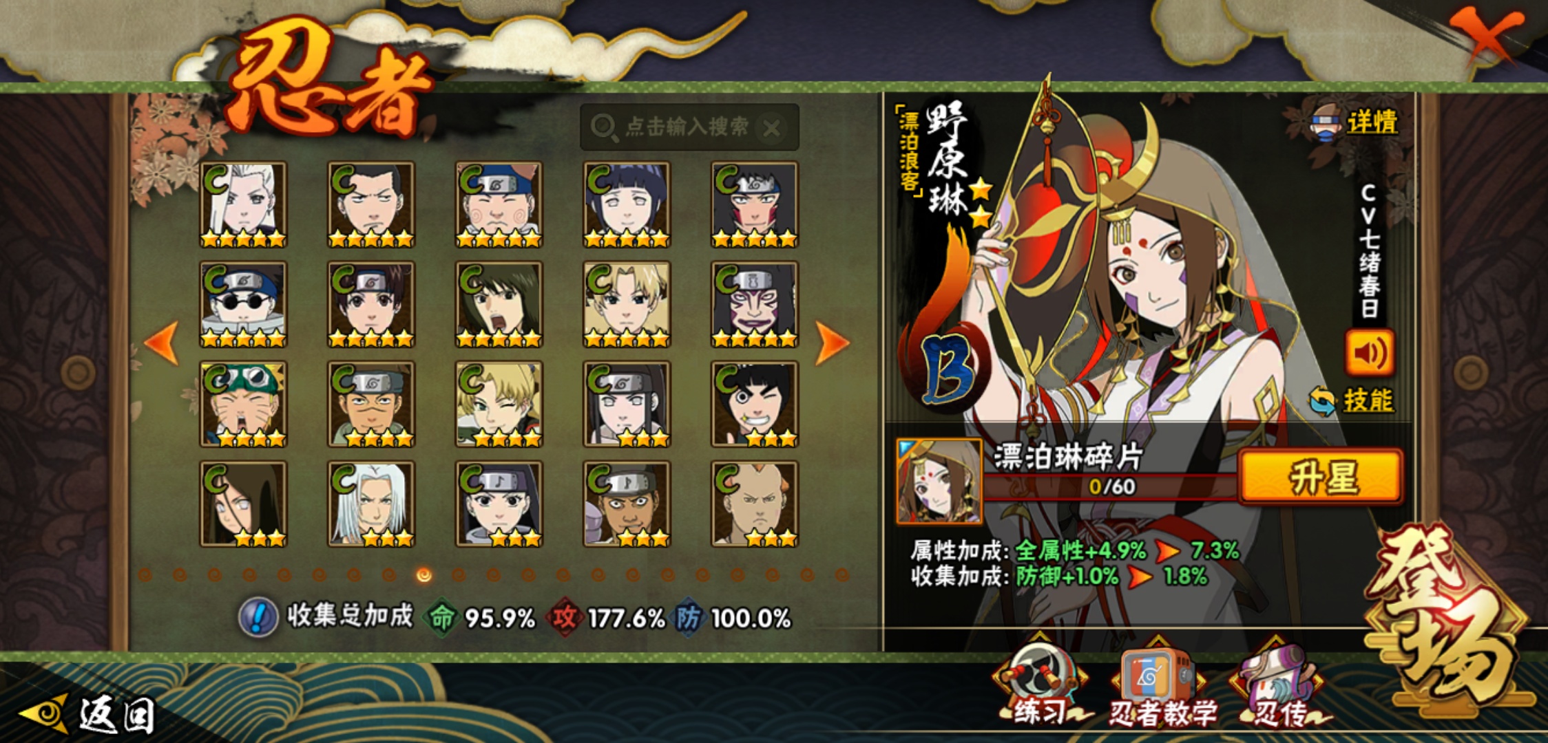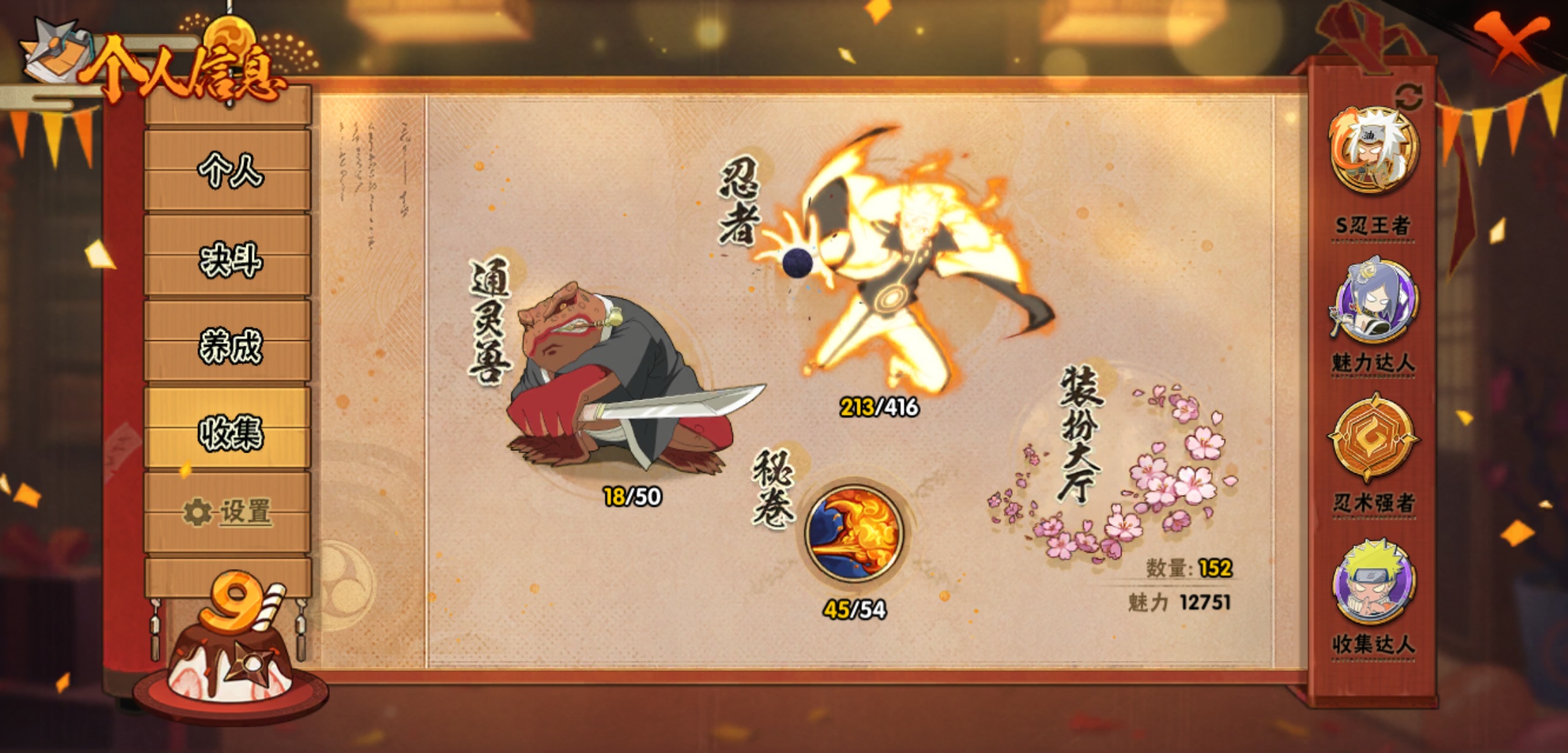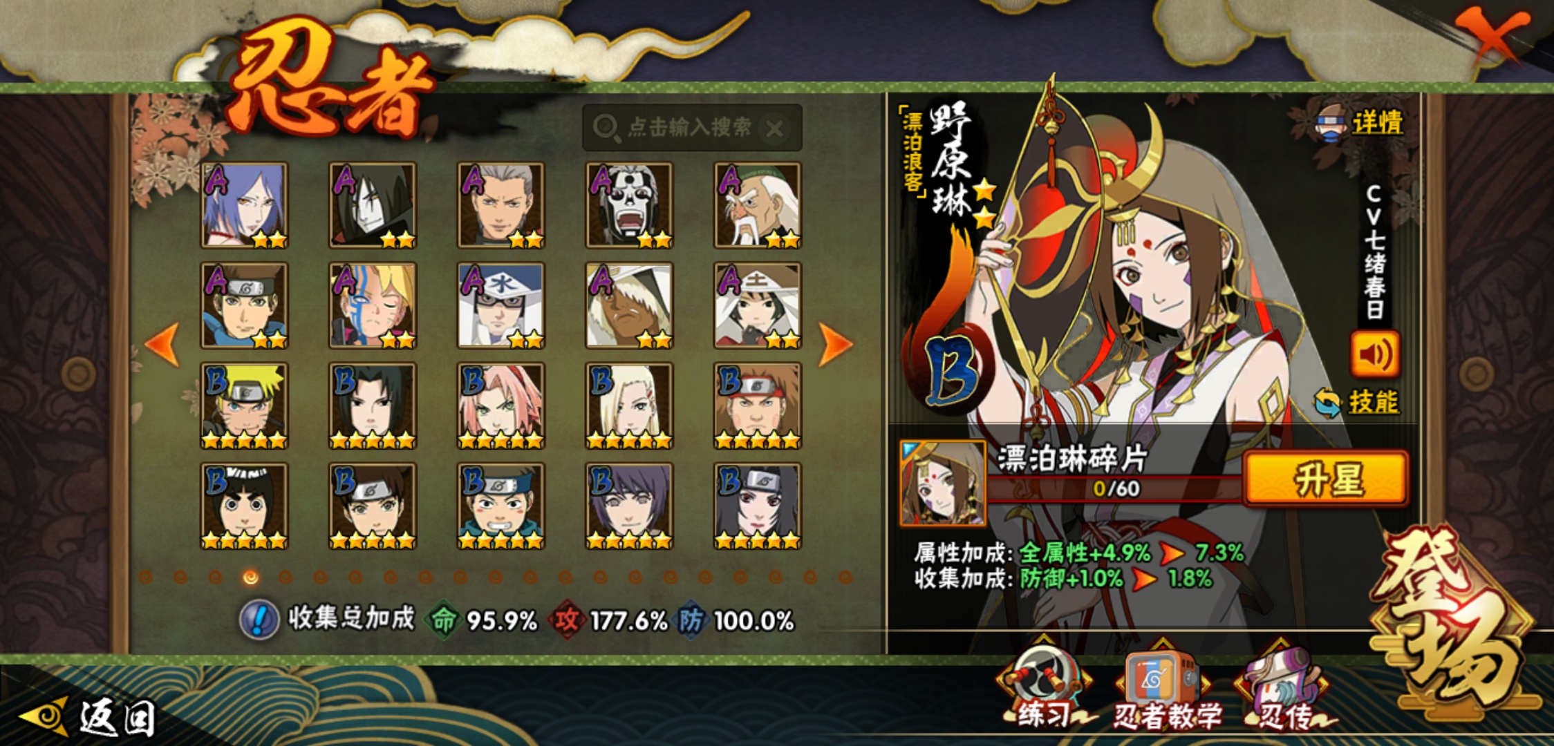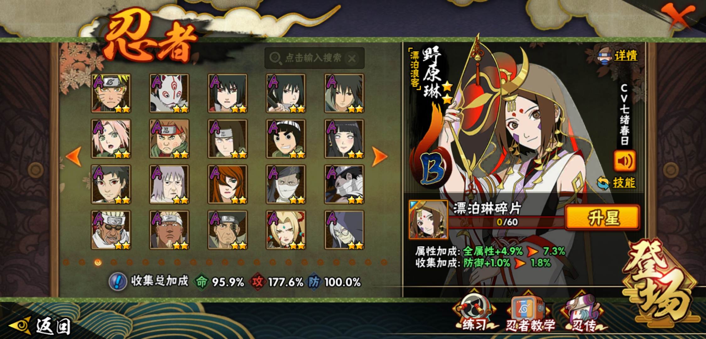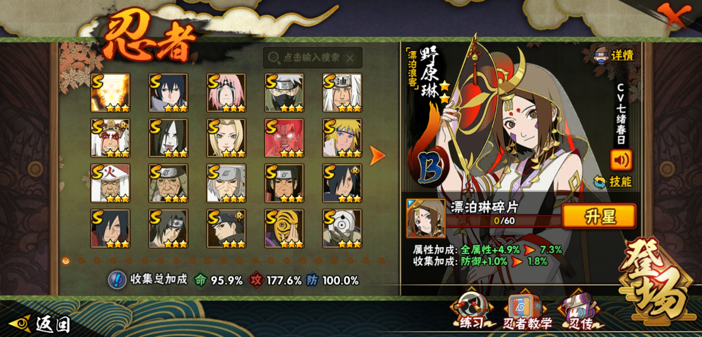 【火影忍者】【lyhy8985】战斗力:1200w;段位:上忍2阶;本服排名:252;vip:v11级;s忍:30个;a忍:40个;通灵兽:18个,s忍:九喇嘛连结漩涡鸣人|永恒万花筒宇智波佐助|忍界大战春野樱|须佐能乎旗木卡卡西|自来也(普通)|舞之豪杰自来也|大蛇丸(普通)|纲手(普通)|死门迈特凯|波风水门|猿飞日斩(普通)|秽土转生猿飞日斩|秽土转生千手扉间|秽土转生千手柱间|木叶创立宇智波斑|秽土转生解宇智波斑|须佐能乎宇智波鼬|须佐能乎宇智波止水|神秘面具男(普通)|白面具宇智波斑|五影会谈宇智波斑|忍界大战宇智波带土|红夜之刃神秘面具男|忍界大战艾|忍界大战大野木|天道佩恩|超佩恩天道|仙人模式药师兜|大筒木桃式|博人传大筒木金式__a忍:迈特凯(普通) 5星|猿飞阿斯玛(普通) 5星|蝎(普通) 5星|干柿鬼鲛(普通) 5星|疾风传我爱罗 4星|青年波风水门 3星|青年长门 3星|宇智波鼬(普通) 3星|迪达拉(普通) 3星|初始形态机械鸣人|仙人模式漩涡鸣人|忍者之路神秘面具男|万花筒写轮眼宇智波佐助|须佐能乎宇智波佐助|宇智波泉奈|百豪春野樱|忍界大战秋道丁次|忍界大战日向宁次|忍界大战李洛克|最终章日向雏田|新春限定宇智波止水|近松十人卫千代|五代目水影照美冥|漂泊武士桃地再不斩|秽土转生桃地再不斩|奇拉比(普通)|青年艾|忍界大战土台|妖怪奇谭纲手|侠隐江湖药师兜|漂泊浪客小南|晓大蛇丸|飞段(普通)|死司凭血飞段|侠隐江湖大野木|木叶上忍猿飞木叶丸|桃式显现漩涡博人|六代目水影长十郎|五代目雷影达鲁伊|四代目土影黑土__通灵兽:忍犬(普通)|蓝蛇|砂之守鹤|蛤蟆吉|忍龟|镰鼬|猿魔|山椒鱼|蜃|蛤蟆仙人|鲛鲨|蛤蟆健|蛞蝓(普通)|乌鸦(普通)|蛤蟆龙|蛤蟆广|梦貘|鹰