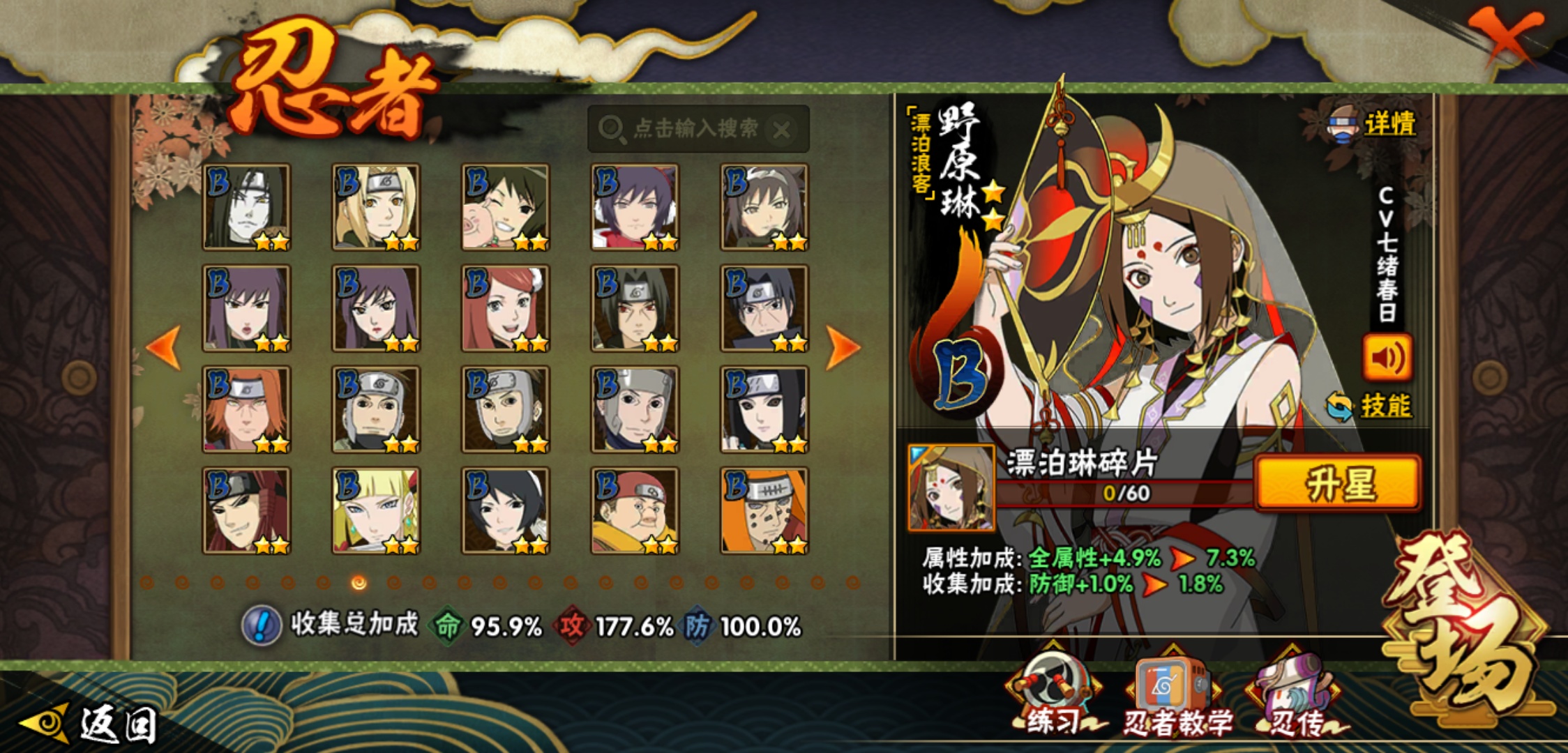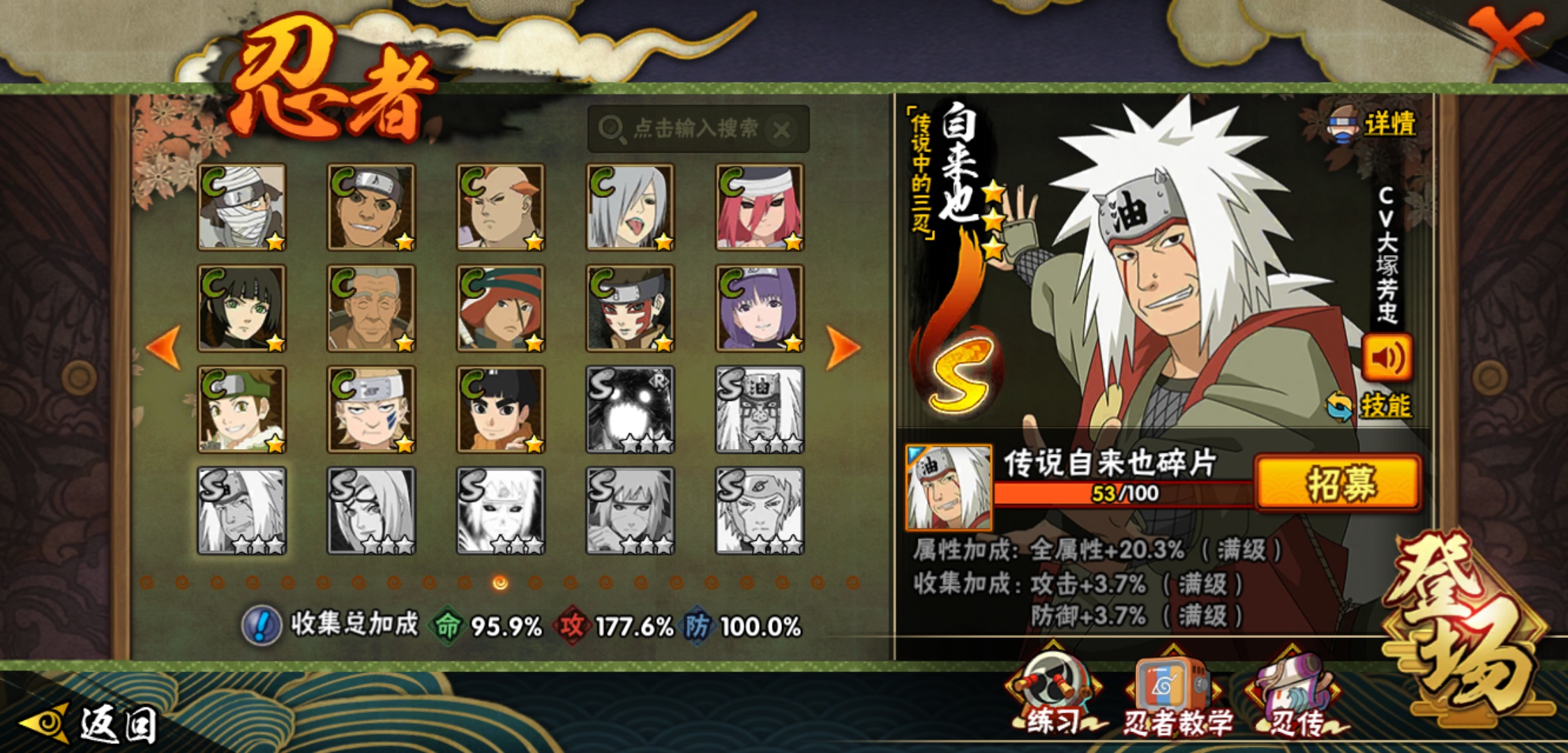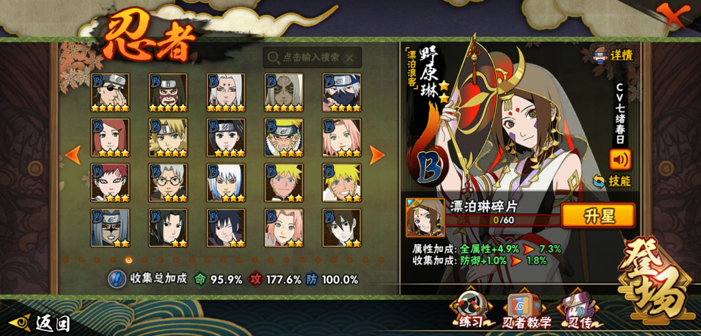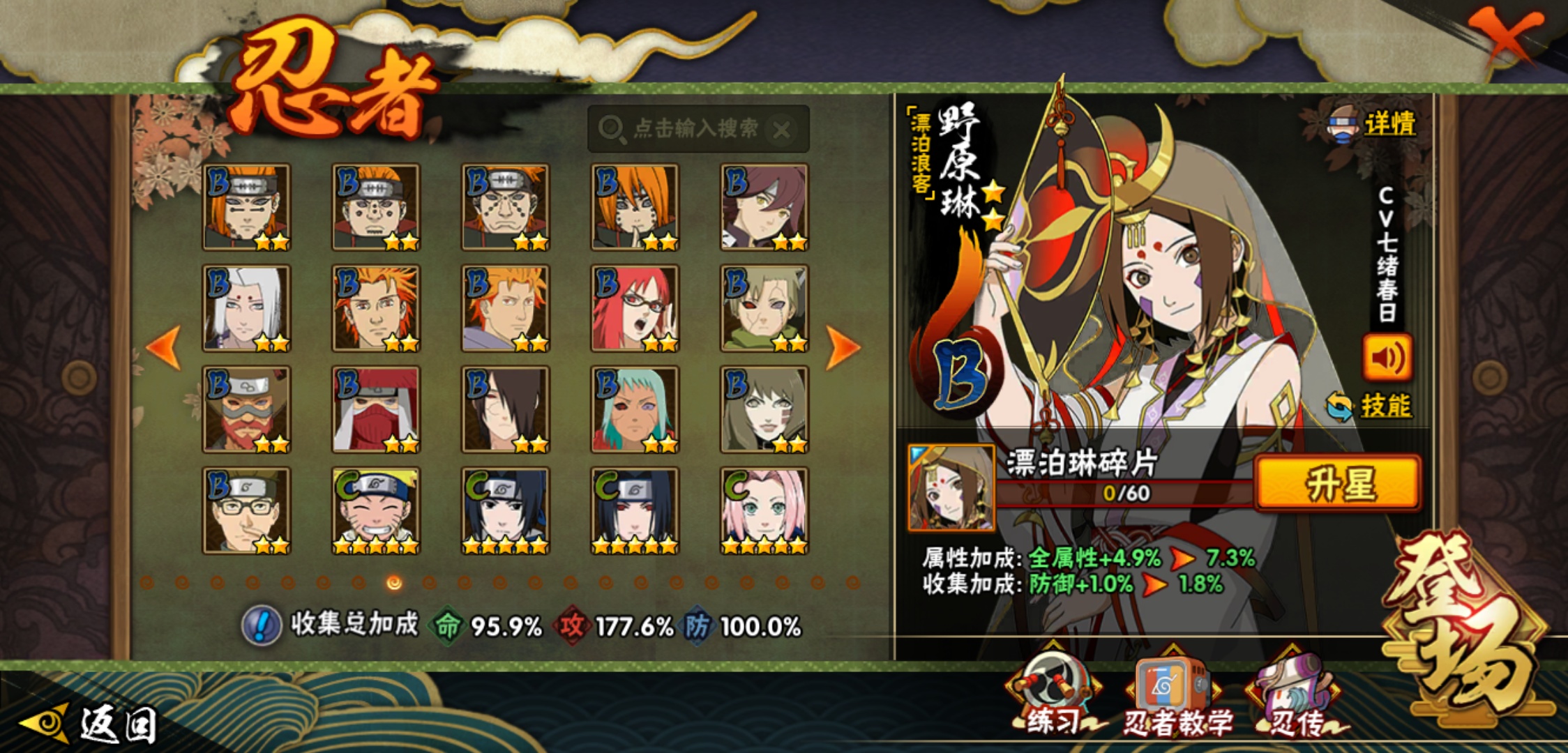 【火影忍者】【lyhy8985】战斗力:1200w;段位:上忍2阶;本服排名:252;vip:v11级;s忍:30个;a忍:40个;通灵兽:18个,s忍:九喇嘛连结漩涡鸣人|永恒万花筒宇智波佐助|忍界大战春野樱|须佐能乎旗木卡卡西|自来也(普通)|舞之豪杰自来也|大蛇丸(普通)|纲手(普通)|死门迈特凯|波风水门|猿飞日斩(普通)|秽土转生猿飞日斩|秽土转生千手扉间|秽土转生千手柱间|木叶创立宇智波斑|秽土转生解宇智波斑|须佐能乎宇智波鼬|须佐能乎宇智波止水|神秘面具男(普通)|白面具宇智波斑|五影会谈宇智波斑|忍界大战宇智波带土|红夜之刃神秘面具男|忍界大战艾|忍界大战大野木|天道佩恩|超佩恩天道|仙人模式药师兜|大筒木桃式|博人传大筒木金式__a忍:迈特凯(普通) 5星|猿飞阿斯玛(普通) 5星|蝎(普通) 5星|干柿鬼鲛(普通) 5星|疾风传我爱罗 4星|青年波风水门 3星|青年长门 3星|宇智波鼬(普通) 3星|迪达拉(普通) 3星|初始形态机械鸣人|仙人模式漩涡鸣人|忍者之路神秘面具男|万花筒写轮眼宇智波佐助|须佐能乎宇智波佐助|宇智波泉奈|百豪春野樱|忍界大战秋道丁次|忍界大战日向宁次|忍界大战李洛克|最终章日向雏田|新春限定宇智波止水|近松十人卫千代|五代目水影照美冥|漂泊武士桃地再不斩|秽土转生桃地再不斩|奇拉比(普通)|青年艾|忍界大战土台|妖怪奇谭纲手|侠隐江湖药师兜|漂泊浪客小南|晓大蛇丸|飞段(普通)|死司凭血飞段|侠隐江湖大野木|木叶上忍猿飞木叶丸|桃式显现漩涡博人|六代目水影长十郎|五代目雷影达鲁伊|四代目土影黑土__通灵兽:忍犬(普通)|蓝蛇|砂之守鹤|蛤蟆吉|忍龟|镰鼬|猿魔|山椒鱼|蜃|蛤蟆仙人|鲛鲨|蛤蟆健|蛞蝓(普通)|乌鸦(普通)|蛤蟆龙|蛤蟆广|梦貘|鹰