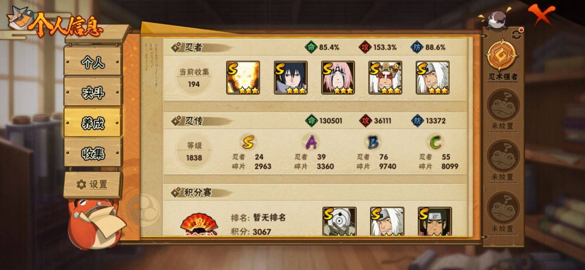 yzj12177 可二次 安卓qq v11 1000万战力 1500区 24s 39a 永久s忍者名称:九喇嘛鸣人 永恒佐助 大筒木舍人 传说自来也 忍战樱 舞之豪杰自来也 大蛇丸 纲手 百豪纲手 死门凯 水门 秽土扉间 柱间 秽土柱间 创立柱间 秽土斑 秽土鼬 秽土·解斑 白面具 红夜面具男 无 天道佩恩 秽土长门 永久a忍者名称:妖怪纲手 漂泊带土 新春水门 仙人鸣人 泳装小南 侠隐纲手