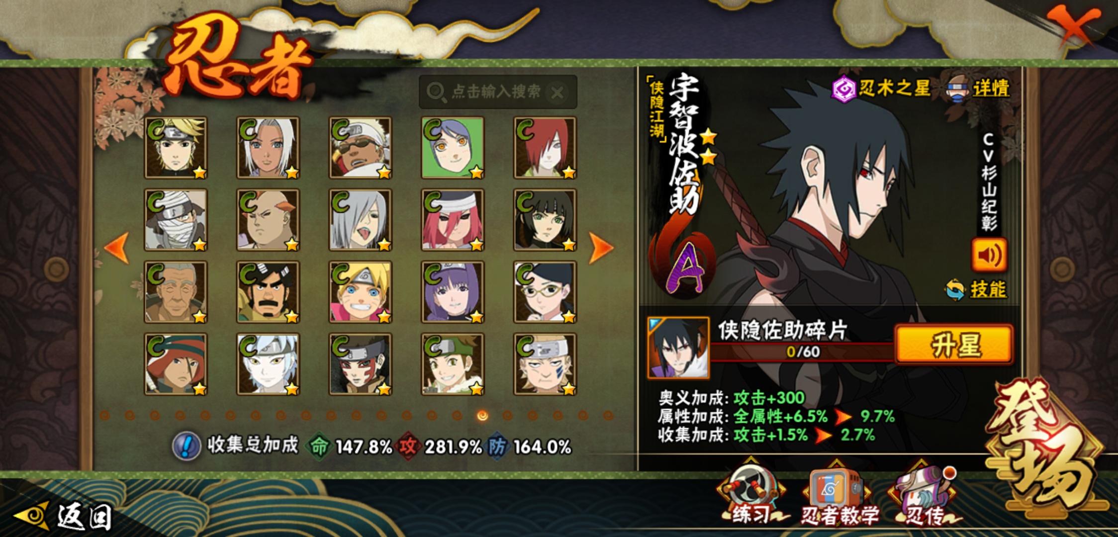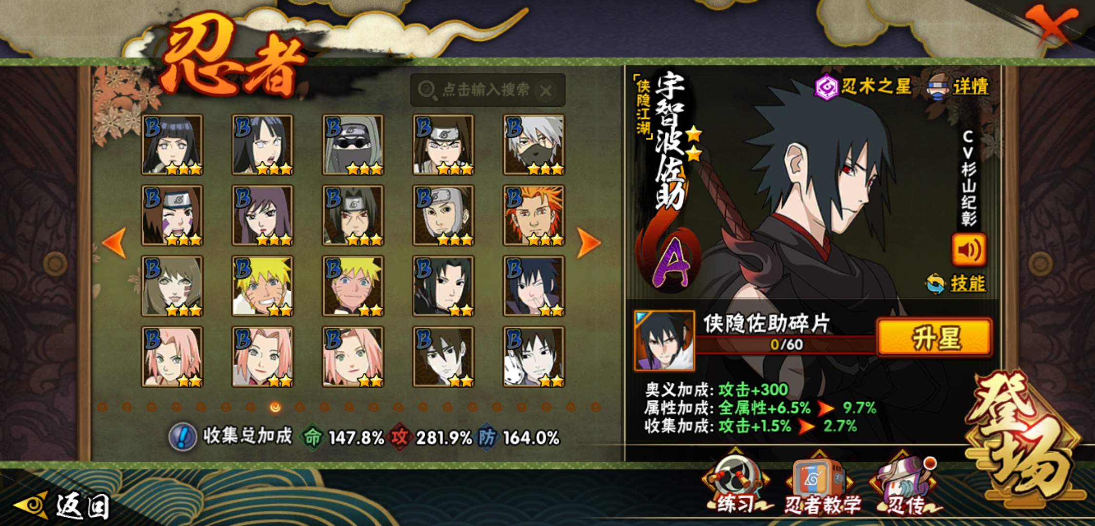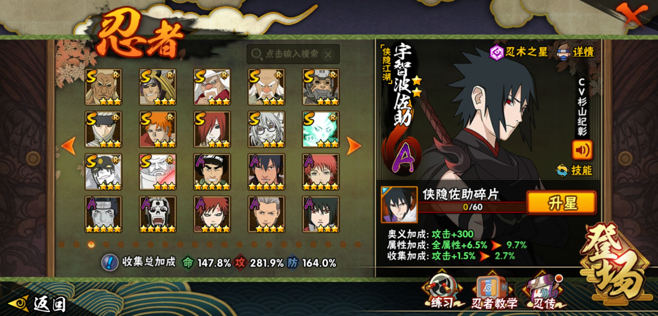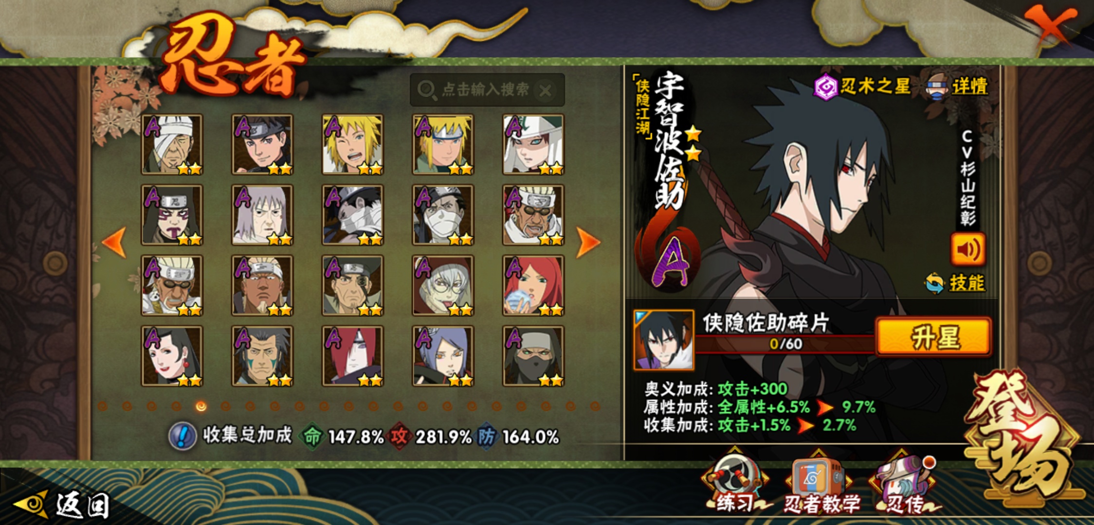 【火影忍者】【lyhy9020】战斗力:2435w;段位:暗部1阶;本服排名:31;vip:v12级;s忍:52个;a忍:65个;通灵兽:24个,s忍:纲手(普通) 5星|猿飞日斩(普通) 5星|大蛇丸(普通) 4星|须佐能乎宇智波鼬 4星|天道佩恩 4星|暴怒第六尾漩涡鸣人|九喇嘛连结漩涡鸣人|永恒万花筒宇智波佐助|忍界大战春野樱|须佐能乎旗木卡卡西|自来也(普通)|仙人模式自来也|舞之豪杰自来也|传说中的三忍自来也|百豪纲手|死门迈特凯|波风水门|秽土转生波风水门|九喇嘛连结波风水门|秽土转生猿飞日斩|秽土转生千手扉间|千手扉间(普通)|千手柱间(普通)|木叶创立千手柱间|秽土转生千手柱间|宇智波斑(普通)|秽土转生宇智波斑|秽土转生解宇智波斑|秽土转生宇智波鼬|须佐能乎宇智波止水|神秘面具男(普通)|五影会谈宇智波斑|白面具宇智波斑|忍界大战宇智波带土|红夜之刃神秘面具男|四代目风影罗砂|初代目风影烈斗|二代目水影鬼灯幻月|四代目雷影艾|忍界大战艾|三代目雷影艾|秽土转生金角银角|三代目土影大野木|忍界大战大野木|秽土转生半藏|二代目土影无|超佩恩天道|秽土转生长门|仙人模式药师兜|最终章大筒木舍人|大筒木桃式|博人传大筒木金式__a忍:迈特凯(普通) 5星|猿飞阿斯玛(普通) 5星|蝎(普通) 5星|干柿鬼鲛(普通) 5星|死司凭血飞段 5星|疾风传我爱罗 4星|飞段(普通) 4星|万花筒写轮眼宇智波佐助 3星|忍界大战李洛克 3星|五代目水影照美冥 3星|宇智波鼬(普通) 3星|迪达拉(普通) 3星|忍者之路神秘面具男|仙人模式漩涡鸣人|初始形态机械鸣人|九尾查克拉漩涡鸣人|须佐能乎宇智波佐助|侠隐江湖宇智波佐助|宇智波泉奈|百豪春野樱|忍界大战秋道丁次|忍界大战日向宁次|最终章日向雏田|幻之真容旗木卡卡西|万花筒写轮眼旗木卡卡西|秽土转生猿飞阿斯玛|地陆|宇智波止水(普通)|志村团藏|火影继承人猿飞日斩|新春限定波风水门|青年波风水门|忍界大战我爱罗|忍界大战勘九郎|近松十人卫千代|秽土转生桃地再不斩|桃地再不斩|奇拉比(普通)|忍界大战奇拉比|青年艾|忍界大战土台|半蛇斗篷药师兜|不风|不缘|不动|青年长门|小南(普通)|晓创生角都|角都(普通)|地怨虞角都|秽土转生角都|晓大蛇丸|绯流琥蝎|新春限定宇智波鼬|夏日限定宇智波鼬|秽土转生迪达拉|漂泊浪客宇智波带土|加藤断|侠隐江湖大野木|羁绊神农|木叶上忍猿飞木叶丸|六代目水影长十郎|五代目雷影达鲁伊|桃式显现漩涡博人|四代目土影黑土__通灵兽:忍犬(普通)|蓝蛇|蛤蟆吉|忍龟|镰鼬|猿魔|山椒鱼|蜃|蛤蟆仙人|鲛鲨|蛤蟆健|乌鸦(普通)|蛞蝓(普通)|蛤蟆龙|蛤蟆广|砂之守鹤|梦貘|鹰|蜘蛛|熊猫|怒鬼爪|怒鬼无臂|辛牙|怒鬼(普通)
