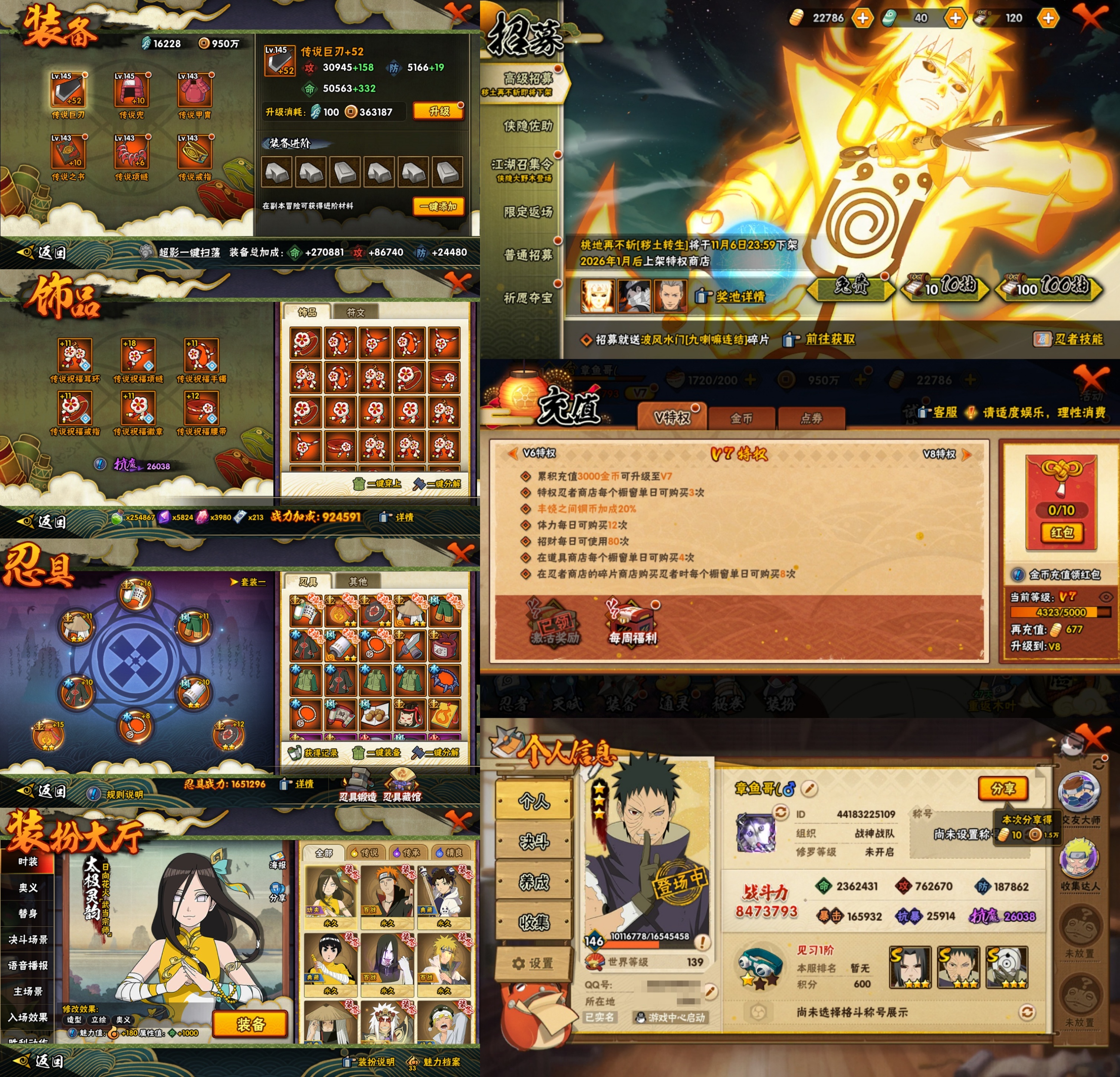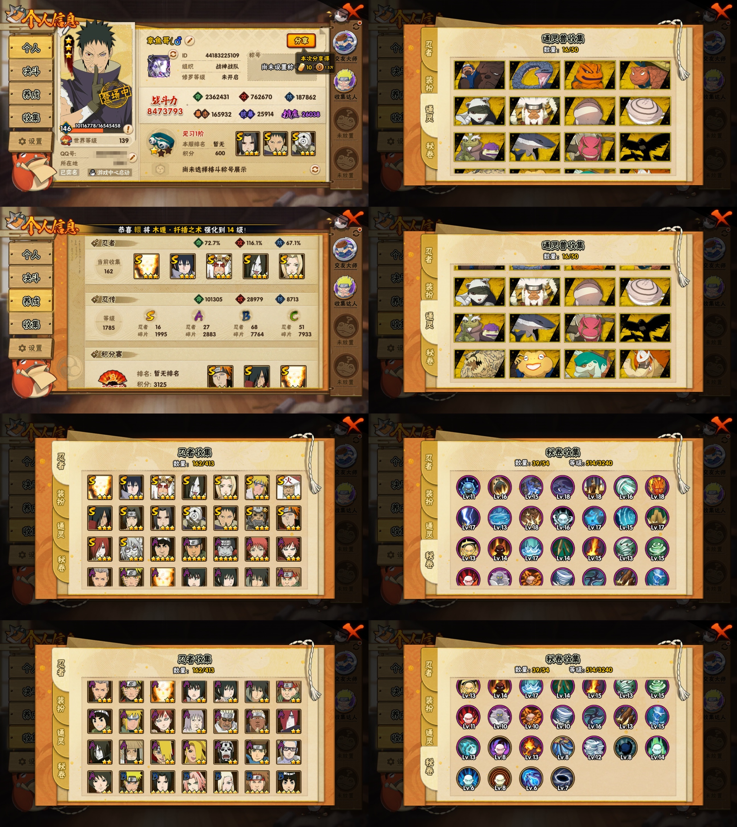 2242236-16s忍/27a忍/战力847w/v7/区服1832 【s忍者】 宇智波佐助「永恒万花筒」,漩涡鸣人「九喇嘛连结」,宇智波带土「忍界大战」,自来也「舞之豪杰」,宇智波鼬「秽土转生」,药师兜「仙人模式」,宇智波斑「秽土转生」,宇智波斑「白面具」,半藏「秽土转生」,长门「秽土转生」,宇智波鼬「须佐能乎」,佩恩「天道」,猿飞日斩,波风水门,大蛇丸,纲手, 【a忍者】 长十郎「六代目