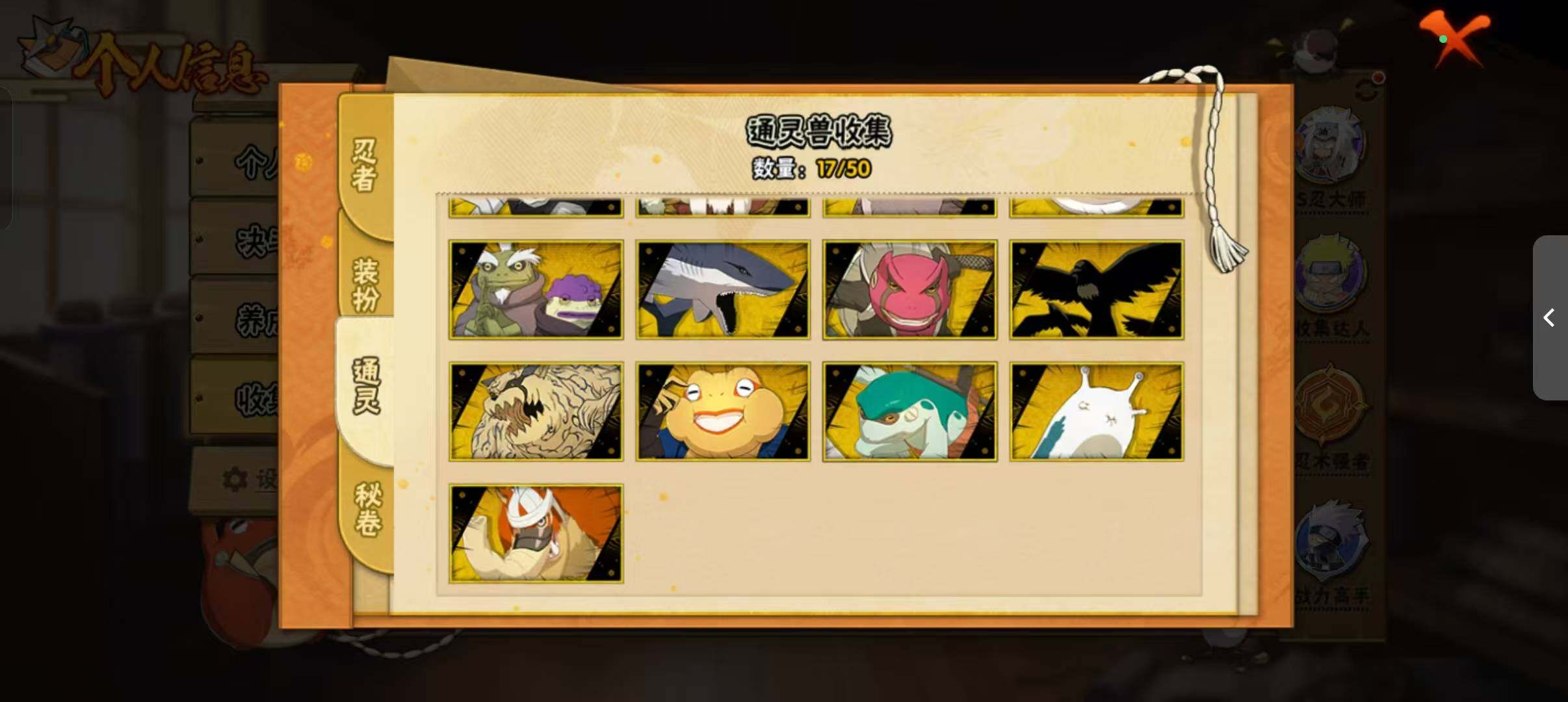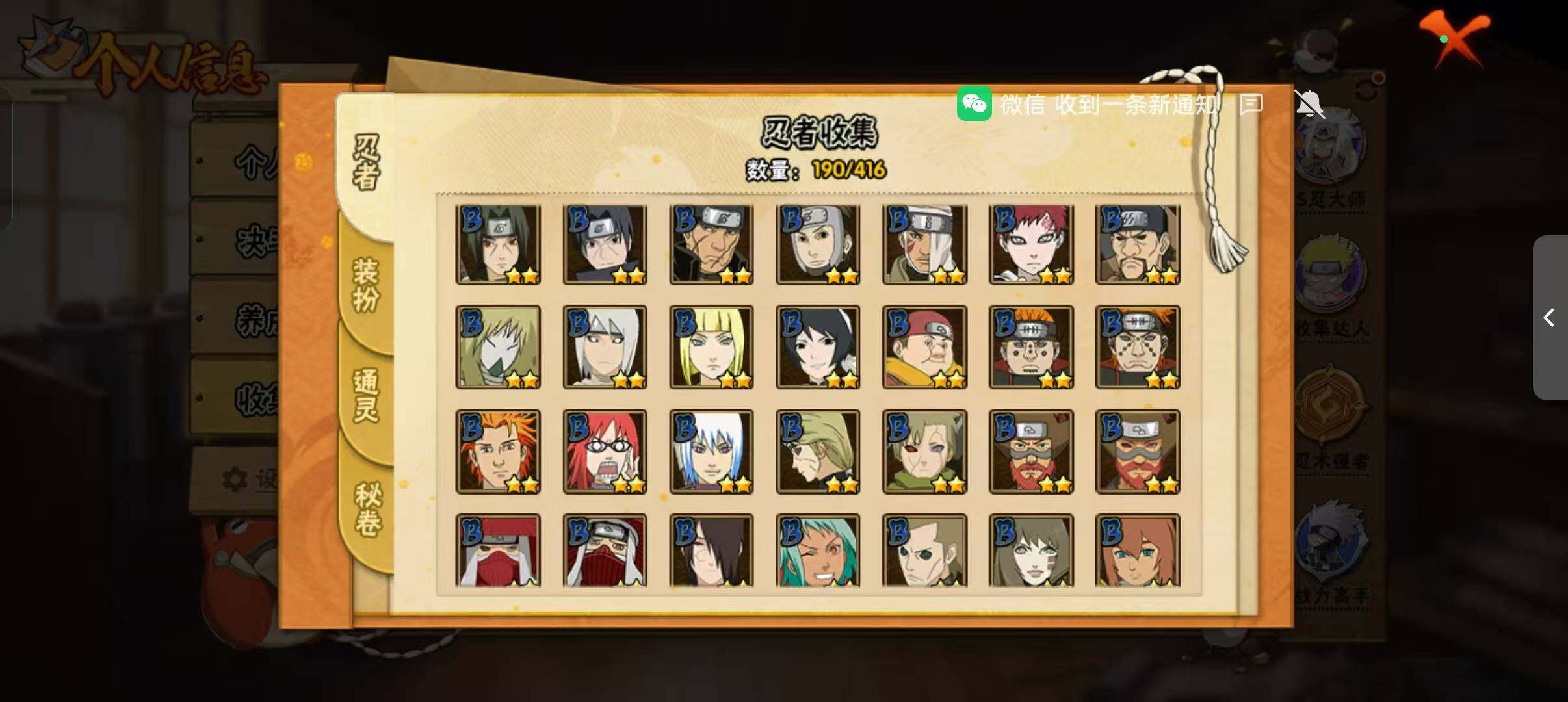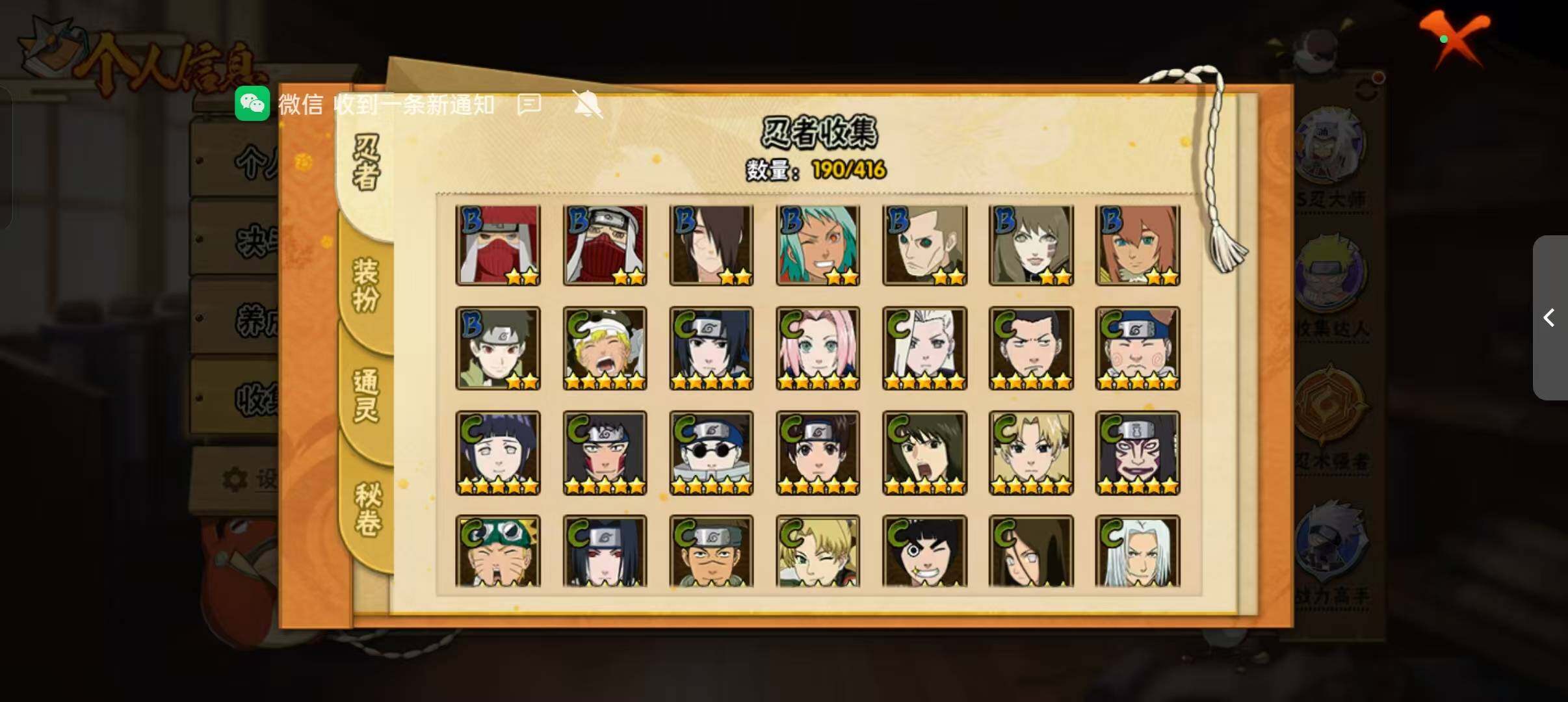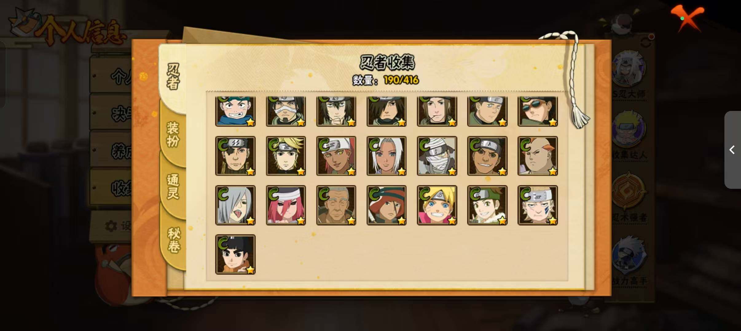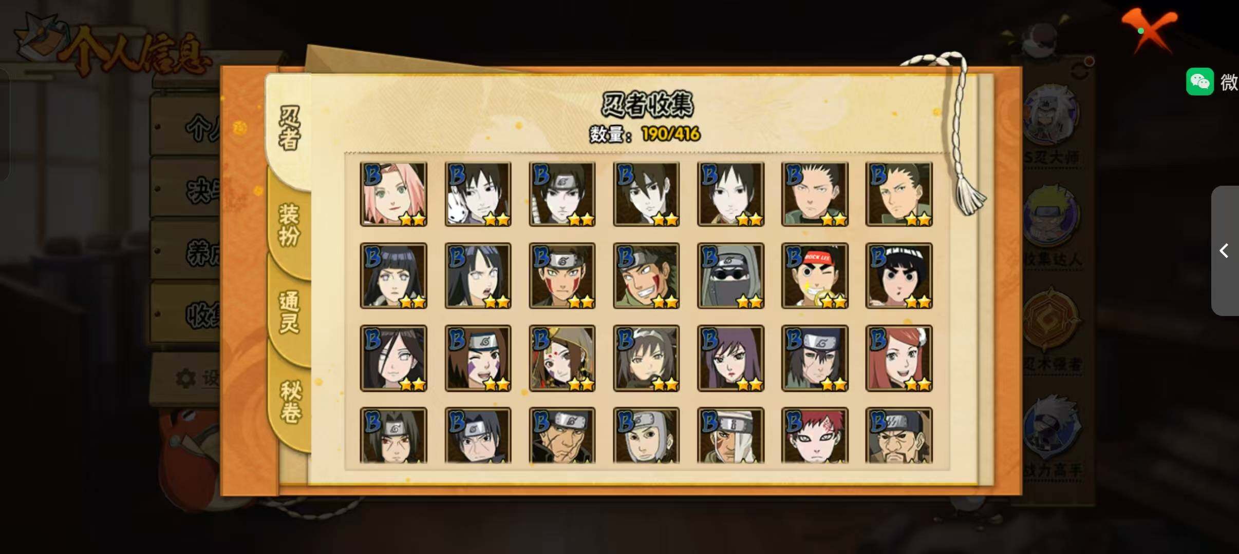 [14372512]v11 1059万战力 21s-37a tt1509 【s级忍者】:猿飞日斩「秽土转生」3星,波风水门「秽土转生」3星,宇智波鼬「秽土转生」3星,春野樱「忍界大战」3星,宇智波鼬「须佐能乎」3星,宇智波止水「须佐能乎」3星,旗木卡卡西「须佐能乎」3星,宇智波斑「木叶创立」3星,自来也「舞之豪杰」3星,大蛇丸3星,自来也「传说中的三忍」3星,纲手「百豪」3星,波风水门3星,神秘面具男「红夜之刃」3星,漩涡鸣人「九喇嘛连结」3星,迈特凯「死门」3星,佩恩「天道」3星,宇智波佐助「永恒万花筒」3星,宇智波斑 「白面具」3星宇智波斑「白面具」,大筒木舍人「最终章」3星,漩涡鸣人「暴怒·第六尾」3星 【a级忍者】:艾「青年」2星,长门「青年」2星,波风水门「青年」2星,达鲁伊「博人传」2星,迪达拉「秽土转生」2星,大蛇丸「晓」2星,奇拉比2星,奇拉比「忍界大战」2星,飞段4星,飞段「死司凭血」2星,干柿鬼鲛5星,漩涡鸣人「九尾查克拉」2星,迈特凯5星,旗木卡卡西「幻之真容」2星,我爱罗「疾风传」3星,我爱罗「忍界大战」2星,蝎3星,蝎「绯流琥」2星,角都「地怨虞」2星,角都「秽土转生」2星,猿飞阿斯玛5星,猿飞阿斯玛「秽土转生」2星,宇智波止水2星,猿飞日斩「火影继承人」2星,宇智波鼬2星,宇智波佐助「须佐能乎」2星,宇智波佐助「万花筒写轮眼」2星,药师兜「半蛇斗篷」2星,照美冥「五代目水影」2星,长十郎「六代目水影」2星,李洛克「忍界大战」2星,猿飞木叶丸「博人传」2星,黑土「博人传」2星,秋道丁次「忍界大战」2星,千代「近松十人卫」2星,神农「羁绊」2星,宇智波泉奈2星