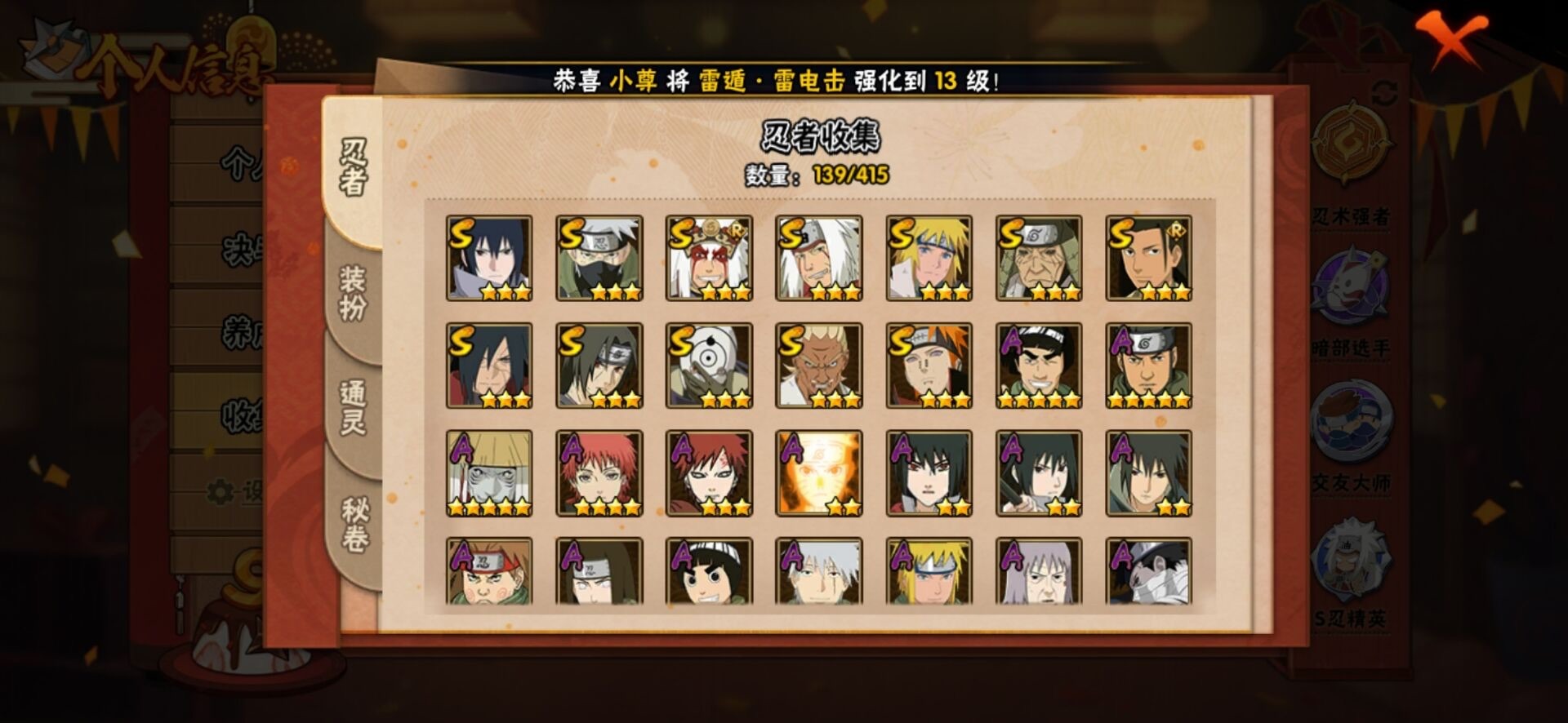 [14373442]v6 12s忍 26a忍 14通灵 701.3w战力 可二次 可修改实名 【s级忍者】:艾「忍界大战」宇智波斑「秽土转生·解」千手柱间·木叶创立宇智波佐助「永恒万花筒」自来也 「舞之豪杰」旗木卡卡西「须佐能乎」宇智波斑「白面具」猿飞日斩「秽土转生」宇智波鼬 「须