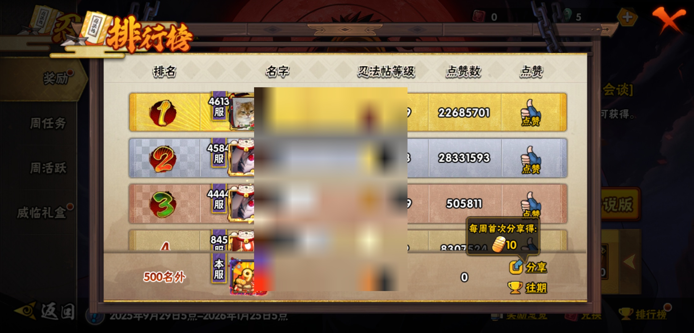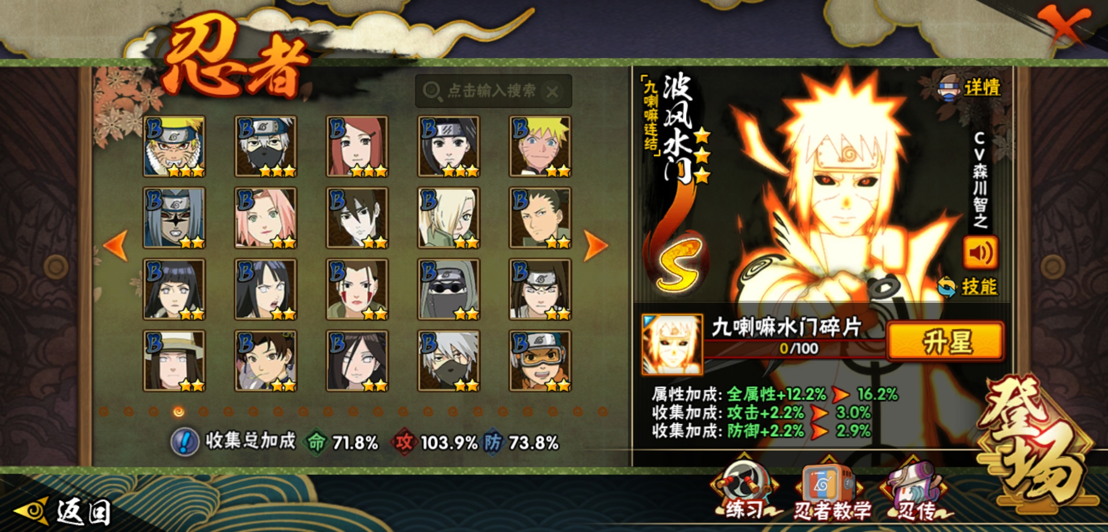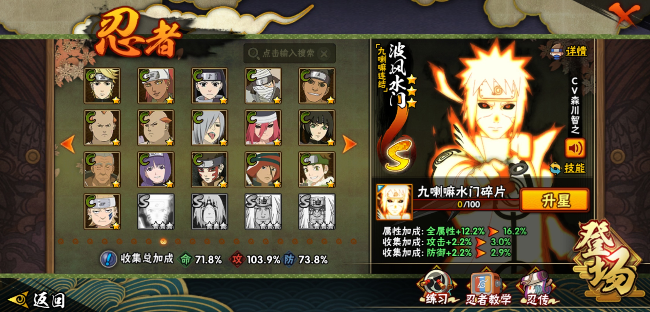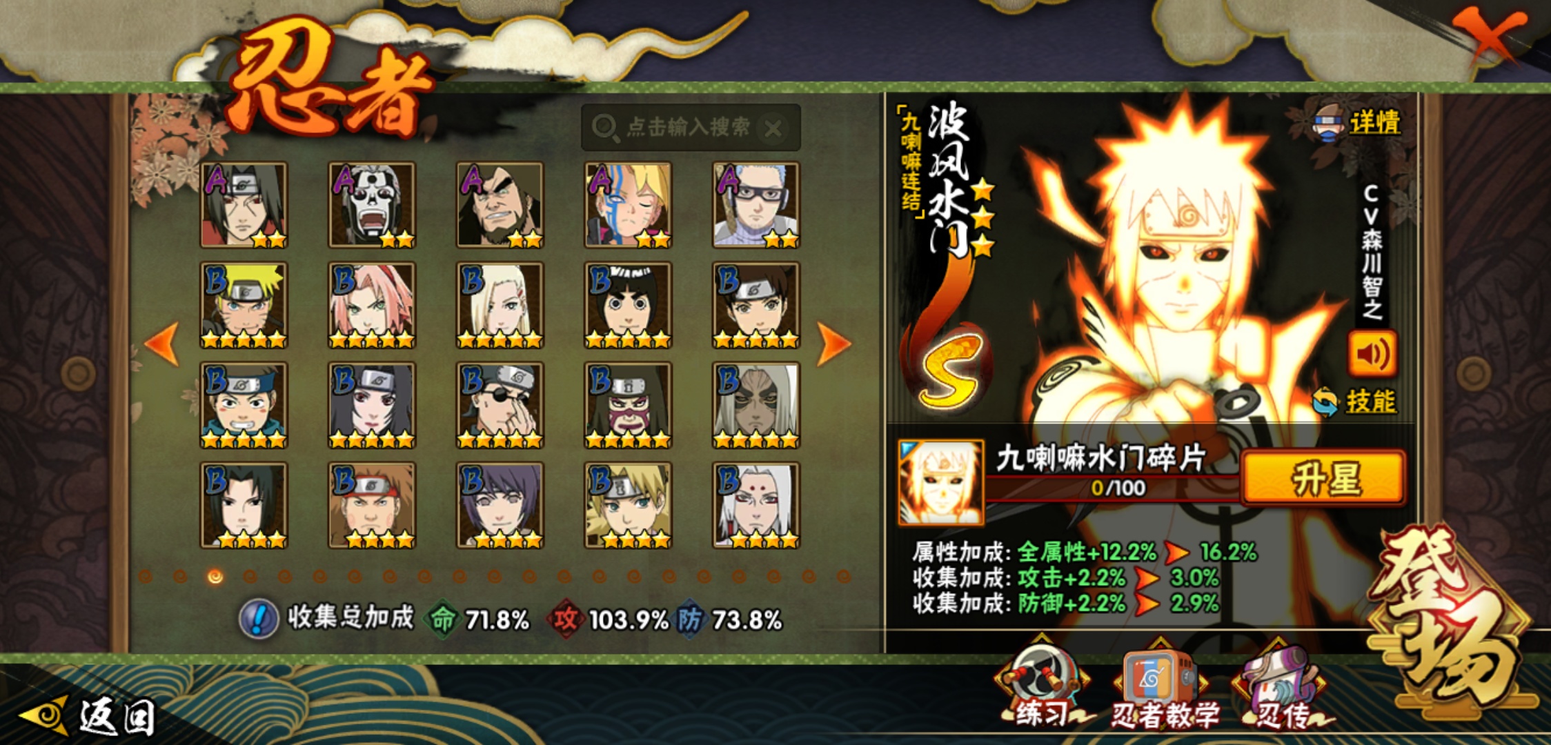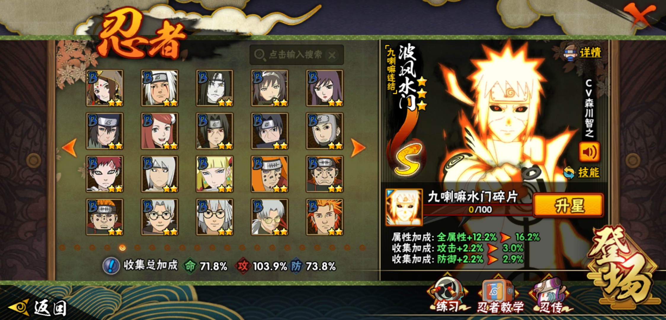 【火影忍者】【lyhy9017】战斗力:887w;段位:中忍1阶;本服排名:1359;vip:v10级;s忍:16个;a忍:29个;通灵兽:16个,s忍:天道佩恩 4星|暴怒第六尾漩涡鸣人|永恒万花筒宇智波佐助|须佐能乎旗木卡卡西|舞之豪杰自来也|传说中的三忍自来也|波风水门|九喇嘛连结波风水门|秽土转生解宇智波斑|须佐能乎宇智波鼬|须佐能乎宇智波止水|神秘面具男(普通)|红夜之刃神秘面具男|忍界大战艾|最终章大筒木舍人|大筒木桃式__a忍:迈特凯(普通) 5星|干柿鬼鲛(普通) 5星|猿飞阿斯玛(普通) 4星|疾风传我爱罗 3星|蝎(普通) 3星|飞段(普通) 3星|仙人模式漩涡鸣人|初始形态机械鸣人|九尾查克拉漩涡鸣人|须佐能乎宇智波佐助|宇智波泉奈|忍界大战秋道丁次|忍界大战李洛克|幻之真容旗木卡卡西|万花筒写轮眼旗木卡卡西|秽土转生猿飞阿斯玛|宇智波止水(普通)|近松十人卫千代|五代目水影照美冥|秽土转生桃地再不斩|忍界大战奇拉比|小南(普通)|秽土转生角都|绯流琥蝎|宇智波鼬(普通)|死司凭血飞段|羁绊神农|桃式显现漩涡博人|六代目水影长十郎__通灵兽:忍犬(普通)|蓝蛇|蛤蟆吉|忍龟|镰鼬|猿魔|山椒鱼|蜃|砂之守鹤|蛤蟆仙人|鲛鲨|蛤蟆健|乌鸦(普通)|蛞蝓(普通)|蛤蟆龙|蛤蟆广