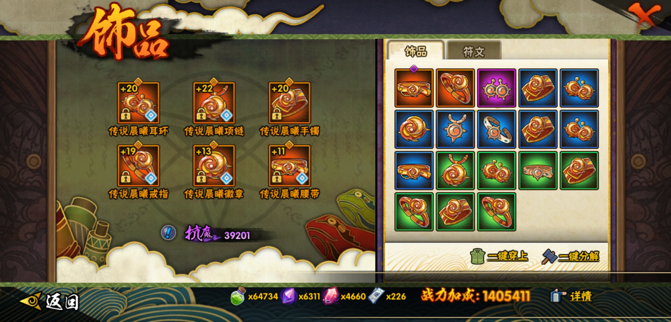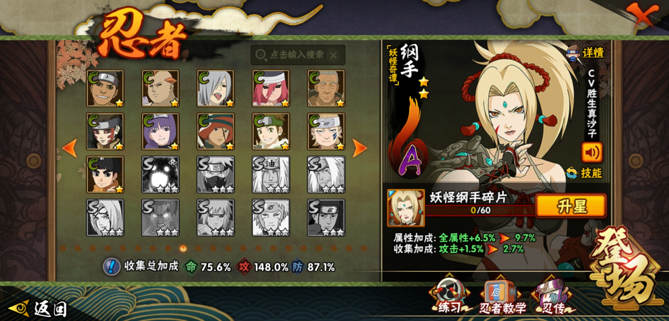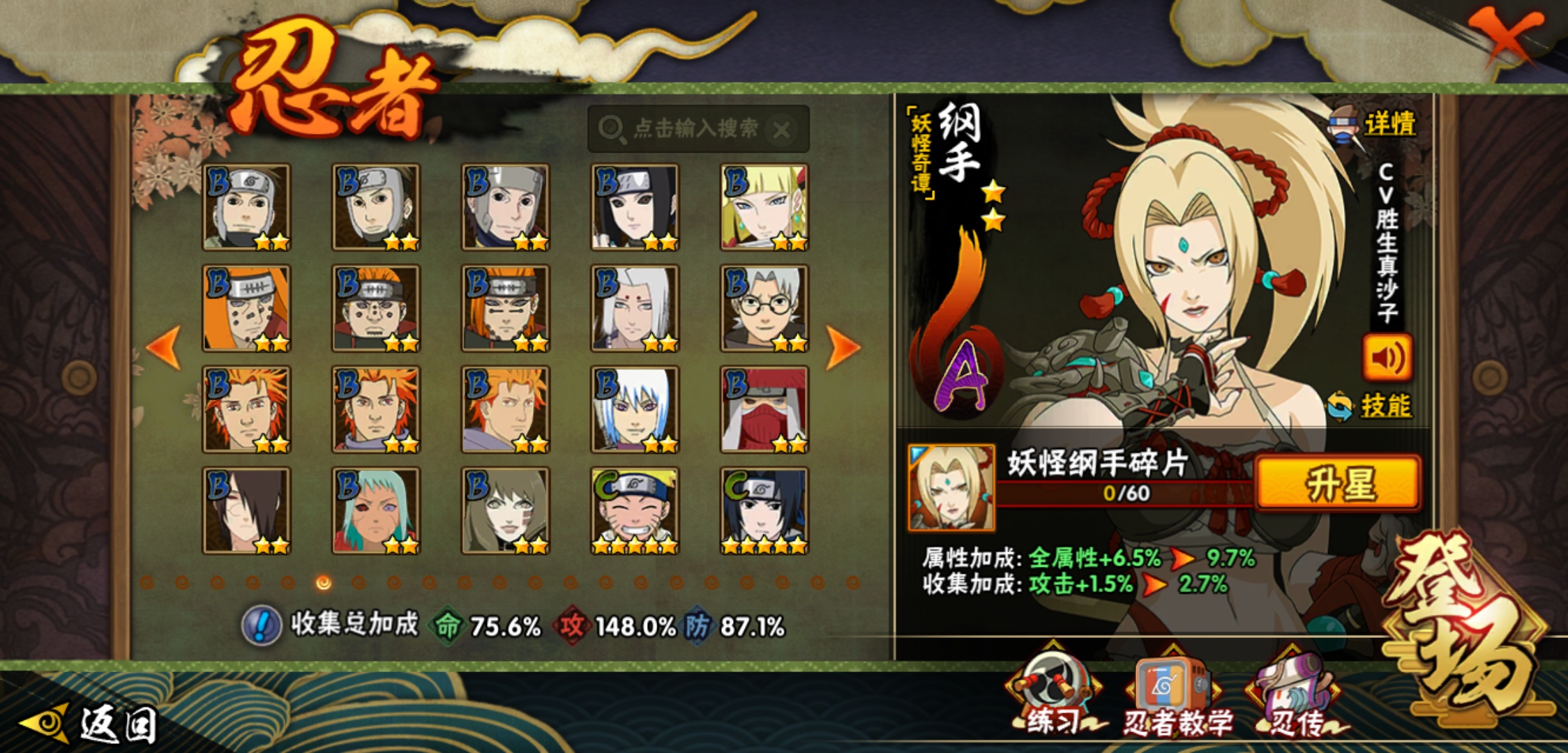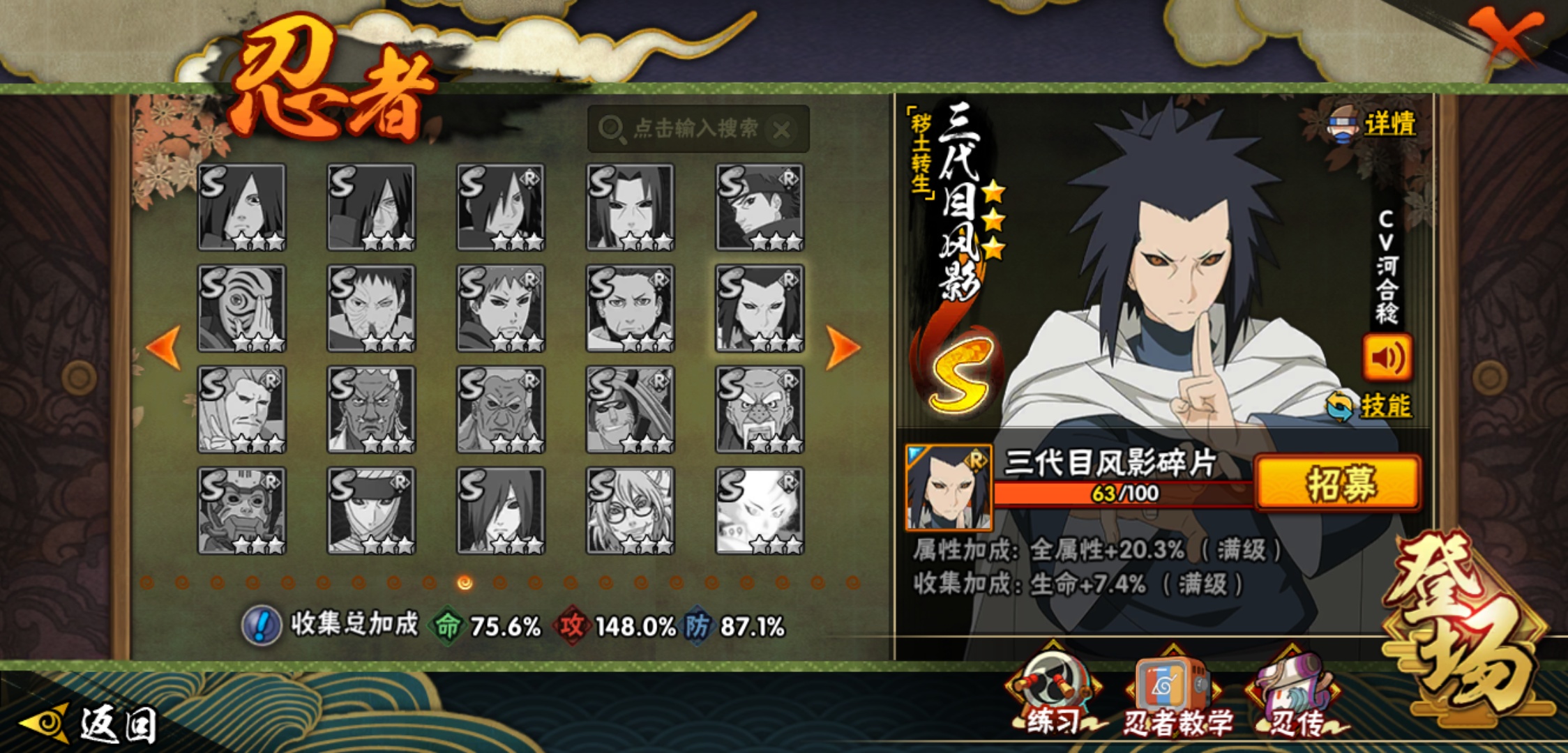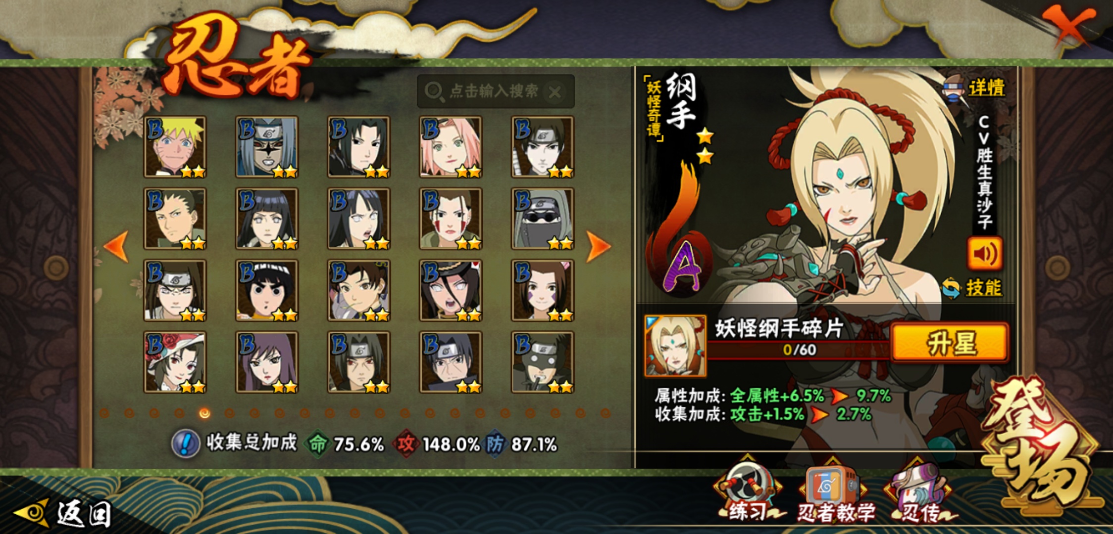 【火影忍者】【lyhy9065】战斗力:1493w;段位:中忍3阶;本服排名:66;vip:v11级;s忍:25个;a忍:35个;通灵兽:23个,s忍:纲手(普通) 5星|大蛇丸(普通) 4星|猿飞日斩(普通) 4星|九喇嘛连结漩涡鸣人|永恒万花筒宇智波佐助|忍界大战春野樱|仙人模式自来也|舞之豪杰自来也|波风水门|九喇嘛连结波风水门|秽土转生猿飞日斩|秽土转生千手扉间|木叶创立千手柱间|秽土转生千手柱间|秽土转生解宇智波斑|须佐能乎宇智波鼬|白面具宇智波斑|五影会谈宇智波斑|红夜之刃神秘面具男|忍界大战艾|忍界大战大野木|天道佩恩|超佩恩天道|大筒木桃式|博人传大筒木金式__a忍:迈特凯(普通) 5星|猿飞阿斯玛(普通) 5星|蝎(普通) 5星|干柿鬼鲛(普通) 5星|疾风传我爱罗 3星|飞段(普通) 3星|初始形态机械鸣人|仙人模式漩涡鸣人|万花筒写轮眼宇智波佐助|须佐能乎宇智波佐助|忍界大战秋道丁次|忍界大战日向宁次|忍界大战李洛克|最终章日向雏田|青春爆炸迈特凯|青年波风水门|近松十人卫千代|五代目水影照美冥|秽土转生桃地再不斩|忍界大战奇拉比|青年艾|妖怪奇谭纲手|侠隐江湖药师兜|不缘|青年长门|漂泊浪客佩恩六道|漂泊浪客小南|角都(普通)|宇智波鼬(普通)|迪达拉(普通)|死司凭血飞段|六代目水影长十郎|桃式显现漩涡博人|仙人模式巳月|四代目土影黑土__通灵兽:忍犬(普通)|蓝蛇|蛤蟆吉|忍龟|砂之守鹤|镰鼬|猿魔|山椒鱼|蜃|蛤蟆仙人|鲛鲨|蛤蟆健|乌鸦(普通)|蛞蝓(普通)|怒鬼爪|蛤蟆龙|蛤蟆广|熊猫|梦貘|万蛇|辛牙|螃蟹|鹰