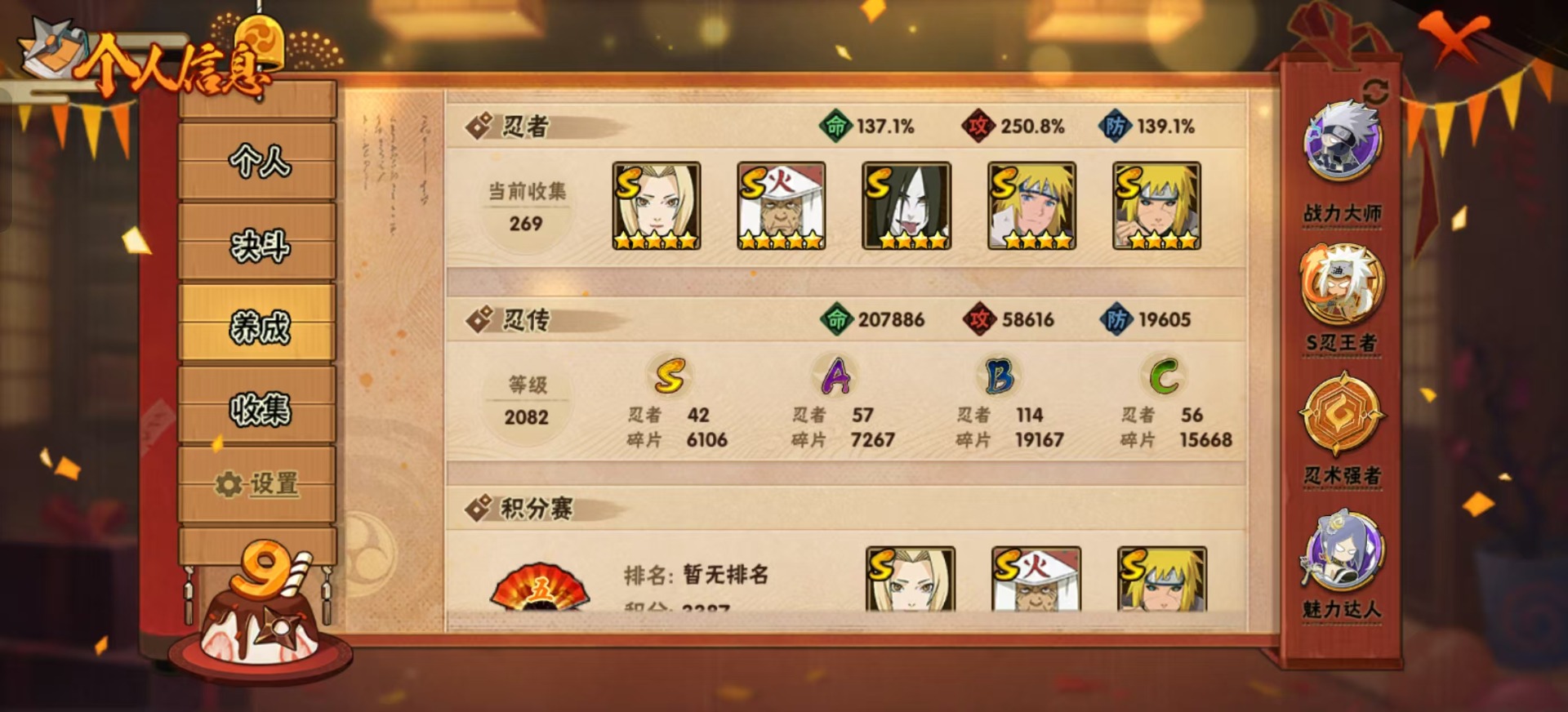 v15 14s忍 57a忍 24通灵 1935.8w战力 可二次 可修改实名 【s级忍者】:艾「忍界大战」大筒木桃式宇智波带土 「忍界大战」罗砂「四代目风影」佩恩·天道「超」药师兜「仙人模式」艾「三代目雷影」宇智波斑「白面具」半藏「秽土转生」金角/银角「秽土转生」长门「秽土转生