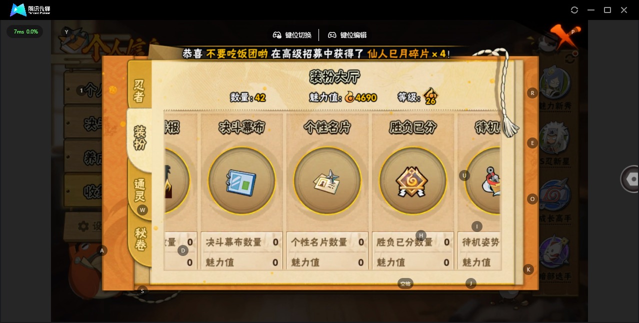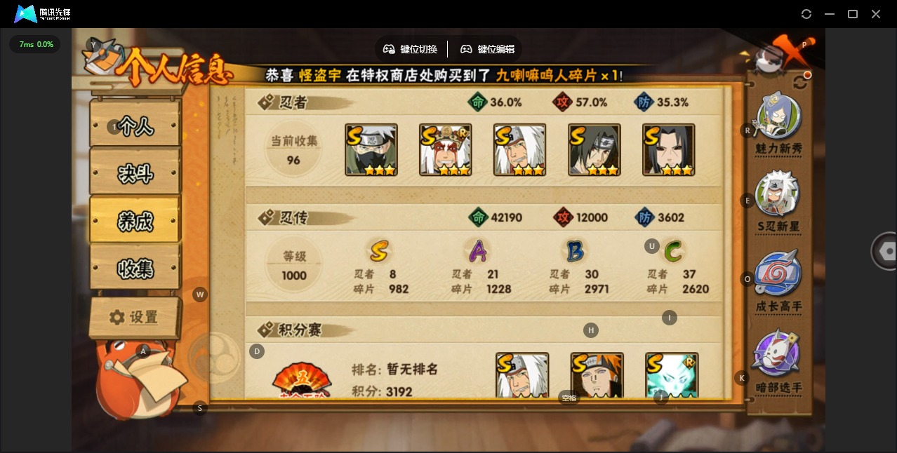 v7 8s忍 21a忍 13通灵 491w战力 可二次 可修改实名 【s级忍者】:自来也 「舞之豪杰」旗木卡卡西「须佐能乎」大筒木舍人 「最终章」宇智波鼬「秽土转生」宇智波斑「白面具」宇智波鼬 「须佐能乎」佩恩「天道」自来也