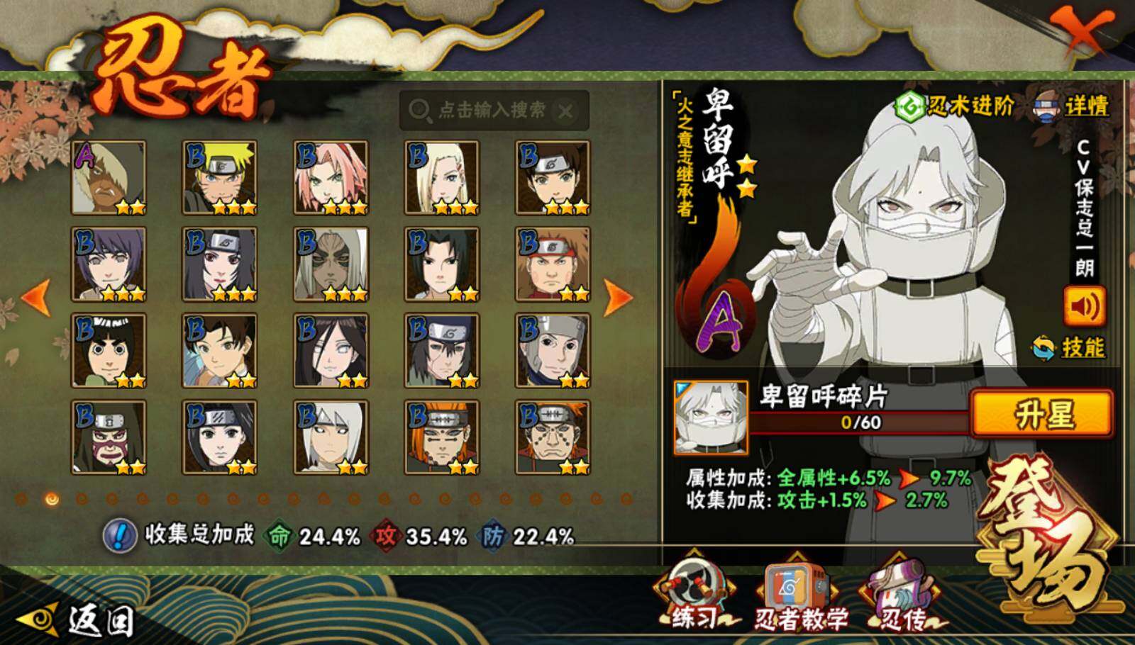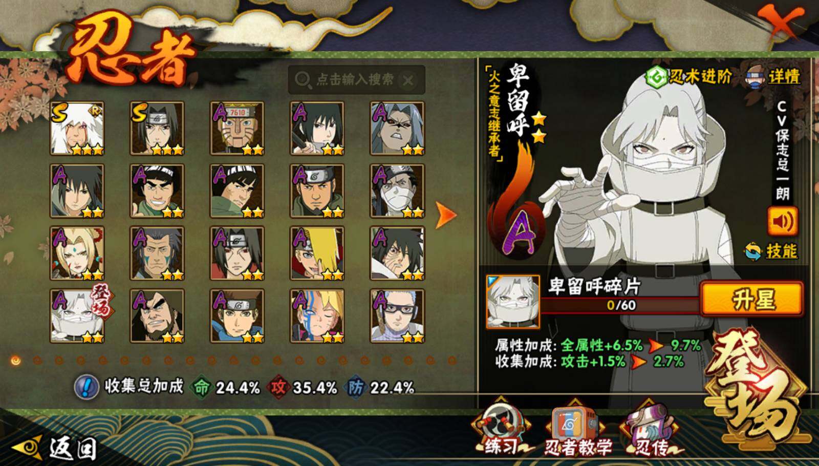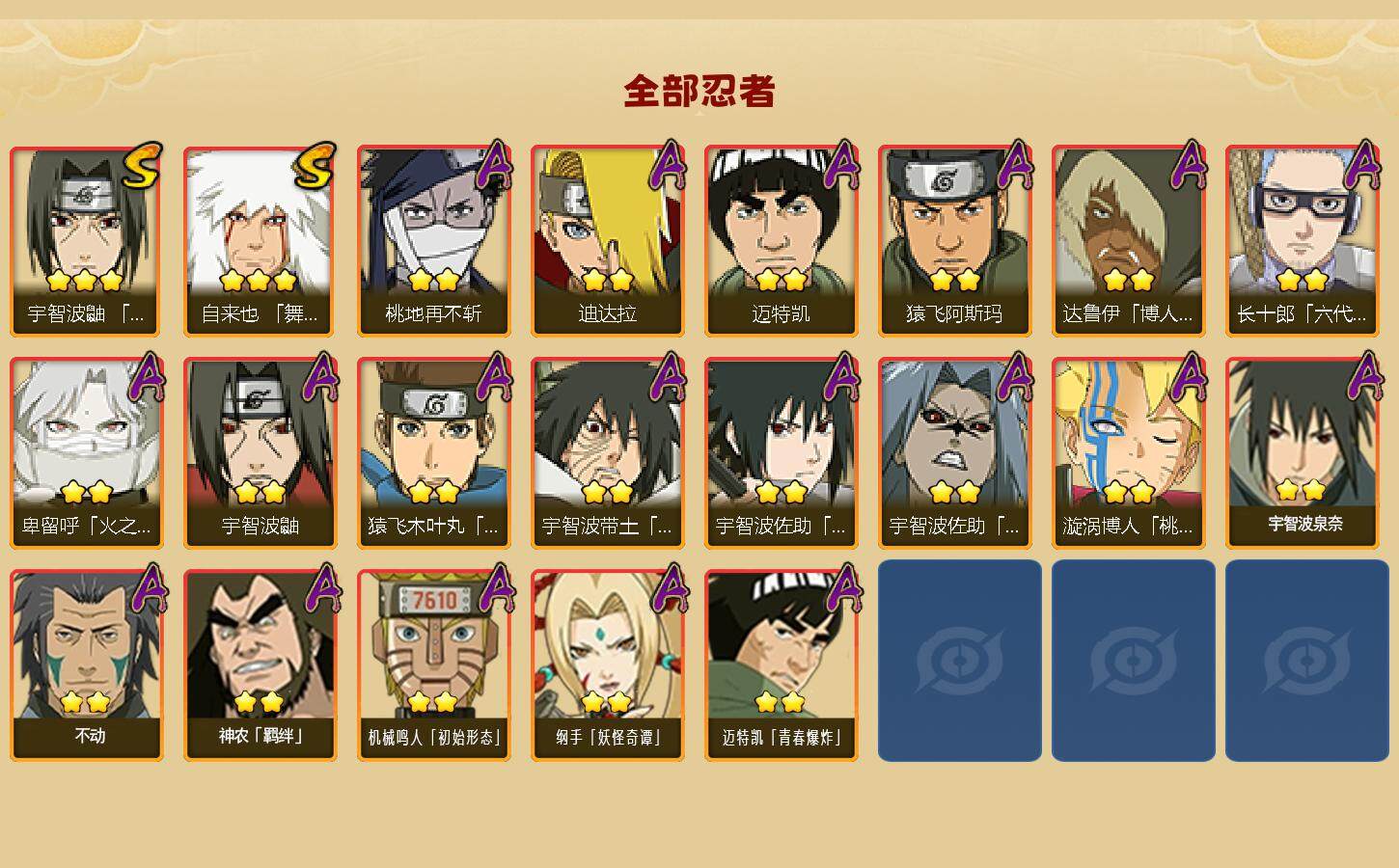 【hyyh720】v9/战力250w/s忍2/a忍19/3星自来也「舞之豪杰」/2星达鲁伊「博人传」/2星宇智波鼬/2星迈特凯/2星桃地再不斩/2星宇智波佐助「疾风传咒印」/2星宇智波带土「暴怒」/2星纲手「妖怪奇谭」/2星神农「羁绊」/2星猿飞阿斯玛/2星宇智波泉奈/2星迪达拉/2星漩涡博人「桃式显现」/2星不动/2星迈特凯「青春爆炸」/2星宇智波佐助「须佐能乎」/2星卑留呼「火之意志继承者」/2星猿飞木叶丸「博人传」/2星机械鸣人「初始形态」/2星长十郎「六代目水影」/3星宇智波鼬「须佐能乎」