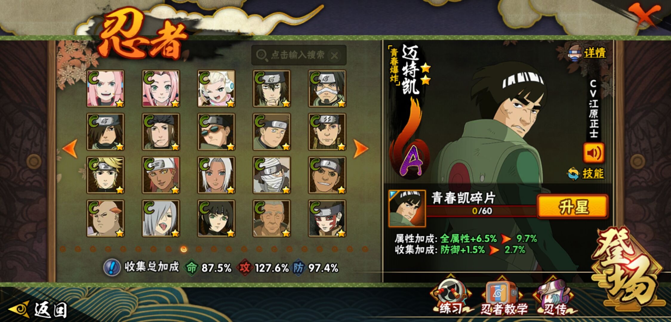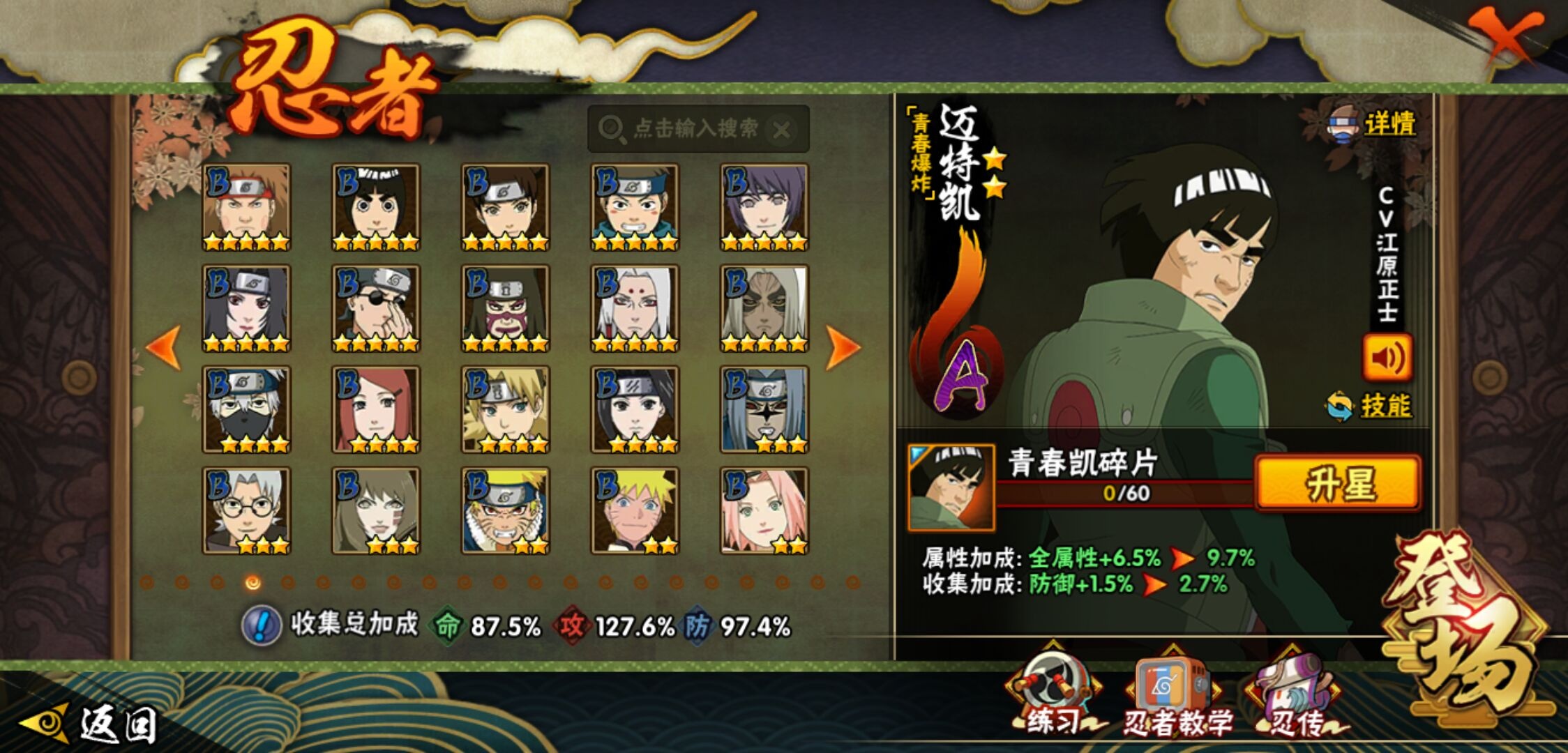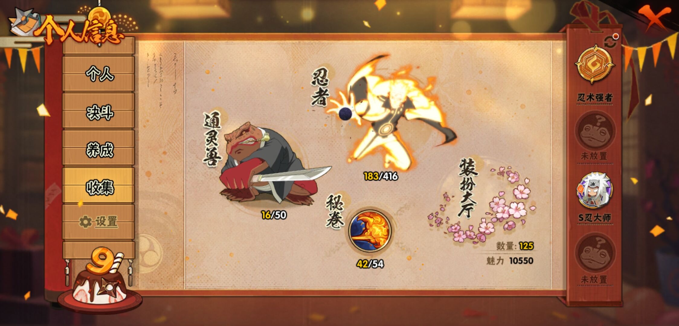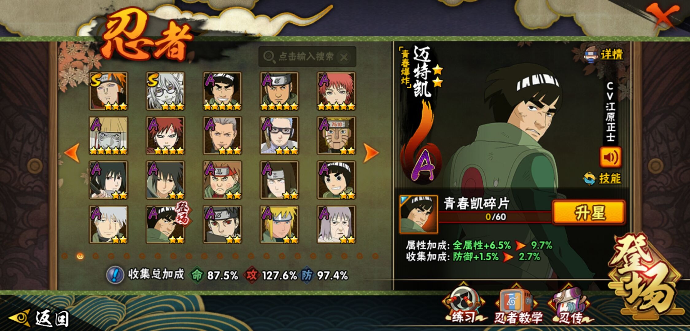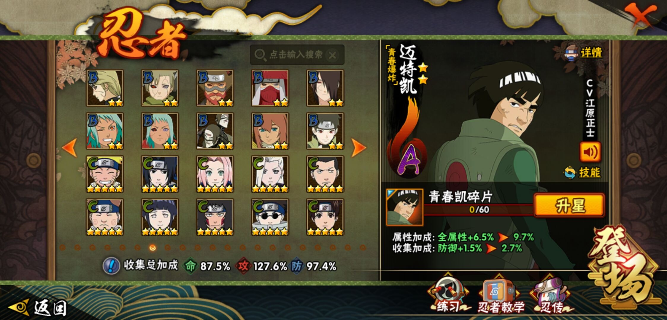 【火影忍者】【lyhy9129】战斗力:1192w;段位:上忍2阶;本服排名:140;vip:v6级;s忍:22个;a忍:34个;通灵兽:16个,s忍:九喇嘛连结漩涡鸣人|永恒万花筒宇智波佐助|忍界大战春野樱|须佐能乎旗木卡卡西|自来也(普通)|舞之豪杰自来也|传说中的三忍自来也|大蛇丸(普通)|纲手(普通)|死门迈特凯|波风水门|九喇嘛连结波风水门|猿飞日斩(普通)|秽土转生千手扉间|秽土转生千手柱间|秽土转生解宇智波斑|须佐能乎宇智波鼬|秽土转生宇智波鼬|忍界大战宇智波带土|忍界大战艾|天道佩恩|仙人模式药师兜__a忍:迈特凯(普通) 5星|猿飞阿斯玛(普通) 5星|蝎(普通) 5星|干柿鬼鲛(普通) 5星|疾风传我爱罗 4星|飞段(普通) 3星|六代目水影长十郎 3星|初始形态机械鸣人|须佐能乎宇智波佐助|宇智波泉奈|忍界大战秋道丁次|忍界大战日向宁次|忍界大战李洛克|幻之真容旗木卡卡西|青春爆炸迈特凯|宇智波止水(普通)|青年波风水门|近松十人卫千代|秽土转生桃地再不斩|忍界大战奇拉比|青年艾|忍界大战土台|妖怪奇谭纲手|不动|绯流琥蝎|宇智波鼬(普通)|迪达拉(普通)|秽土转生迪达拉|死司凭血飞段|羁绊神农|木叶上忍猿飞木叶丸|五代目雷影达鲁伊|桃式显现漩涡博人|四代目土影黑土__通灵兽:忍犬(普通)|蓝蛇|蛤蟆吉|忍龟|镰鼬|猿魔|山椒鱼|砂之守鹤|蜃|蛤蟆仙人|鲛鲨|蛤蟆健|乌鸦(普通)|蛤蟆龙|蛤蟆广|梦貘