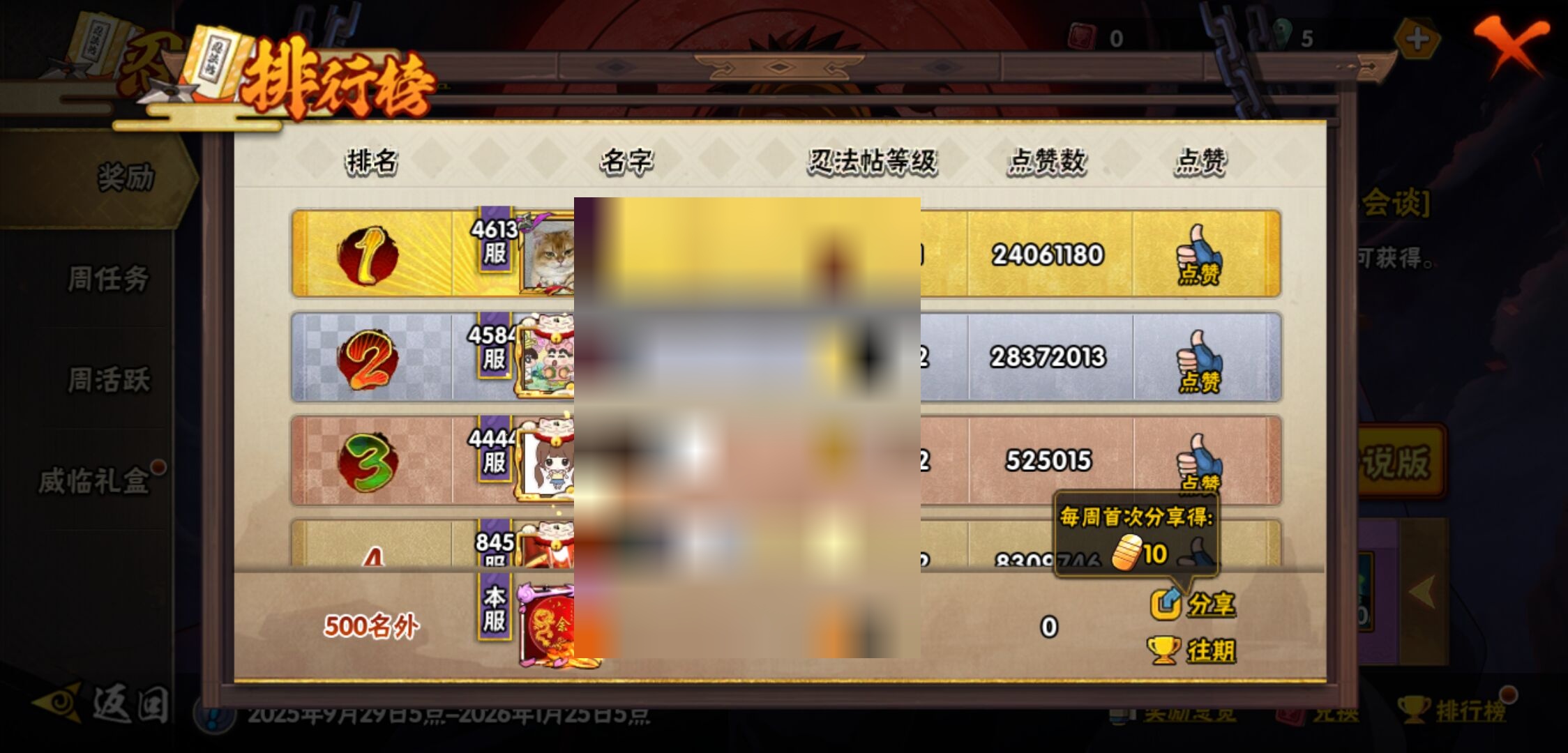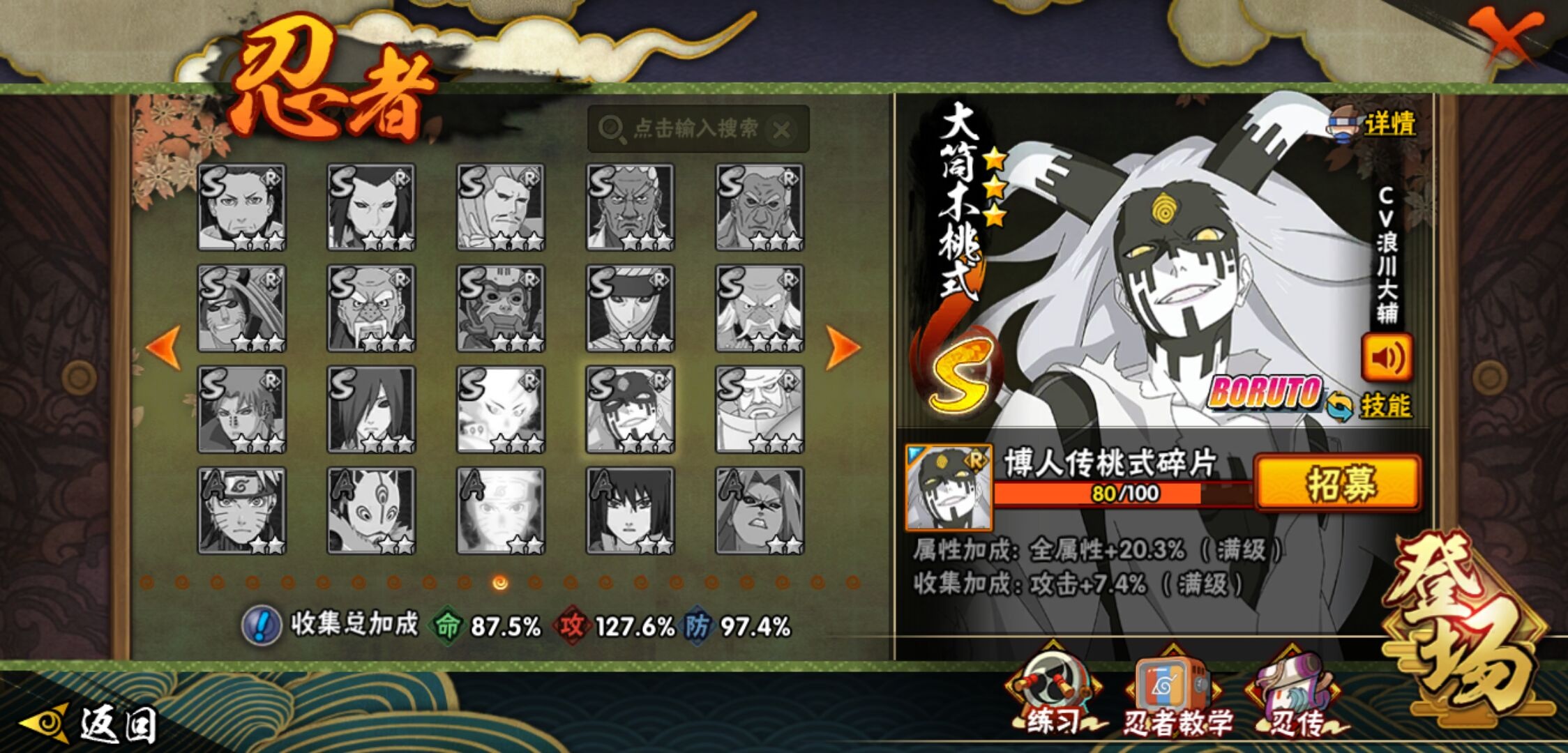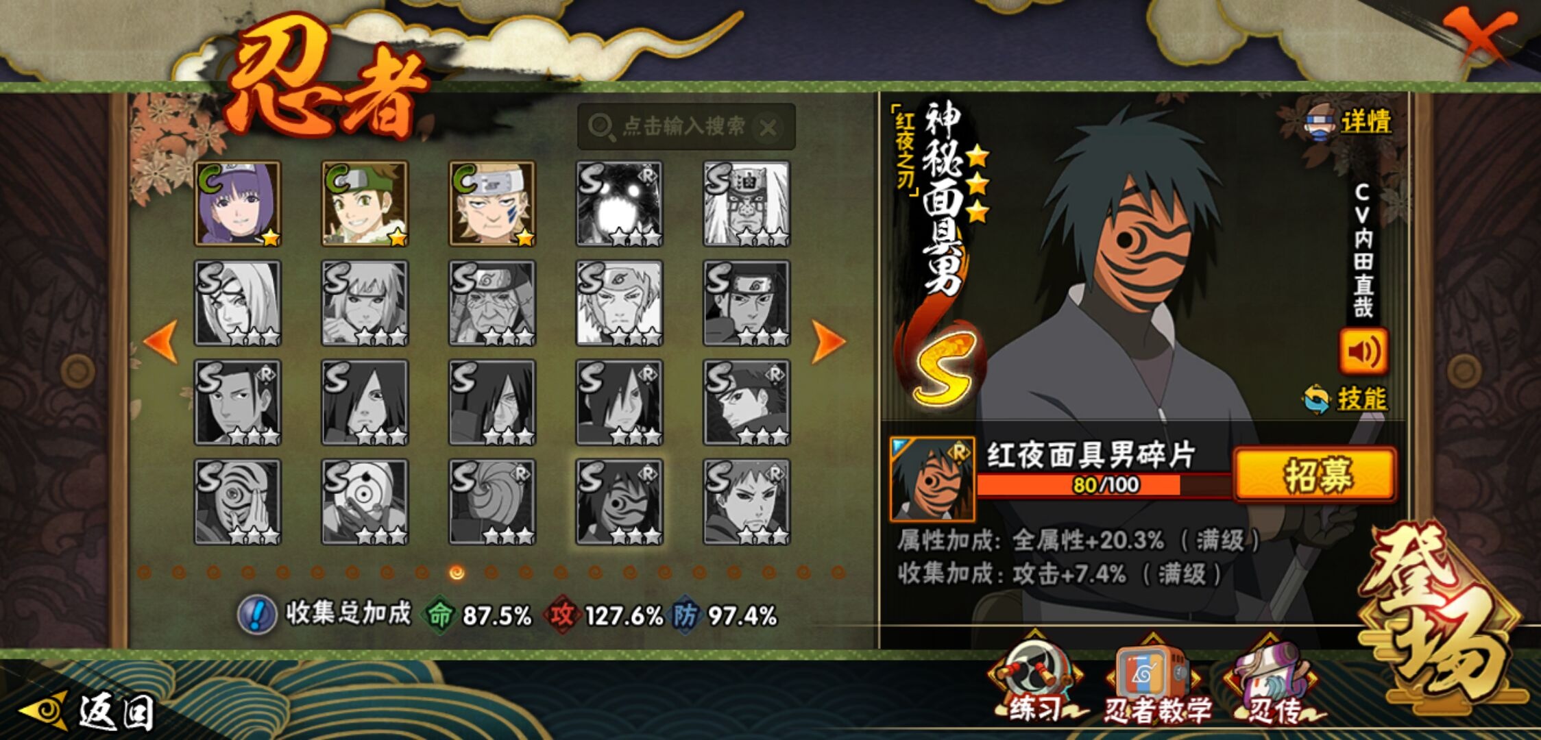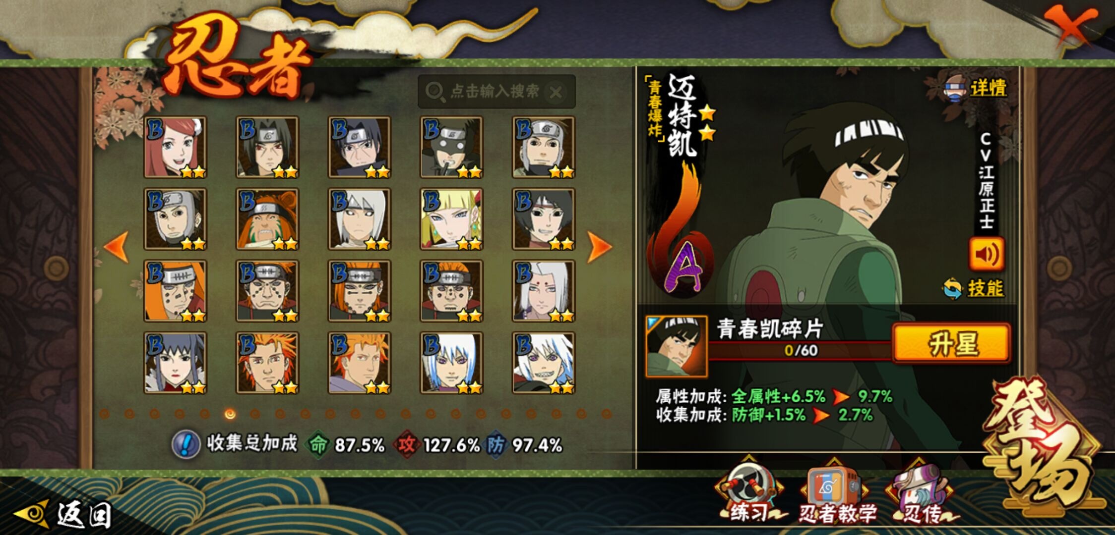 【火影忍者】【lyhy9129】战斗力:1192w;段位:上忍2阶;本服排名:140;vip:v6级;s忍:22个;a忍:34个;通灵兽:16个,s忍:九喇嘛连结漩涡鸣人|永恒万花筒宇智波佐助|忍界大战春野樱|须佐能乎旗木卡卡西|自来也(普通)|舞之豪杰自来也|传说中的三忍自来也|大蛇丸(普通)|纲手(普通)|死门迈特凯|波风水门|九喇嘛连结波风水门|猿飞日斩(普通)|秽土转生千手扉间|秽土转生千手柱间|秽土转生解宇智波斑|须佐能乎宇智波鼬|秽土转生宇智波鼬|忍界大战宇智波带土|忍界大战艾|天道佩恩|仙人模式药师兜__a忍:迈特凯(普通) 5星|猿飞阿斯玛(普通) 5星|蝎(普通) 5星|干柿鬼鲛(普通) 5星|疾风传我爱罗 4星|飞段(普通) 3星|六代目水影长十郎 3星|初始形态机械鸣人|须佐能乎宇智波佐助|宇智波泉奈|忍界大战秋道丁次|忍界大战日向宁次|忍界大战李洛克|幻之真容旗木卡卡西|青春爆炸迈特凯|宇智波止水(普通)|青年波风水门|近松十人卫千代|秽土转生桃地再不斩|忍界大战奇拉比|青年艾|忍界大战土台|妖怪奇谭纲手|不动|绯流琥蝎|宇智波鼬(普通)|迪达拉(普通)|秽土转生迪达拉|死司凭血飞段|羁绊神农|木叶上忍猿飞木叶丸|五代目雷影达鲁伊|桃式显现漩涡博人|四代目土影黑土__通灵兽:忍犬(普通)|蓝蛇|蛤蟆吉|忍龟|镰鼬|猿魔|山椒鱼|砂之守鹤|蜃|蛤蟆仙人|鲛鲨|蛤蟆健|乌鸦(普通)|蛤蟆龙|蛤蟆广|梦貘