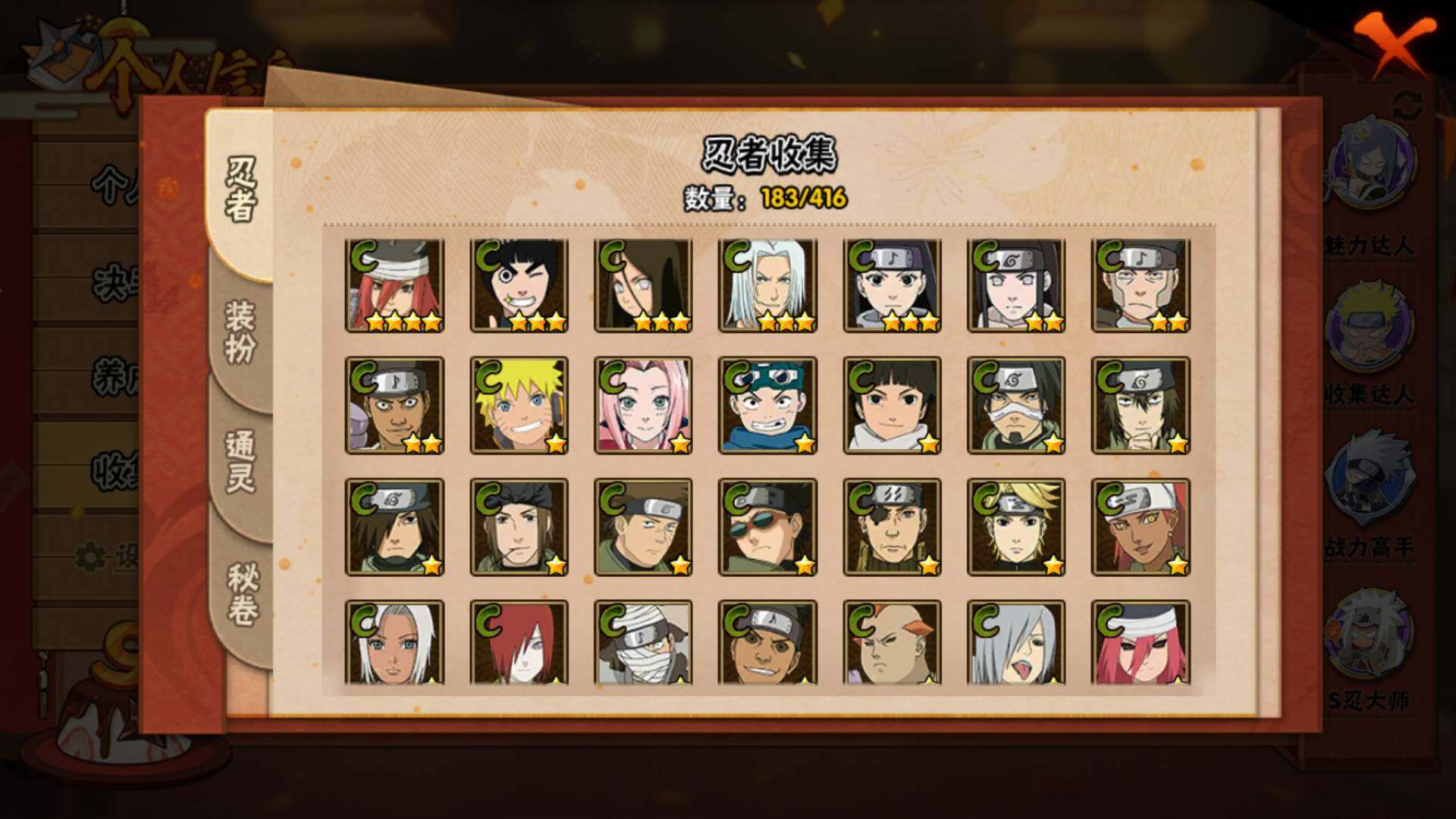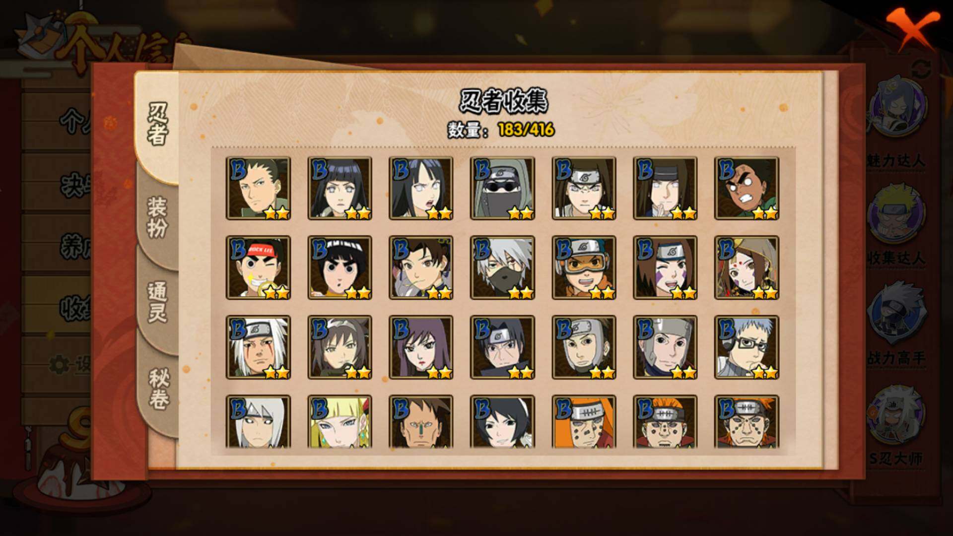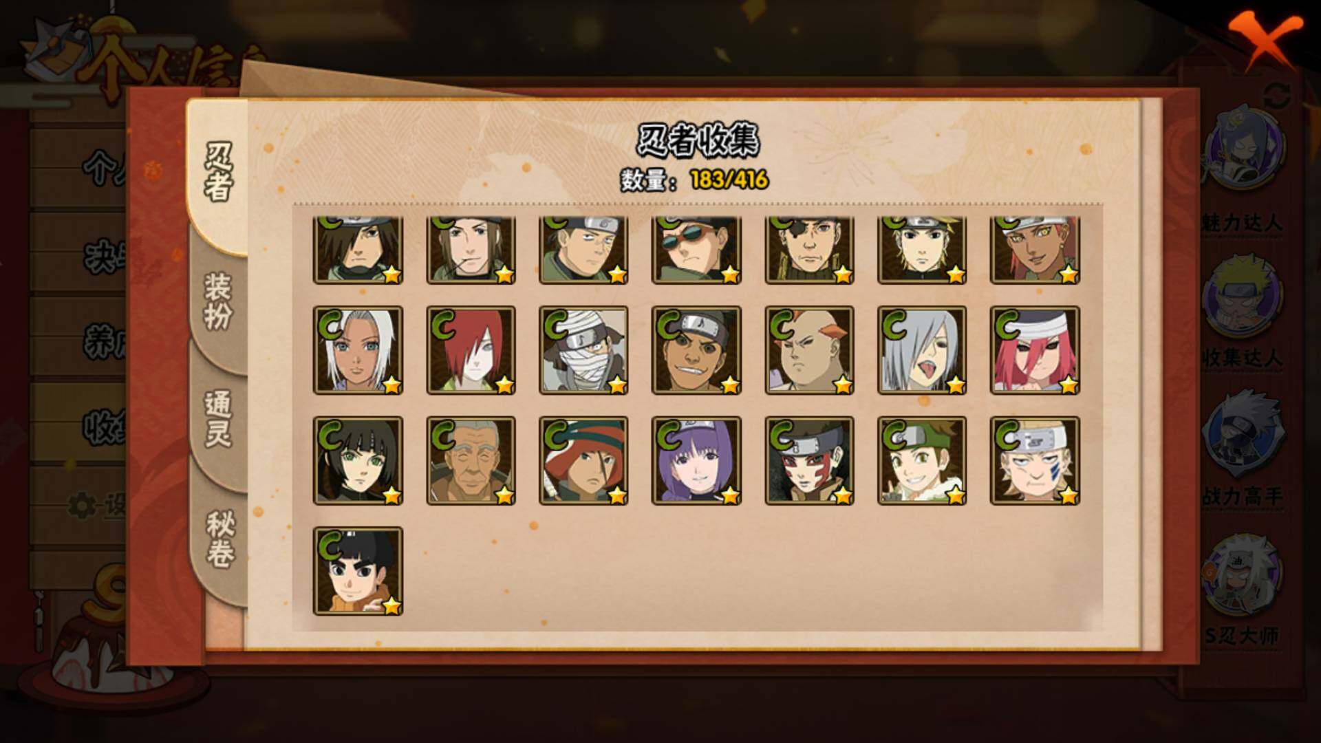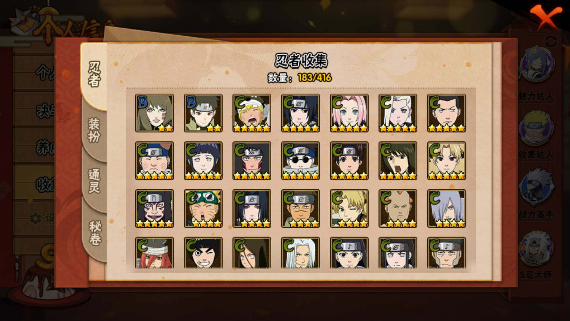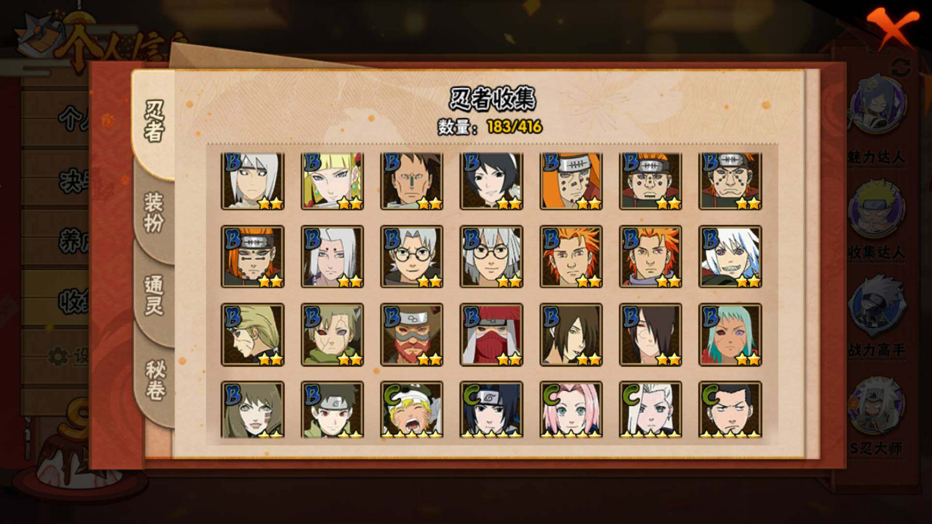 [14454220]v7 959万战力 20s-35a tt1527 【s级忍者】:千手柱间「秽土转生」3星,宇智波鼬「秽土转生」3星,宇智波斑「秽土转生·解」3星,宇智波带土「忍界大战」3星,宇智波鼬「须佐能乎」3星,千手柱间「木叶创立」3星,自来也3星,自来也「舞之豪杰」3星,大蛇丸3星,自来也「传说中的三忍」3星,纲手3星,猿飞日斩3星,宇智波斑3星,波风水门3星,药师兜「仙人模式」3星,漩涡鸣人「九喇嘛连结」3星,迈特凯「死门」3星,佩恩「天道」3星,宇智波佐助「永恒万花筒」3星,宇智波斑 「白面具」3星宇智波斑「白面具」 【a级忍者】:艾「青年」2星,长门「青年」2星,波风水门「青年」2星,达鲁伊「博人传」2星,迪达拉「秽土转生」2星,大蛇丸「晓」2星,奇拉比2星,奇拉比「忍界大战」2星,飞段3星,飞段「死司凭血」3星,干柿鬼鲛5星,漩涡博人「桃式显现」2星,漩涡鸣人「仙人模式」2星,漩涡鸣人「九尾查克拉」2星,迈特凯5星,旗木卡卡西「幻之真容」2星,我爱罗「疾风传」3星,蝎3星,蝎「绯流琥」2星,角都2星,猿飞阿斯玛5星,宇智波止水2星,宇智波鼬2星,宇智波佐助「须佐能乎」2星,宇智波佐助「万花筒写轮眼」2星,照美冥「五代目水影」2星,日向宁次「忍界大战」2星,长十郎「六代目水影」2星,猿飞木叶丸「博人传」2星,黑土「博人传」2星,秋道丁次「忍界大战」2星,千代「近松十人卫」2星,不缘2星,宇智波泉奈2星,大野木「侠隐江湖」2星