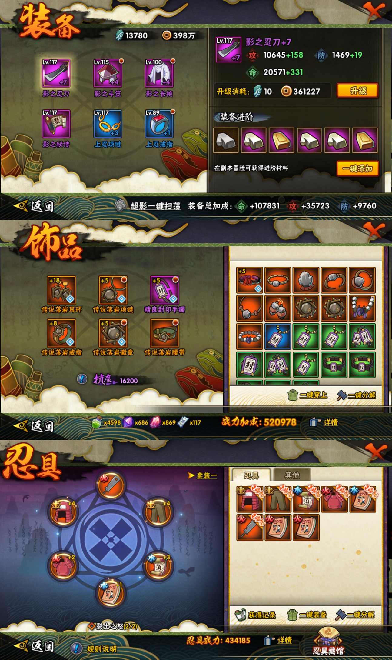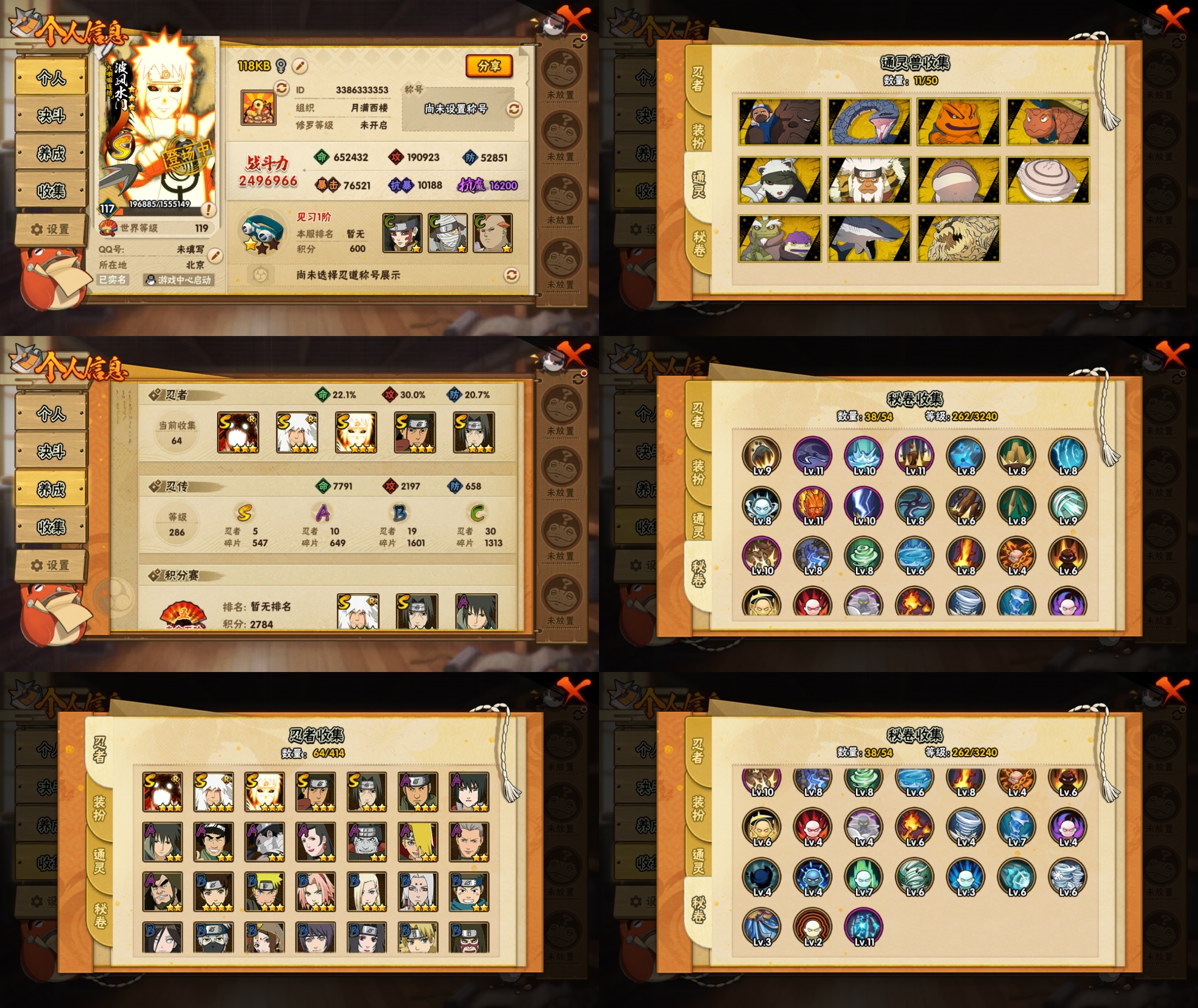 ios/5s忍/10a忍/战力254w/v7/区服863 【s忍者】 自来也「舞之豪杰」,漩涡鸣人「暴怒·第六尾」,千手柱间,宇智波鼬「须佐能乎」,波风水门「九喇嘛连结」, 【a忍者】 不缘,宇智波泉奈,神农「羁绊」,桃地再不斩「秽土转生」,宇智波佐助「万花筒写轮眼」,飞段,迪达拉,干柿鬼鲛,猿飞阿斯玛,迈特凯,