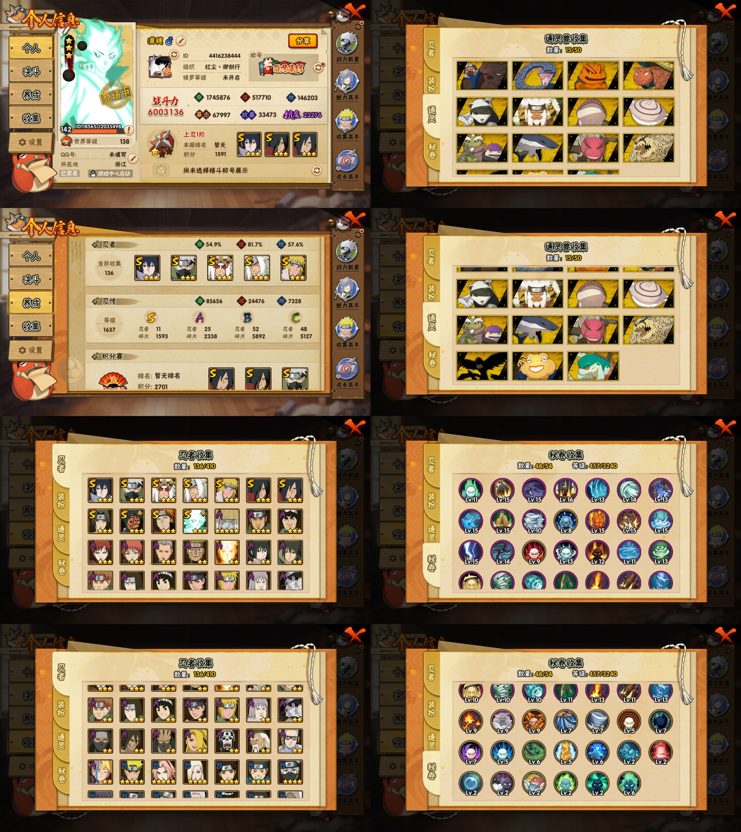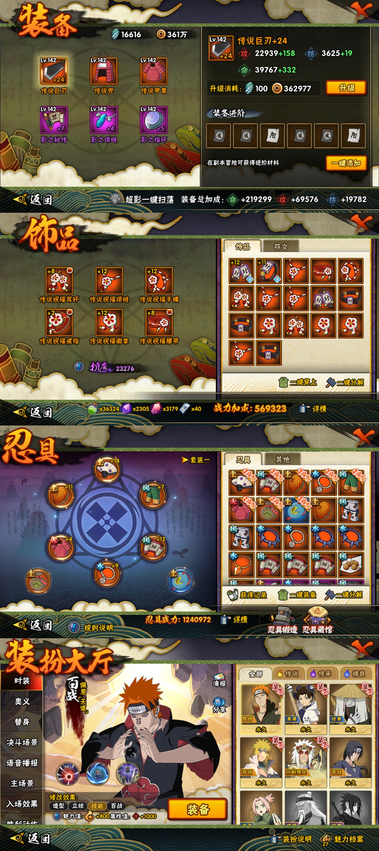 11s忍/25a忍/战力600w/v9/区服1623 【s忍者】 宇智波斑「秽土转生·解」,宇智波佐助「永恒万花筒」,神秘面具男「红夜之刃」,自来也「舞之豪杰」,旗木卡卡西「须佐能乎」,大筒木舍人「最终章」,自来也「传说中的三忍」,宇智波斑「秽土转生」,宇智波鼬「须佐能乎」,佩恩「天道」,波风水门, 【a忍者】 长十郎「六代目水影」,日向宁次「忍界大战」,漩涡博人「桃式显现」,李洛克「忍界大战」,