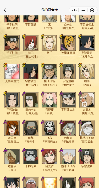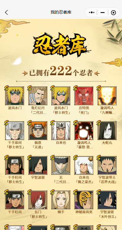 2232550-ios/26s忍/45a忍/战力1323w/v11/区服7 【s忍者】 大筒木金式,漩涡鸣人「九喇嘛连结」,迈特凯「死门」,宇智波斑「木叶创立」,宇智波带土「忍界大战」,千手柱间「秽土转生」,自来也「舞之豪杰」,漩涡鸣人「暴怒·第六尾」,宇智波鼬「秽土转生」,宇智波斑「秽土转生」,千手扉间「秽土转生」,纲手「百豪」,波风水门「秽土转生」,无「二代目土影」,猿飞日斩「秽土转生」