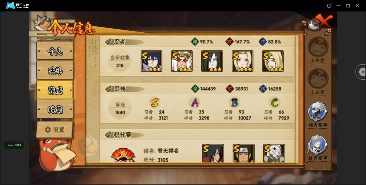[14462396]v11 24s忍 35a忍 21通灵 1162.8w战力 可二次 可修改实名 【s级忍者】:千手柱间·木叶创立宇智波佐助「永恒万花筒」神秘面具男 「红夜之刃」宇智波带土 「忍界大战」千手柱间「秽土转生」自来也 「舞之豪杰」宇智波鼬「秽土转生」药师兜「仙人模式」宇智波斑「秽土转生」艾「三代目雷影」宇智波斑「白面具」千手扉间「秽土转生」纲手「百豪」波风水门「秽土转生」无「二代目土影」金角/银角「秽土转生」猿飞日斩「秽土转生」千手柱间千手扉间宇智波鼬 「须佐能乎」猿飞日斩波风水门大蛇丸纲手 【通灵兽】:熊猫