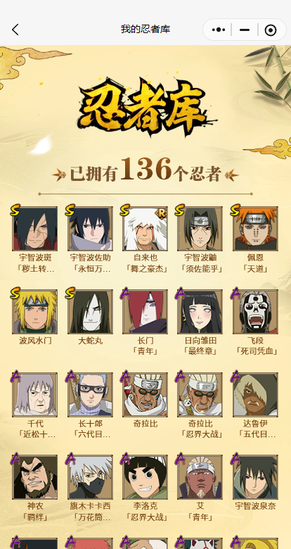 2288946-7s忍/32a忍/战力574w/v8/区服2934 【s忍者】 宇智波斑「秽土转生·解」,宇智波佐助「永恒万花筒」,自来也「舞之豪杰」,宇智波鼬「须佐能乎」,佩恩「天道」,波风水门,大蛇丸, 【a忍者】 长十郎「六代目水影」,日向宁次「忍界大战」,漩涡博人「桃式显现」,日向雏田「最终章」,李洛克「忍界大战」,宇智波泉奈,神农「羁绊」,桃地再不斩「秽土转生」,长门「青年」,佩恩