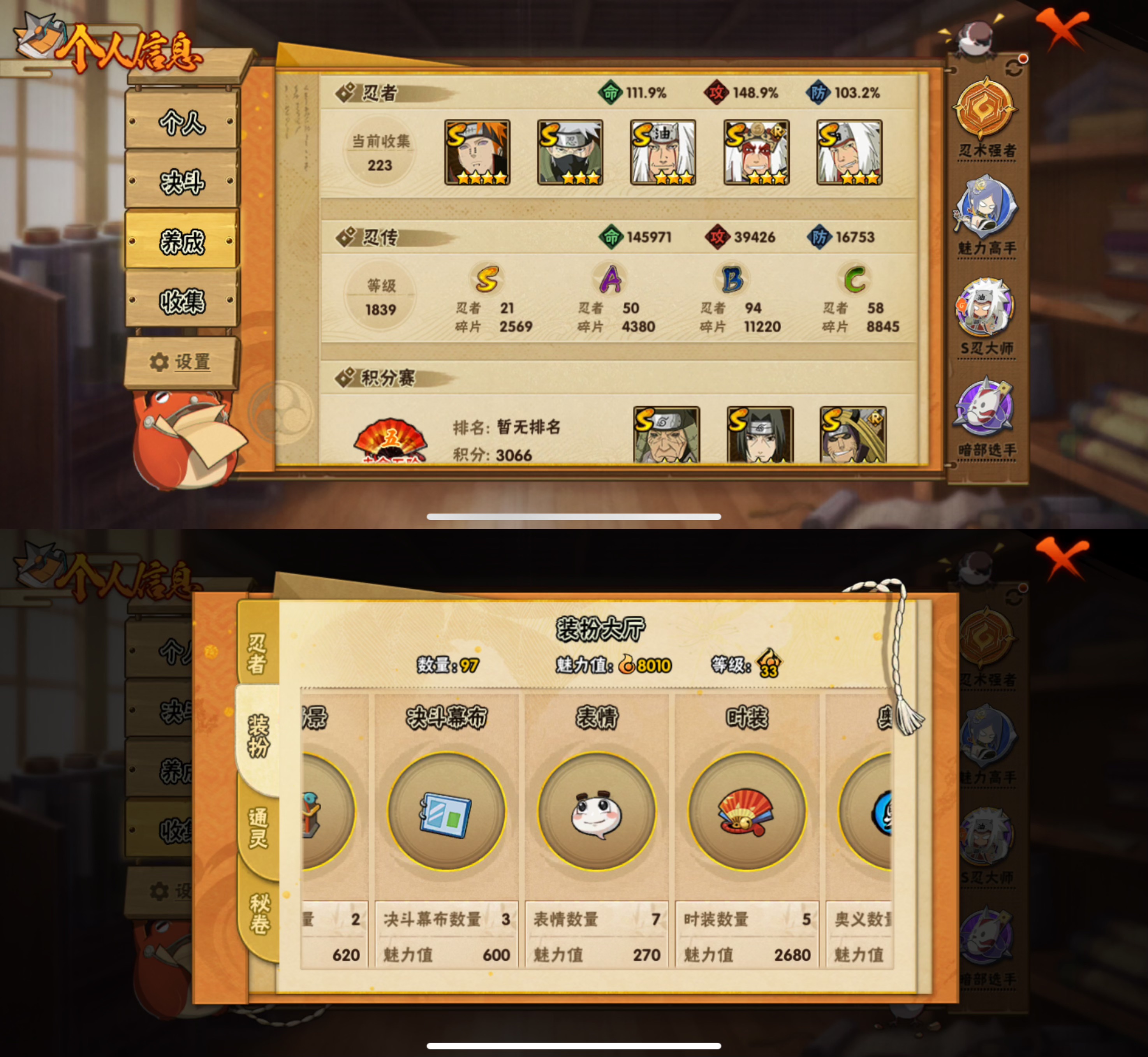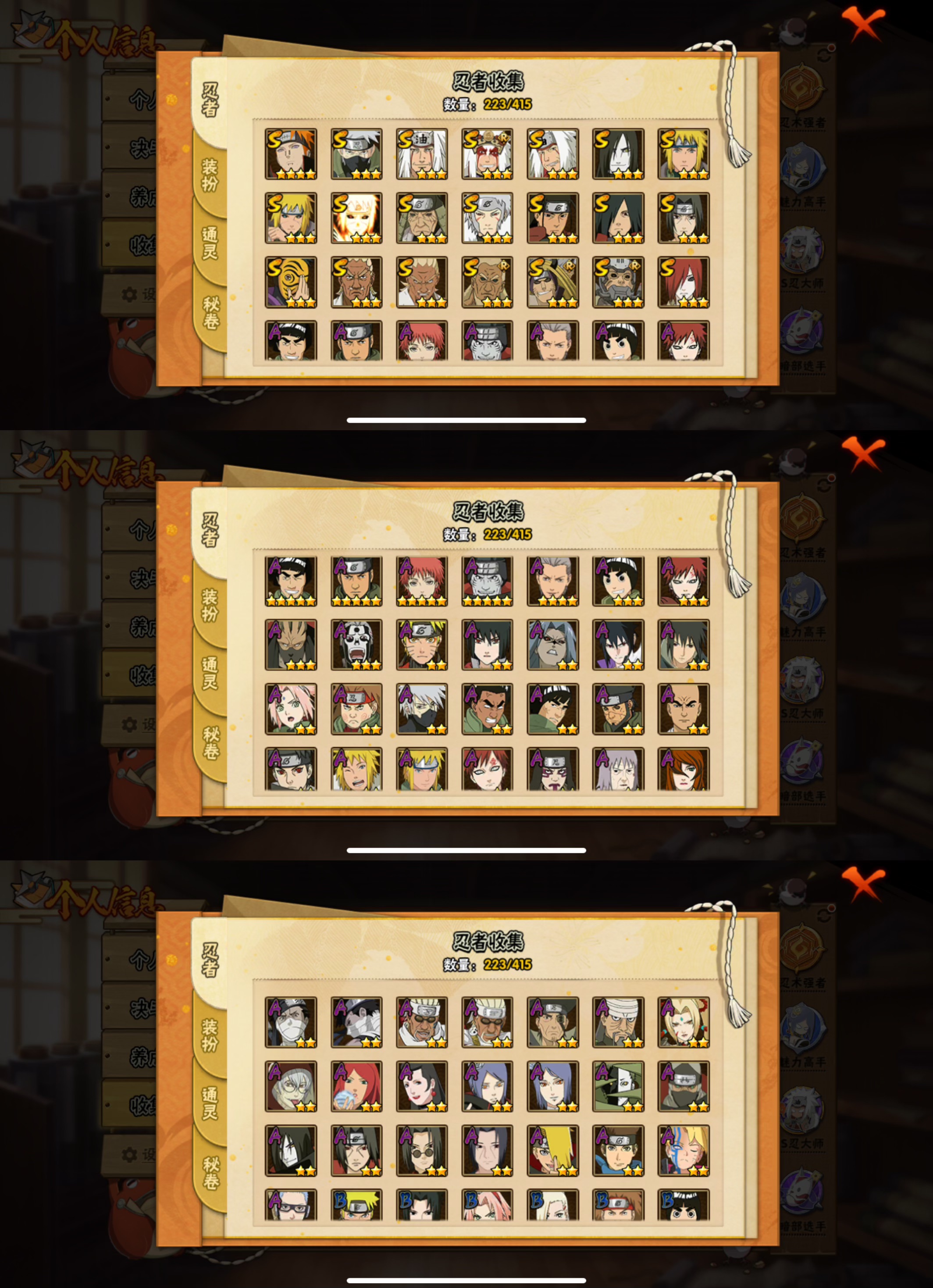【21s忍者 50a忍者 22通灵】【苹果q-202区-149级-v13-1062万战力】【s级】 佩恩 须佐卡卡西 自来也 豪杰自来也 传说中的三忍自来也 大蛇丸 波风水门 秽土水门 波风水门-九喇嘛连结 秽土日斩 千手扉间 千手柱间 宇智波斑 秽土鼬 神秘面具男 四代目雷影艾 忍战艾 秽土三代雷影艾 秽土金银角 秽土半藏 秽土长门 【a级】 凯 猿飞阿斯玛 蝎 鬼鲛 飞段 忍战小李 疾风我爱罗