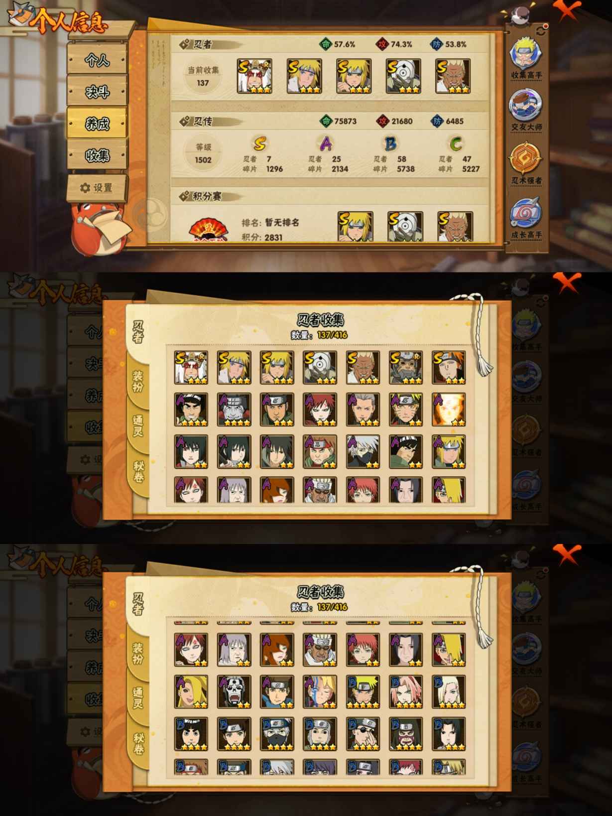 【7s忍者 25a忍者 16通灵】【安卓q-986区-145级-v10-627万战力】【s级】 豪杰自来也 波风水门 秽土水门 白面具 三代雷 秽土半藏 佩恩 【a级】 凯 鬼鲛 猿飞阿斯玛 疾风我爱罗 飞段 仙人鸣人 九尾鸣人 鹰小队佐助 须佐佐助 宇智波泉奈 忍战丁次 写轮眼卡卡西 凯青春爆炸 青年水门 忍战我爱罗 近松十人卫千代 夏日照美冥 奇拉比 蝎 夏日鼬 迪达拉 秽